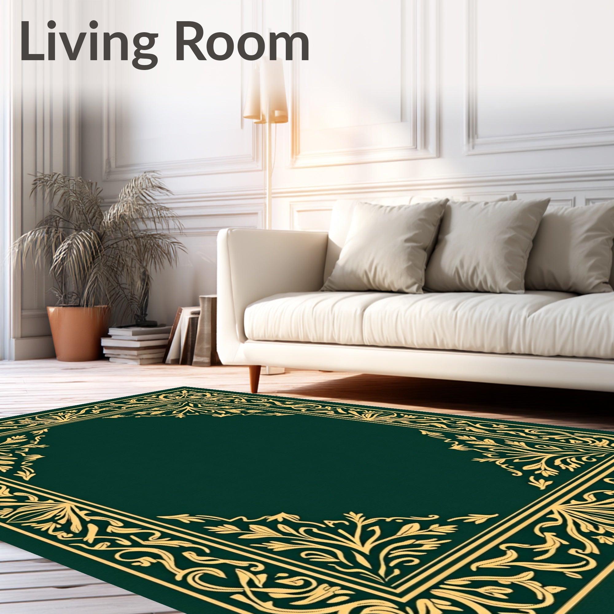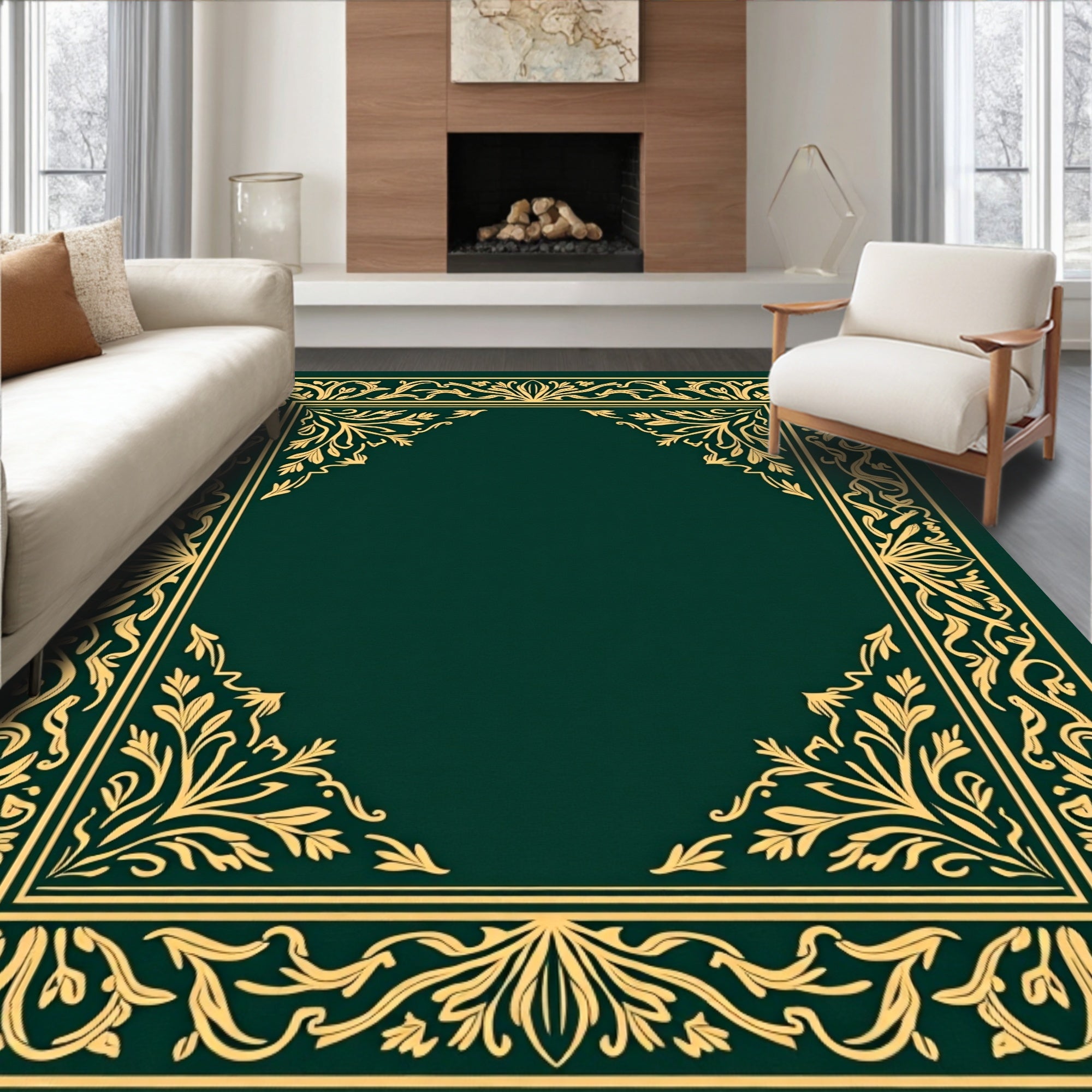 Ultra Soft Area Rug, Non Slip, Stain Resistant, Washable Area Rugs for Living Room, Bedroom, Botanical Lattice with Elegant Leafy Flourishes(Green) Overview:
