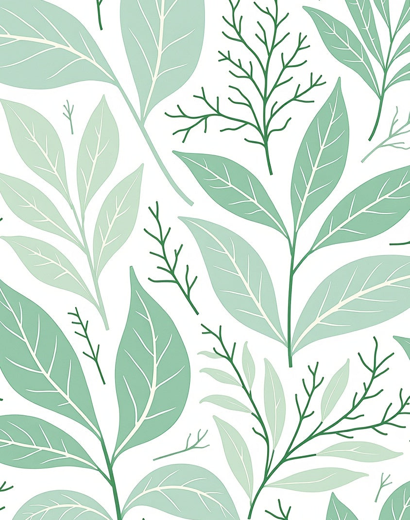 Botanical Leaf Interplay Featuring Subtle Vines and Branch Filigree(Green)