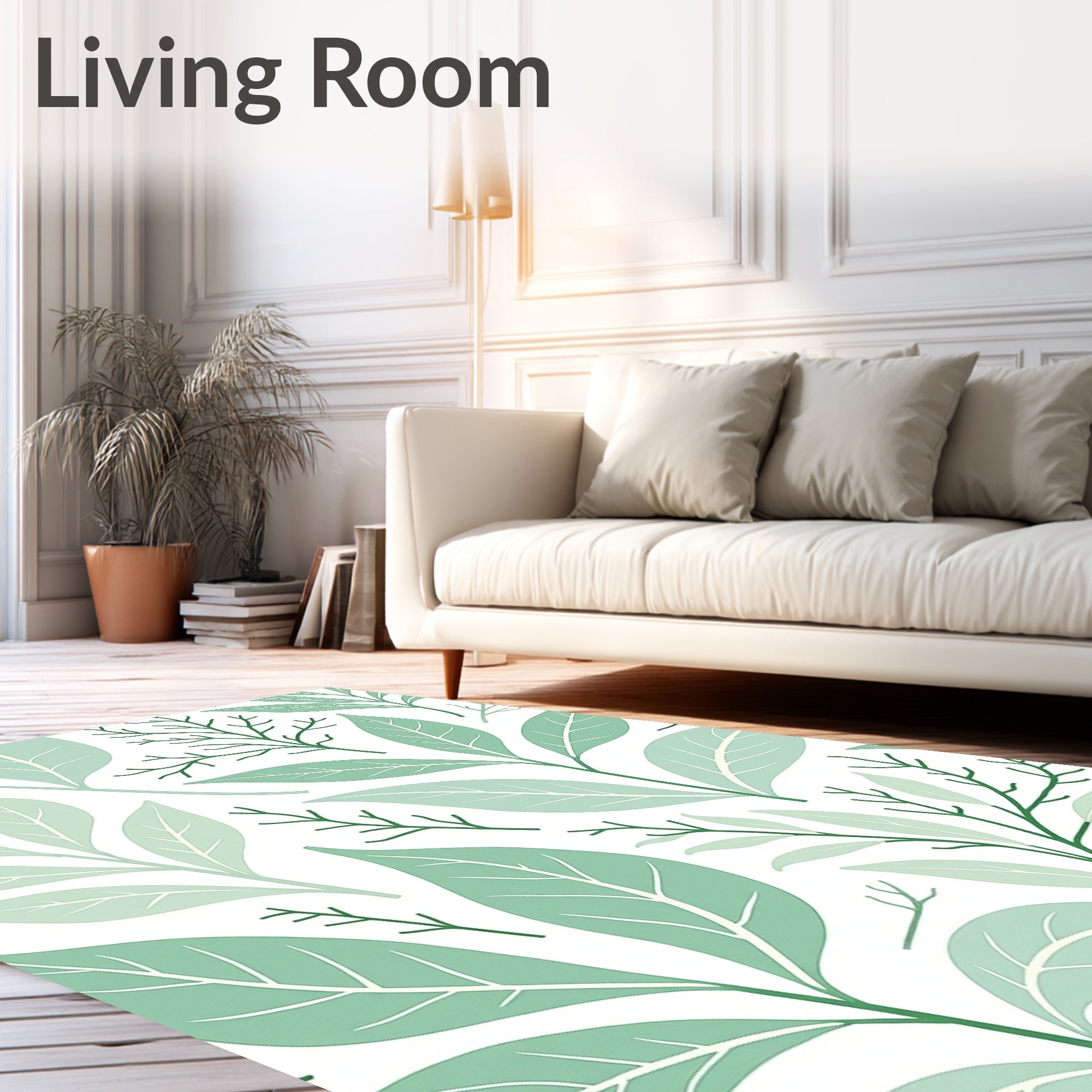 Ultra Soft Area Rug, Non Slip, Stain Resistant, Washable Area Rugs for Living Room, Bedroom, Botanical Leaf Interplay Featuring Subtle Vines and Branch Filigree(Green) Overview: