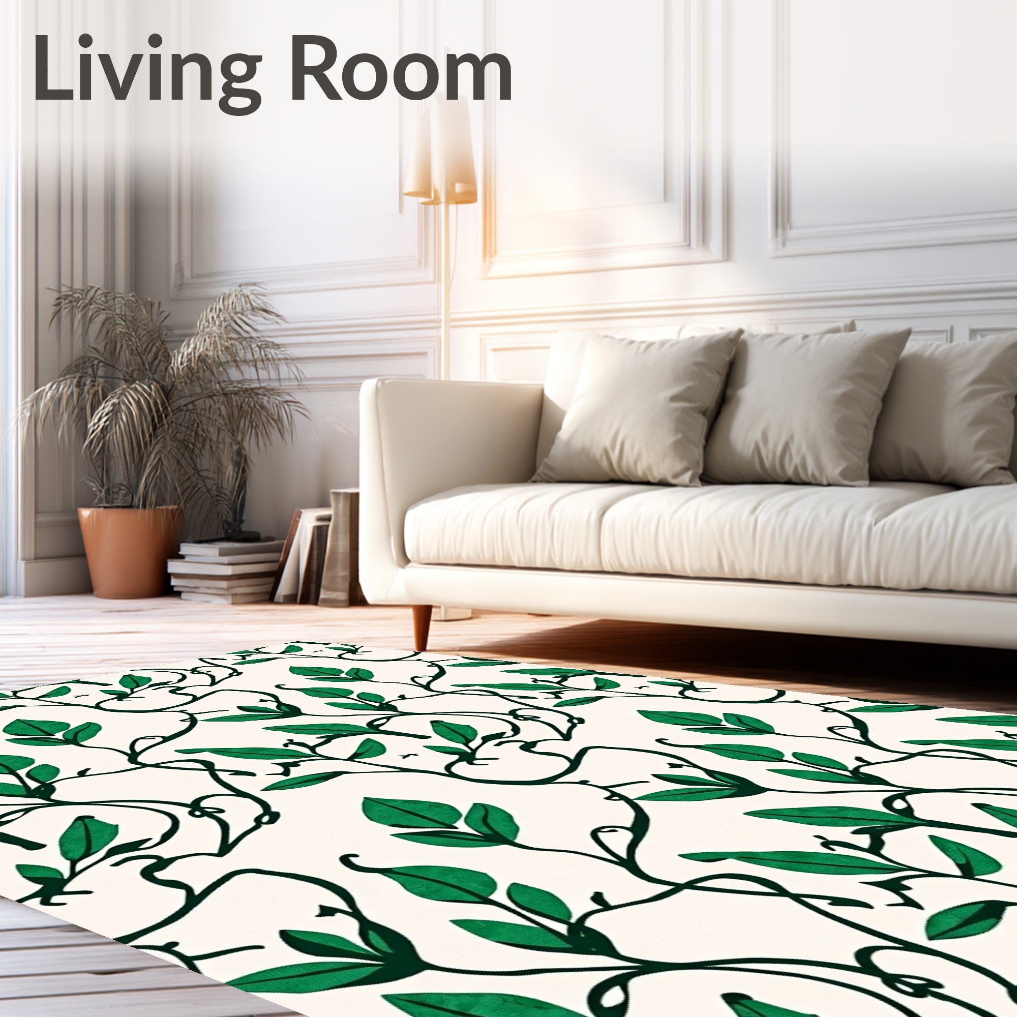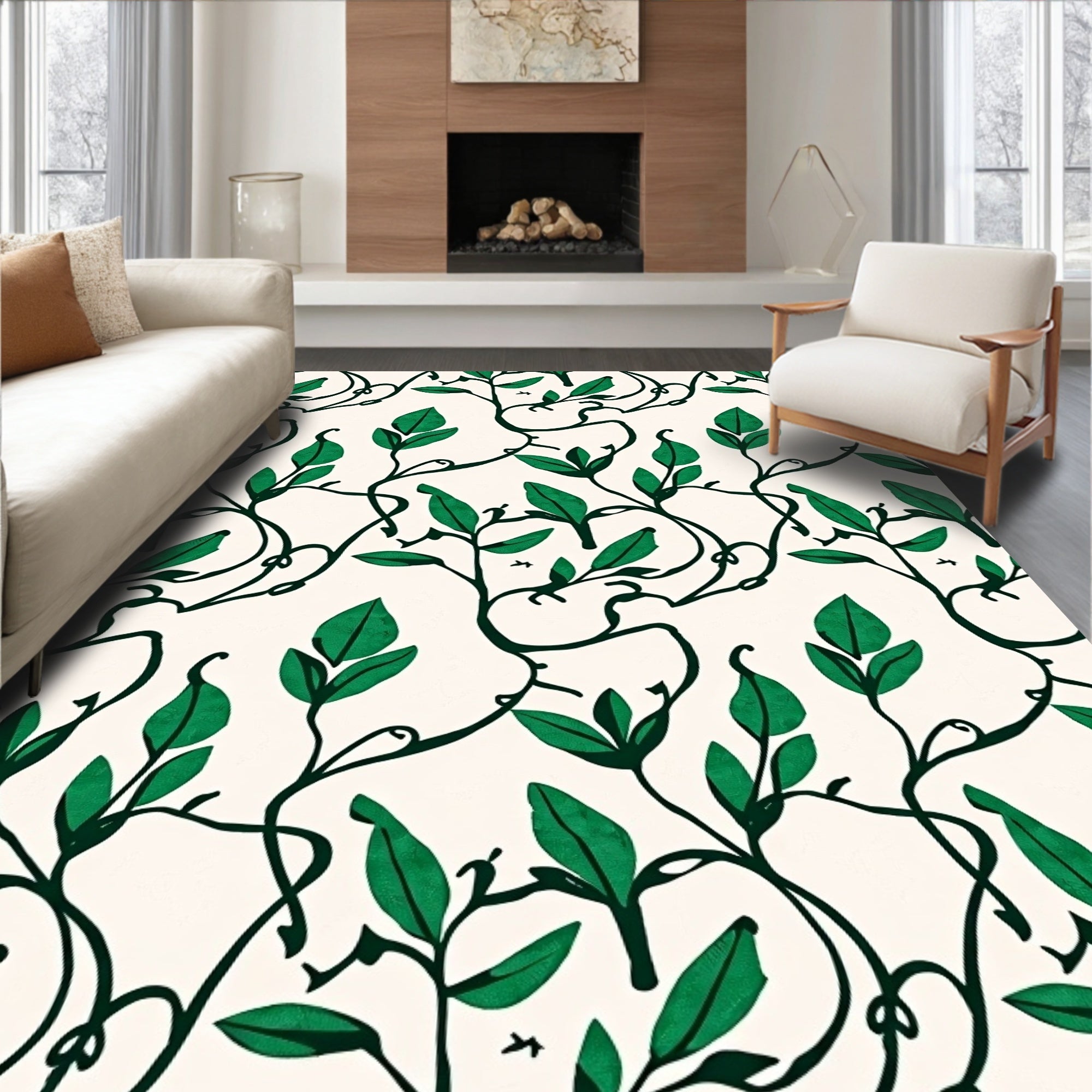 Ultra Soft Area Rug, Non Slip, Stain Resistant, Washable Area Rugs for Living Room, Bedroom, Botanical Leaf Motif Interlocking(Green) Overview: