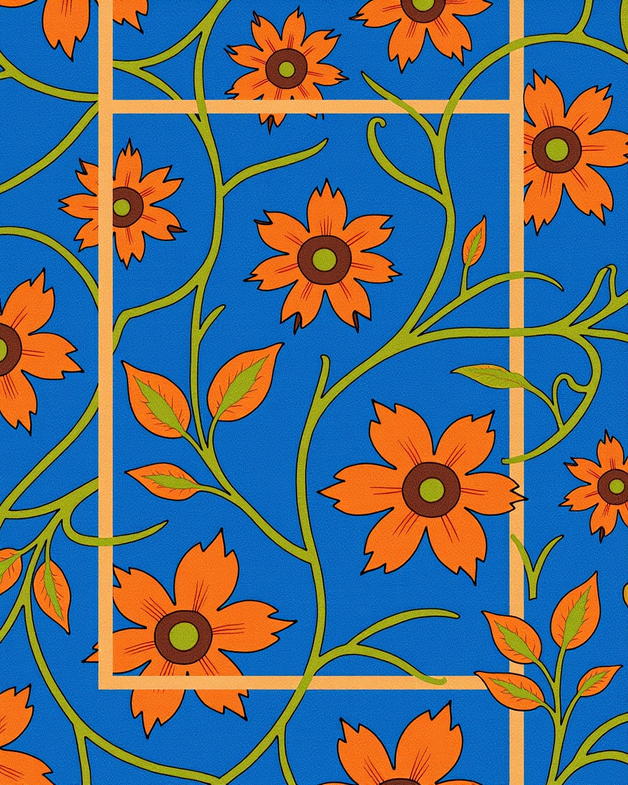 Botanical Medley with Autumnal Vine Motifs and Whimsical Petals(Blue)