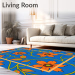 Ultra Soft Area Rug, Non Slip, Stain Resistant, Washable Area Rugs for Living Room, Bedroom, Botanical Medley with Autumnal Vine Motifs and Whimsical Petals(Blue) Overview: