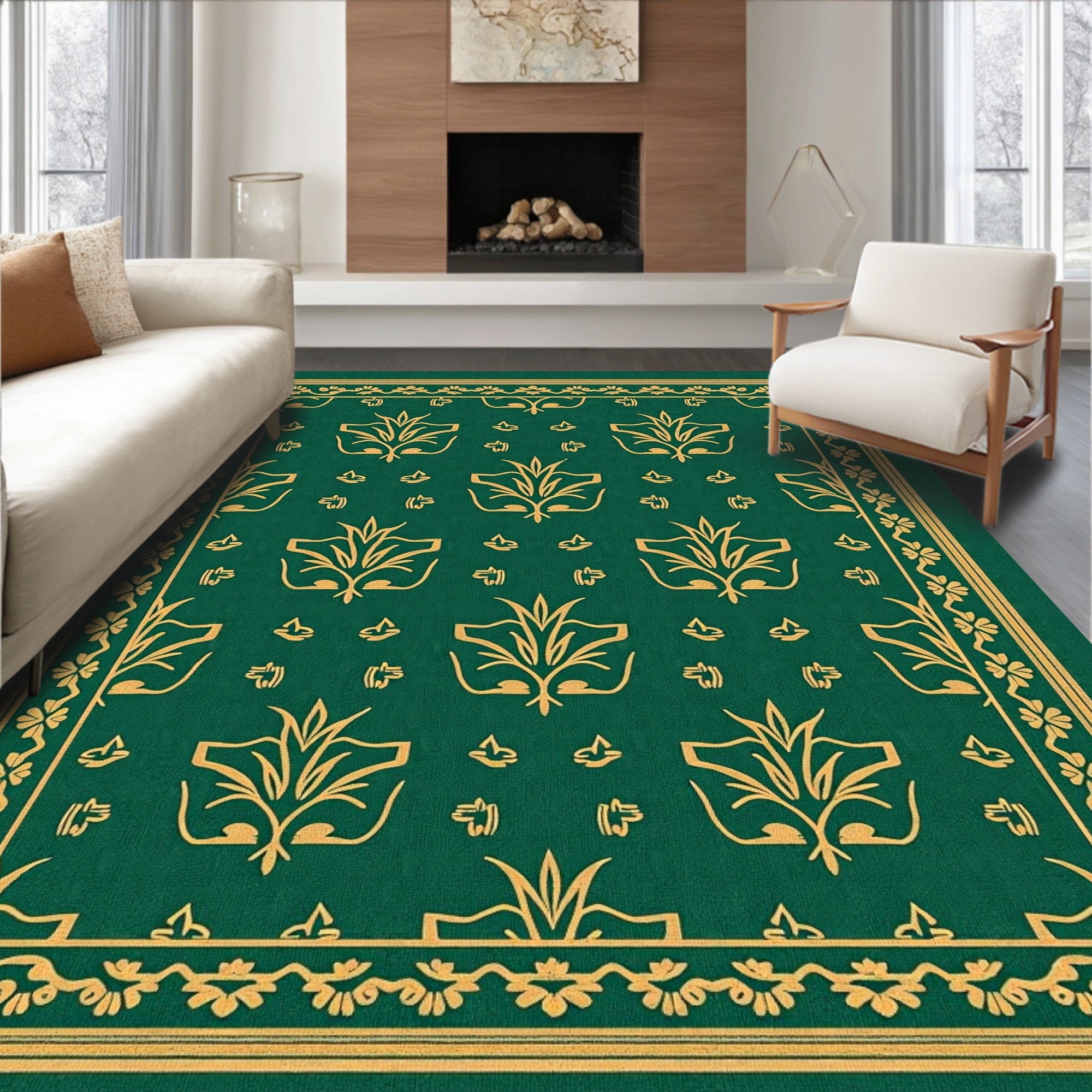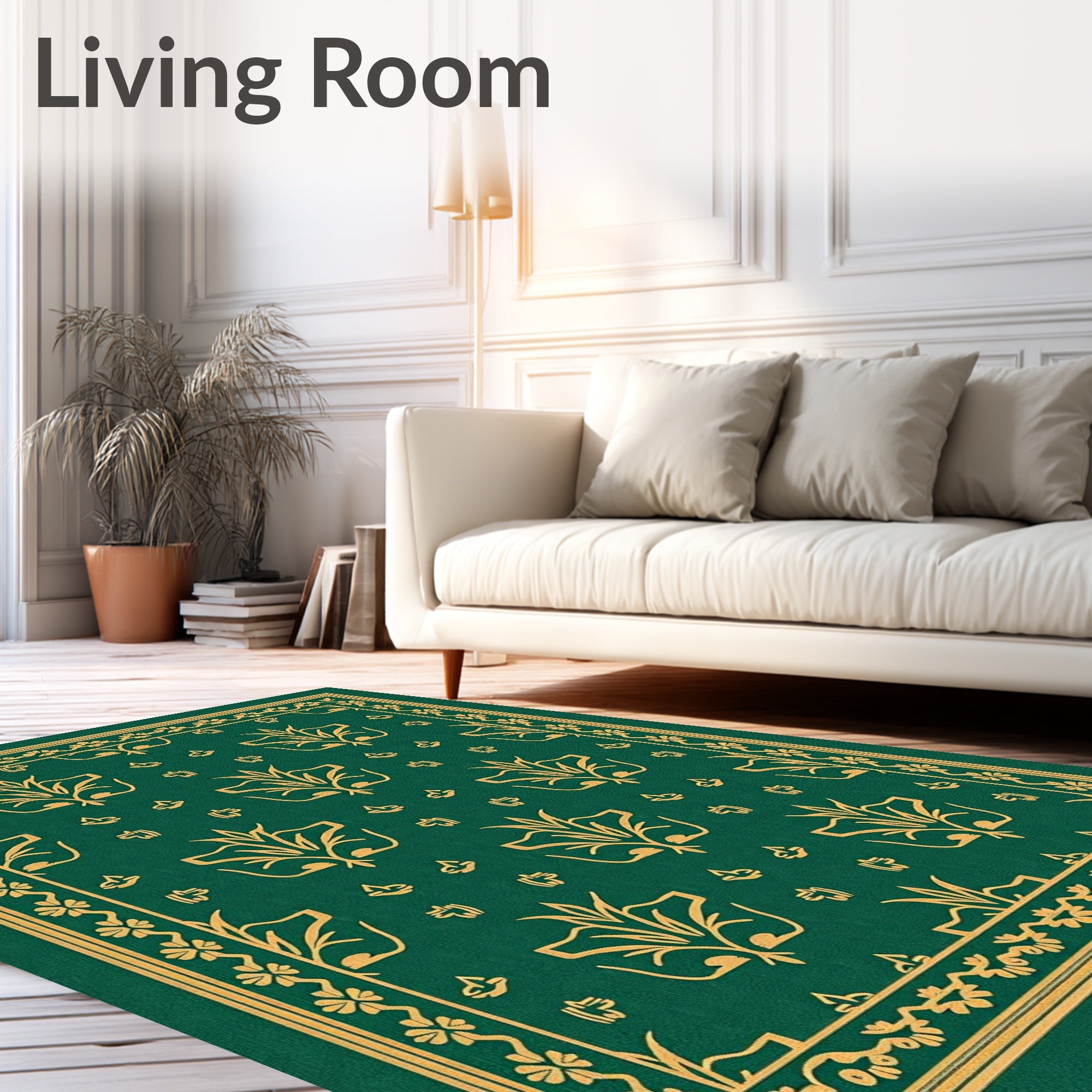 Ultra Soft Area Rug, Non Slip, Stain Resistant, Washable Area Rugs for Living Room, Bedroom, Botanical Mosaic Interlocking Leaves with Contemporary Flair(Green) Overview: