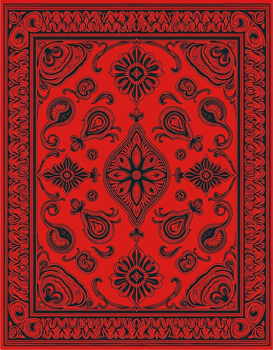 Botanical Paisley Swirl Design Slip Resistant(Red)