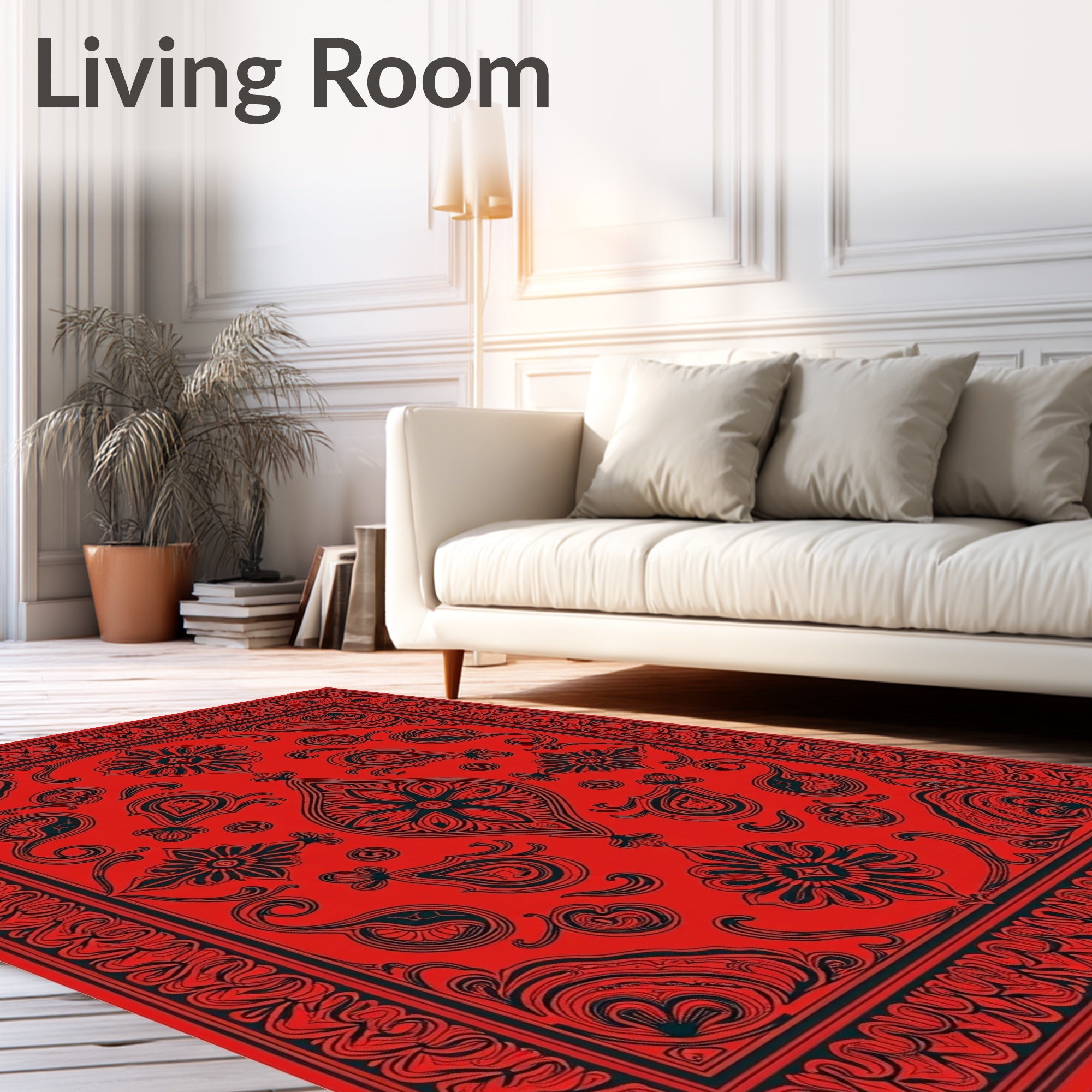 Ultra Soft Area Rug, Non Slip, Stain Resistant, Washable Area Rugs for Living Room, Bedroom, Botanical Paisley Swirl Design Slip Resistant(Red) Overview: