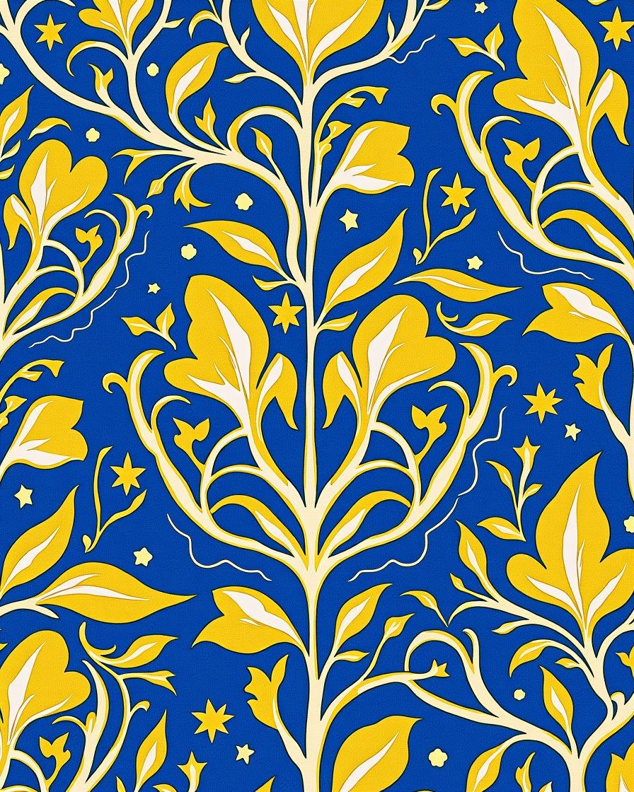 Botanical Petal Motif with Interlocking Vine Details(Blue)