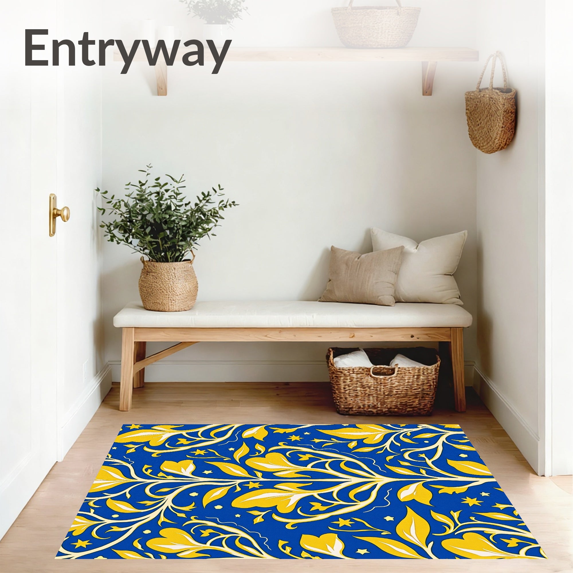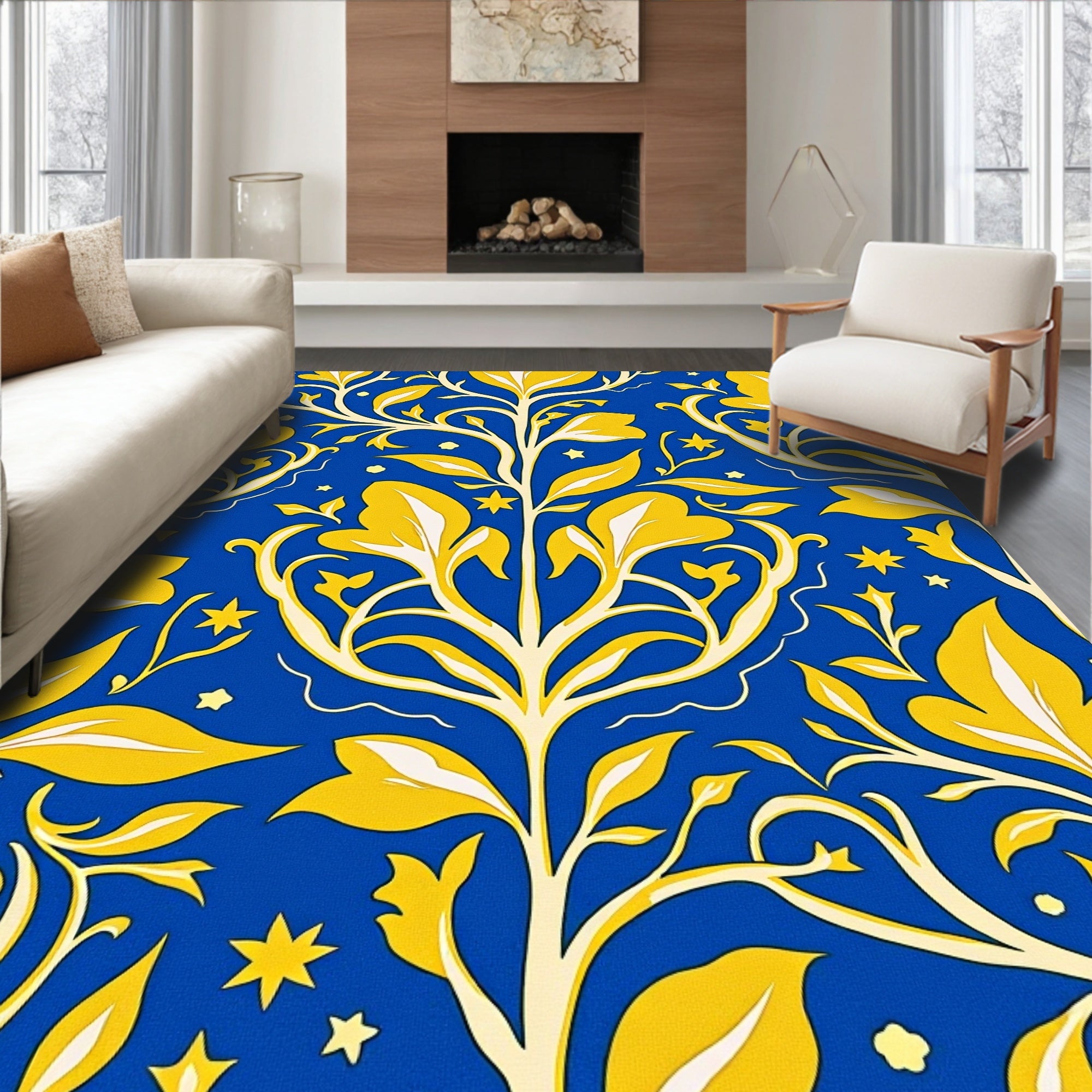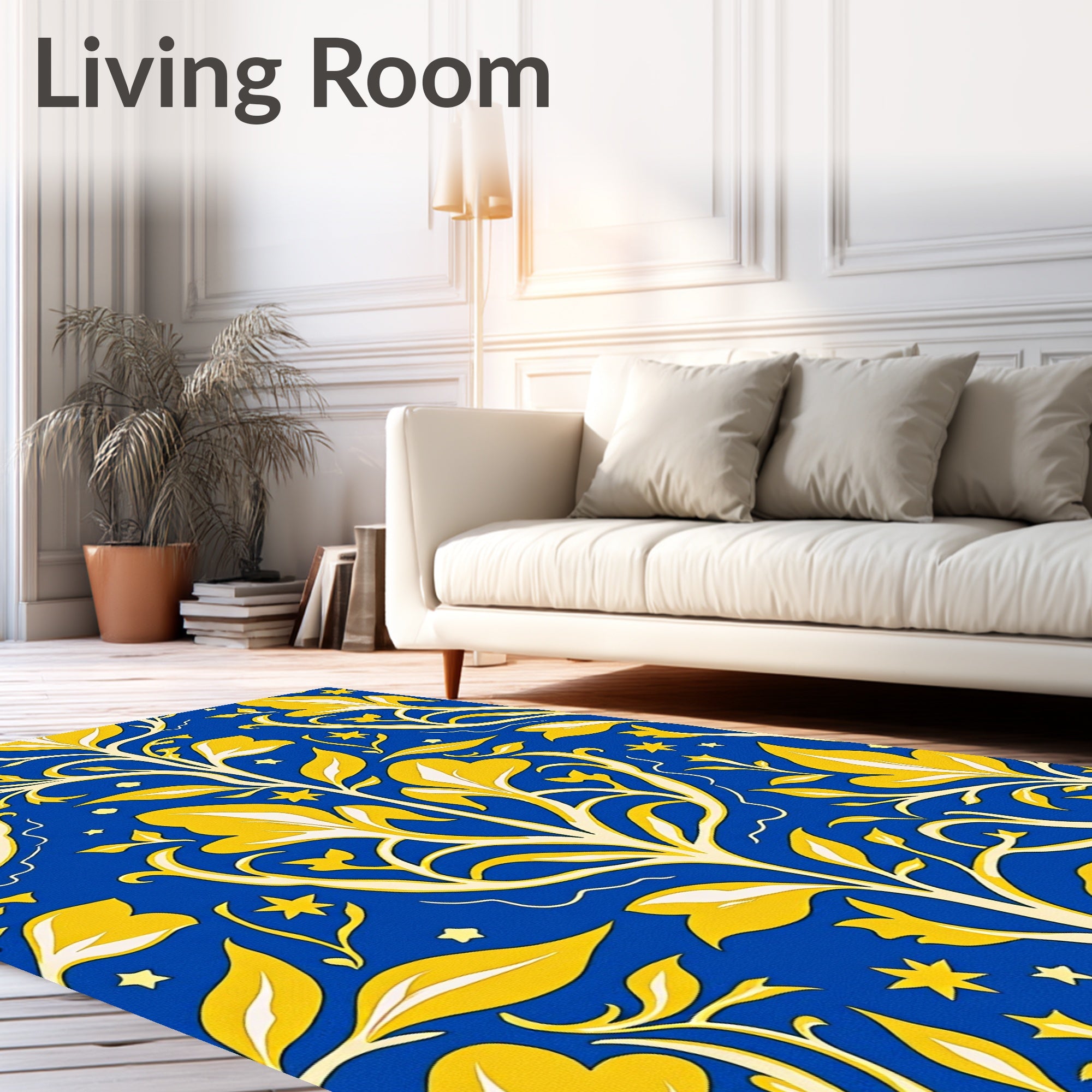Ultra Soft Area Rug, Non Slip, Stain Resistant, Washable Area Rugs for Living Room, Bedroom, Botanical Petal Motif with Interlocking Vine Details(Blue) Overview:
