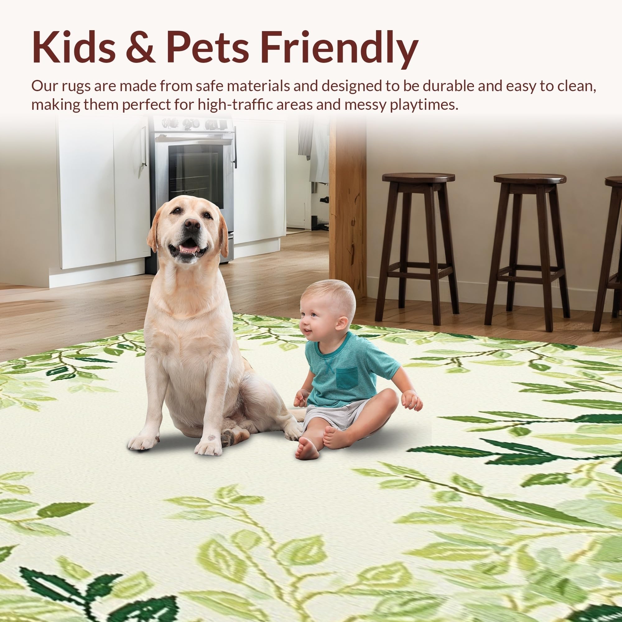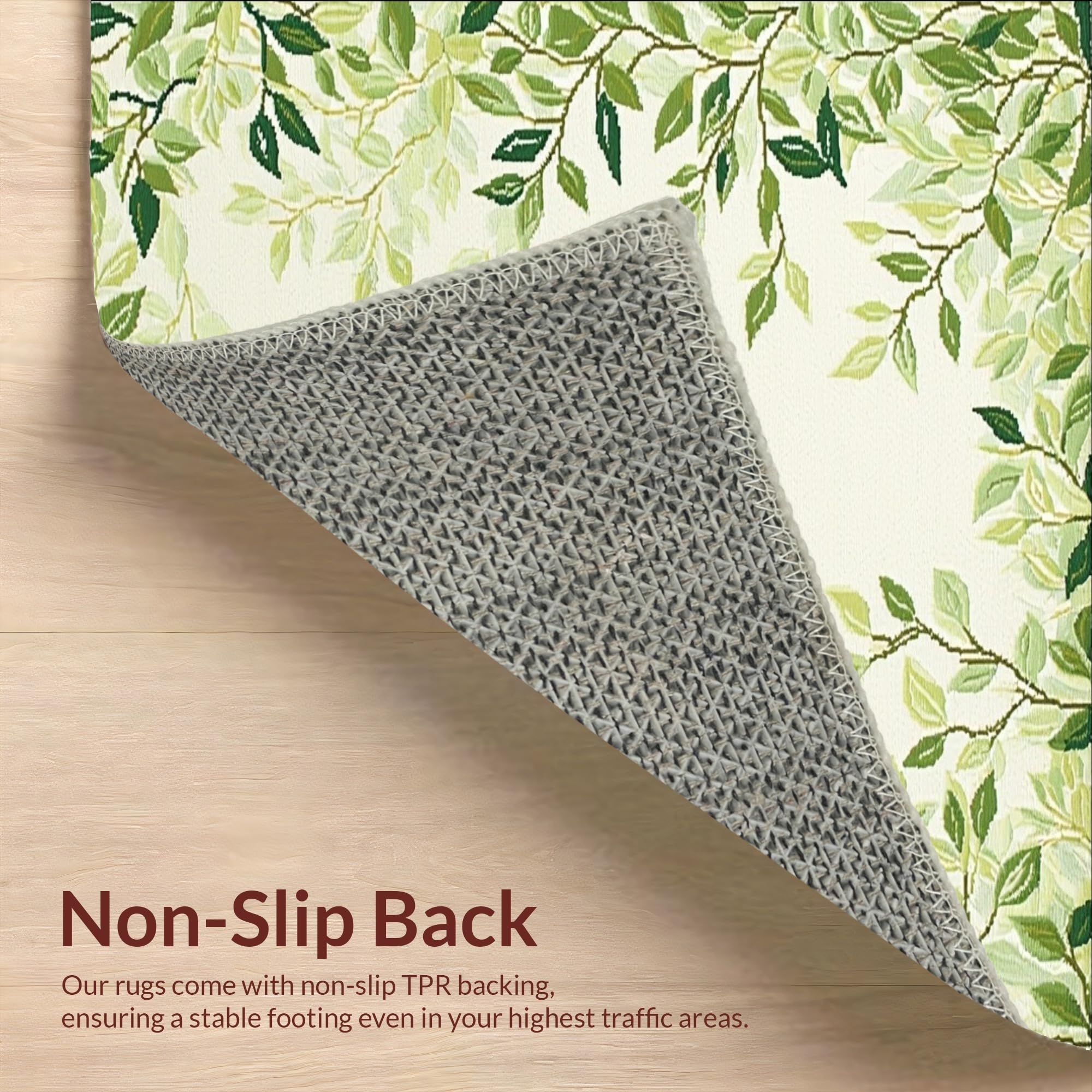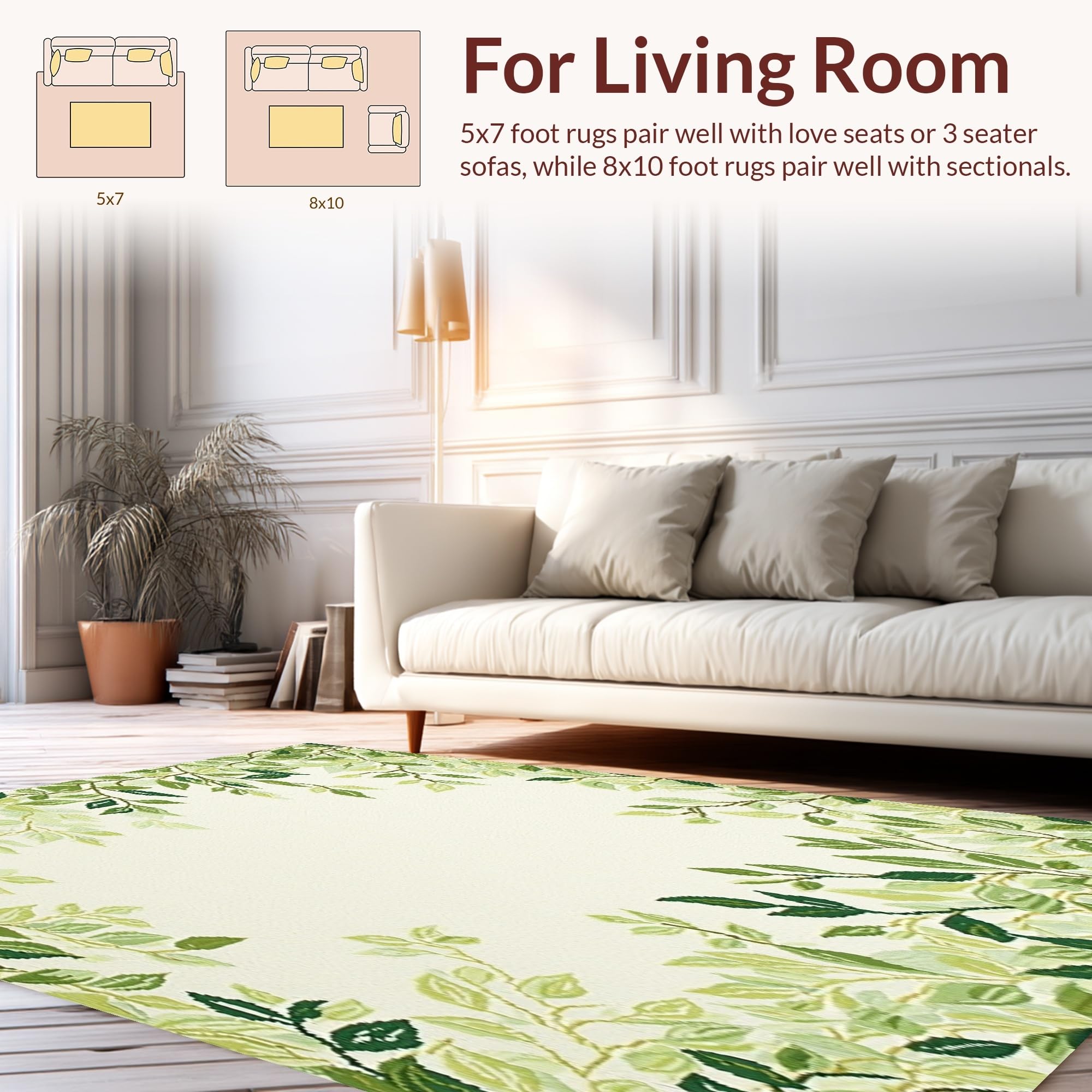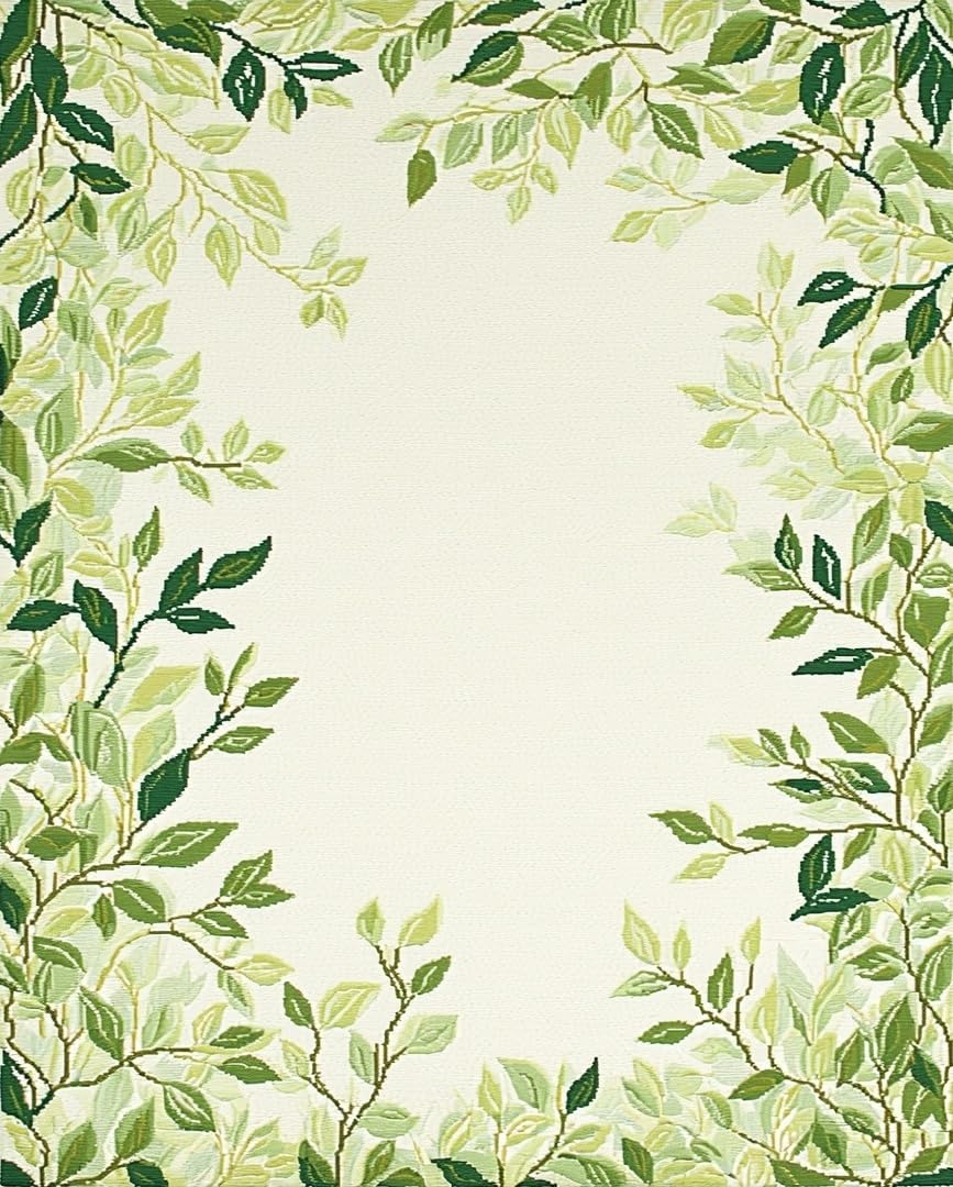 Ultra Soft Area Rug, Non Slip, Stain Resistant, Washable Area Rugs for Living Room, Bedroom, Botanical Retreat Patio Area in Green Beige Lush Foliage(Beige) Overview: