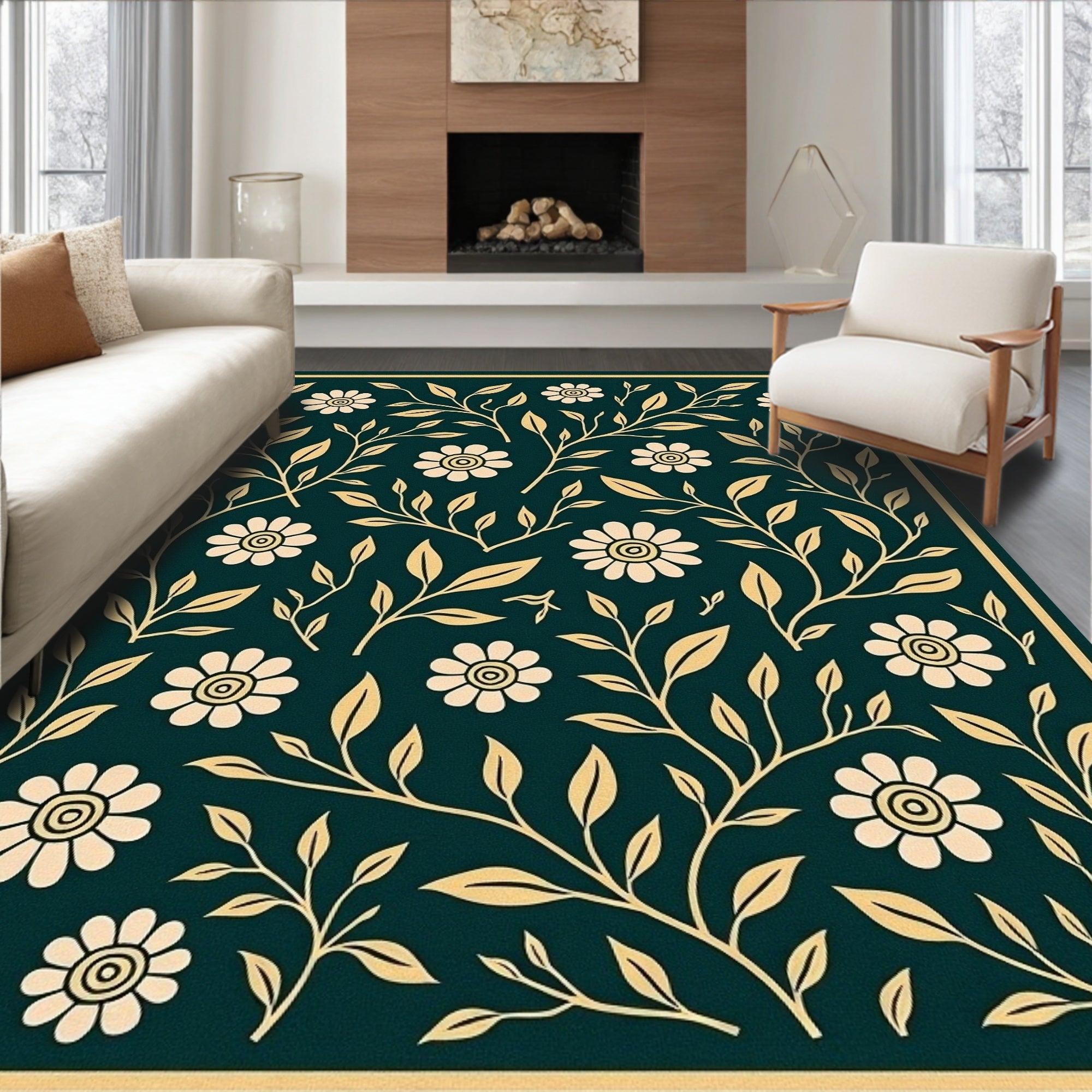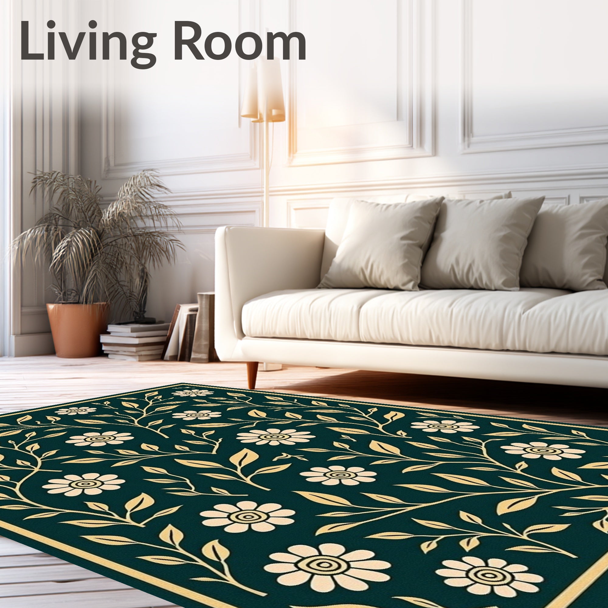 Ultra Soft Area Rug, Non Slip, Stain Resistant, Washable Area Rugs for Living Room, Bedroom, Botanical Vine Corridor Textile With Sophisticated Leaf Engravings(Green) Overview: