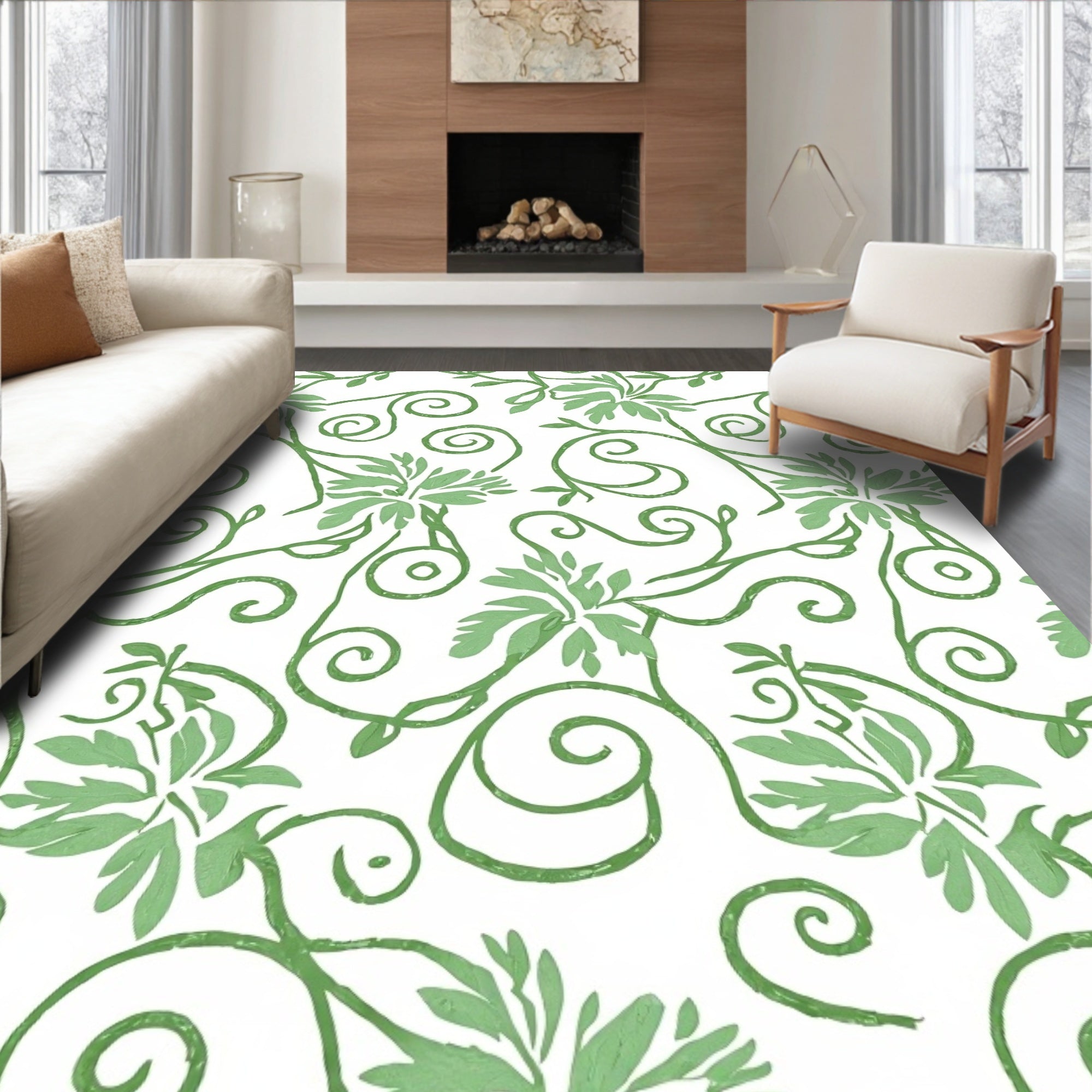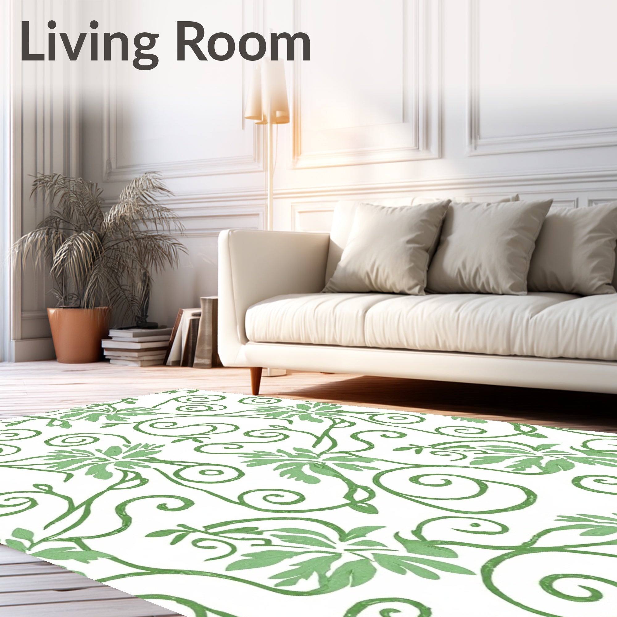 Ultra Soft Area Rug, Non Slip, Stain Resistant, Washable Area Rugs for Living Room, Bedroom, Botanical Vine Scrolls with Artistic Swirl Motif(Green) Overview: