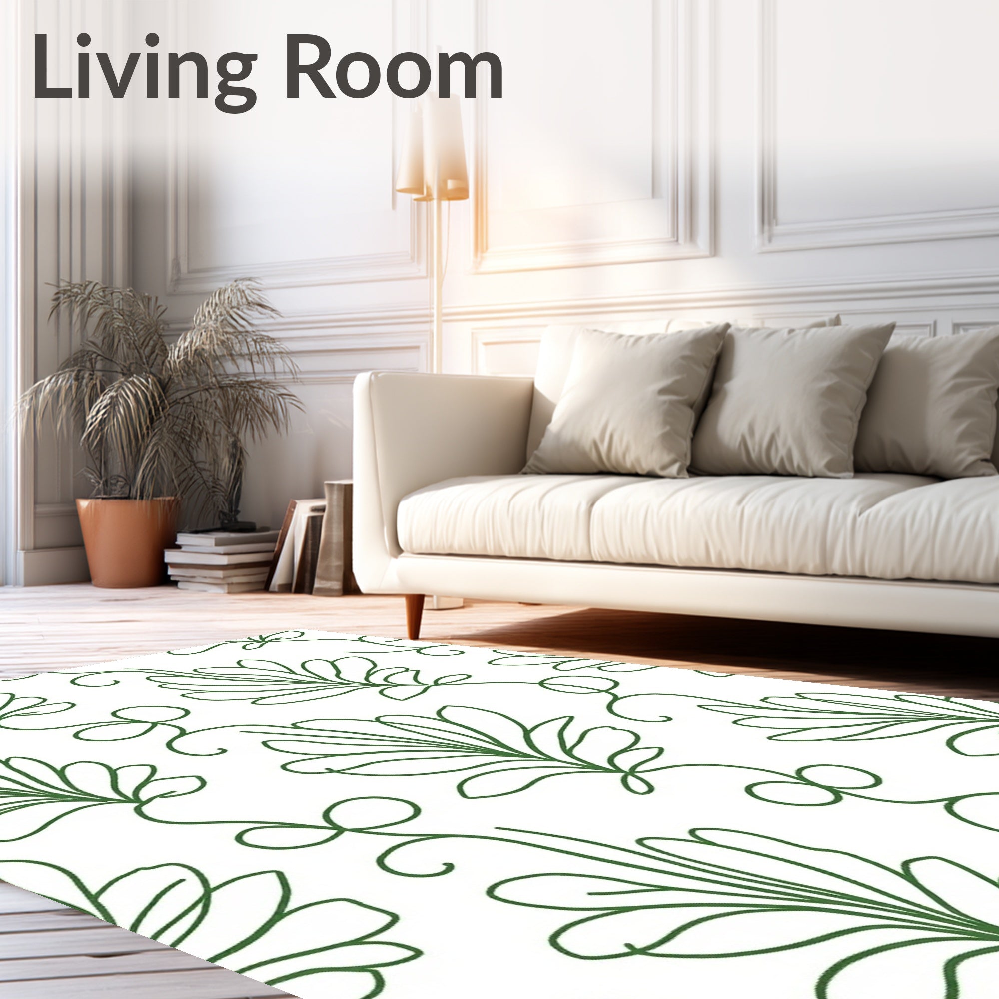 Ultra Soft Area Rug, Non Slip, Stain Resistant, Washable Area Rugs for Living Room, Bedroom, Botanical Vine Scrollwork Sophisticated Embellishment(Green) Overview: