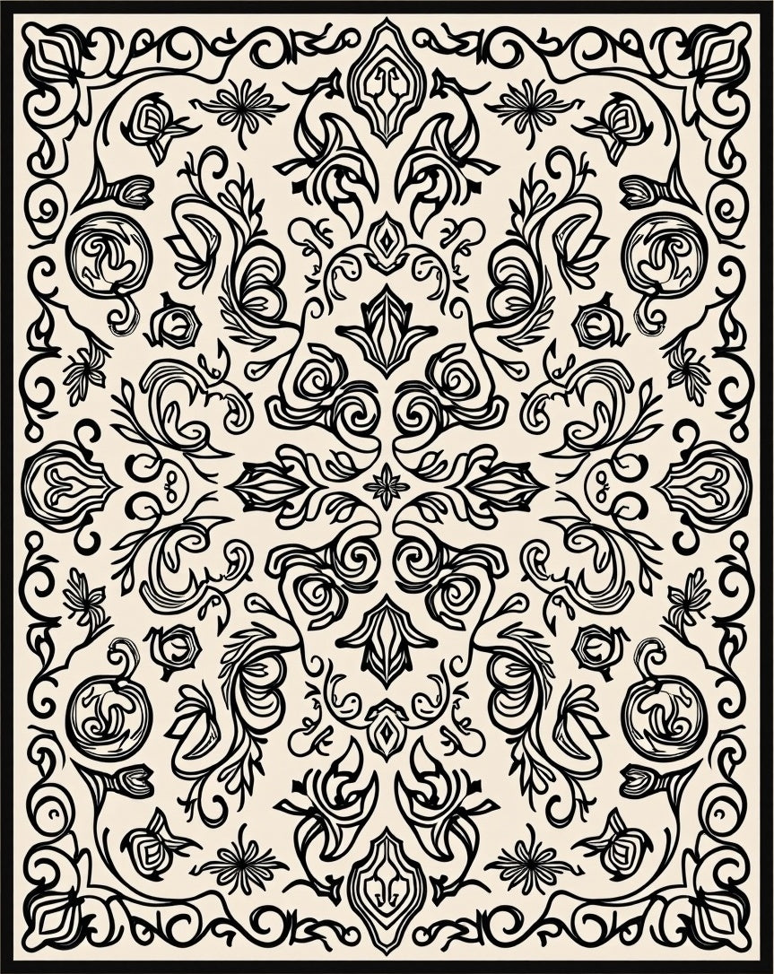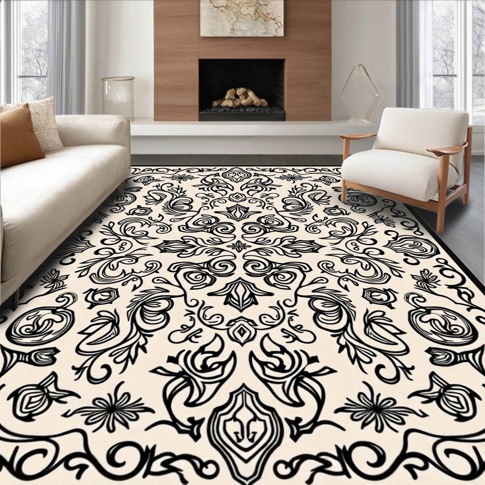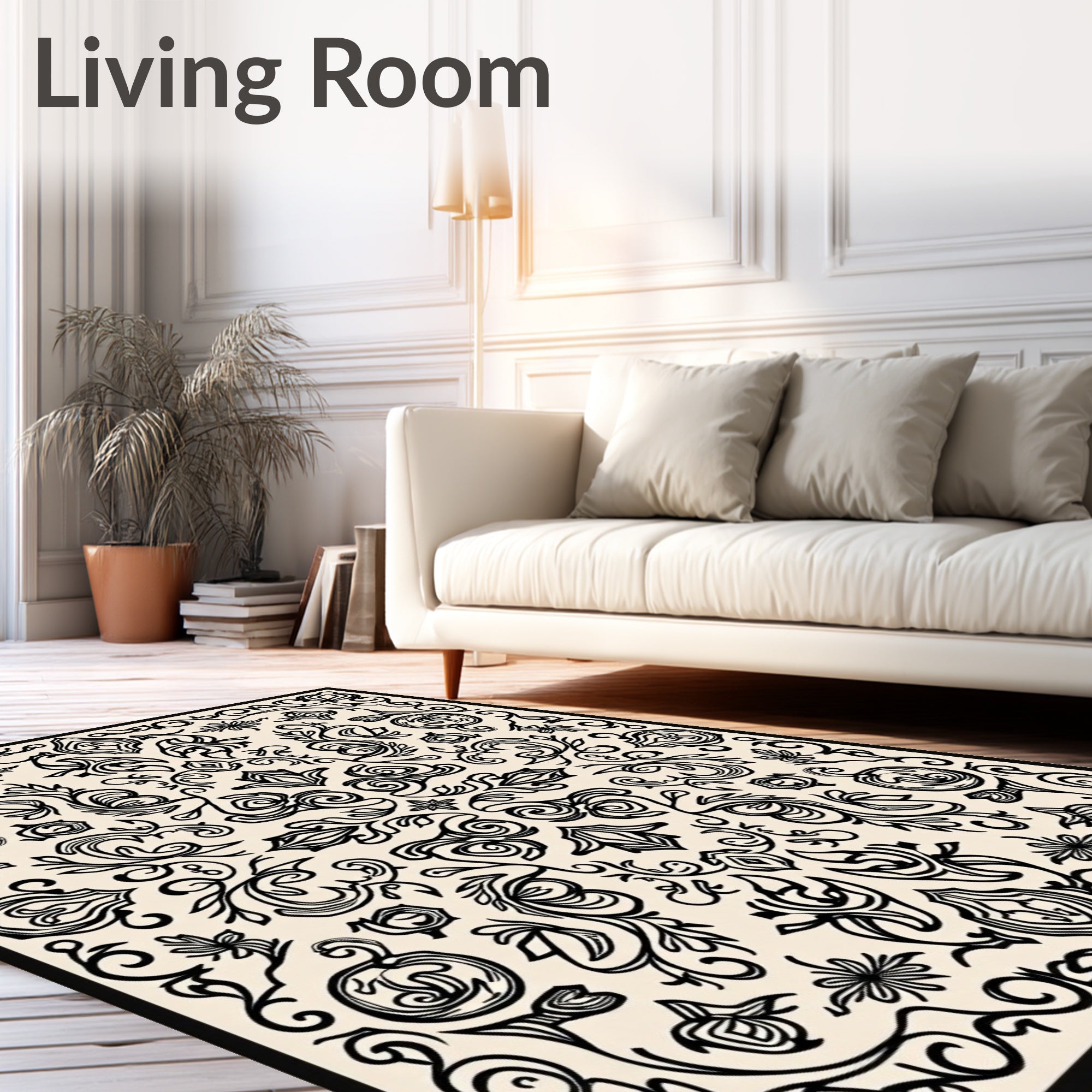 Ultra Soft Area Rug, Non Slip, Stain Resistant, Washable Area Rugs for Living Room, Bedroom, Botanical Vine Trellis with Damask Accent Motifs(Black) Overview: