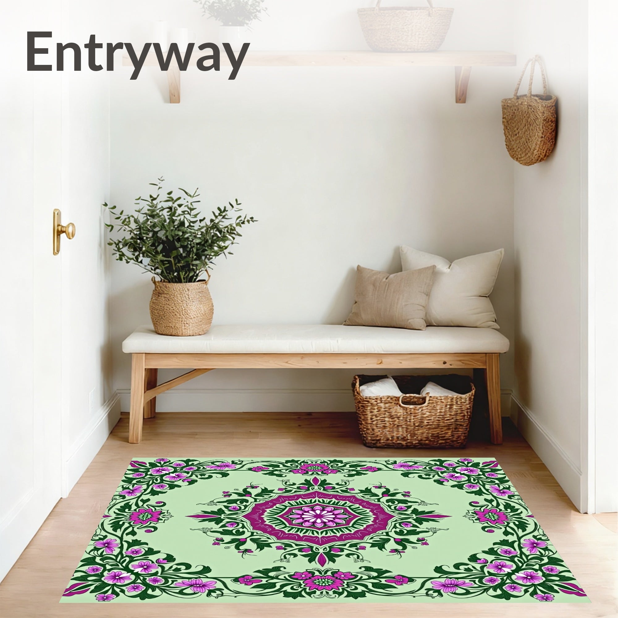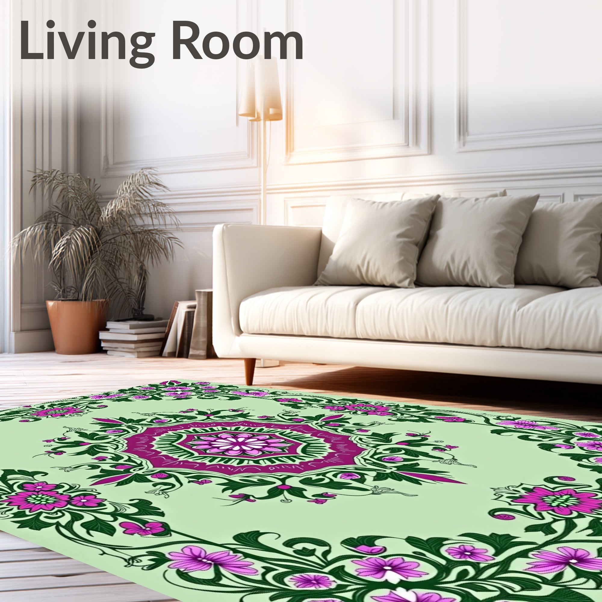 Ultra Soft Area Rug, Non Slip, Stain Resistant, Washable Area Rugs for Living Room, Bedroom, Botanical Whimsy Floral Medallion(Green) Overview: