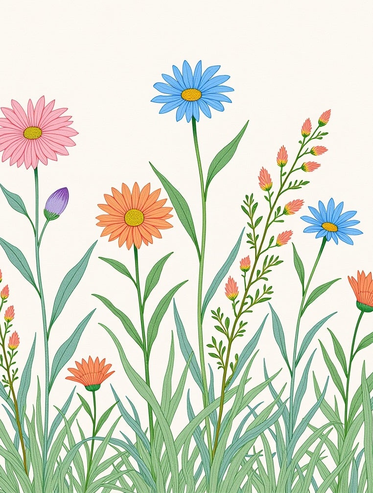 Botanical Wildflower Collection Meadow Blossoms Illustration(Green)