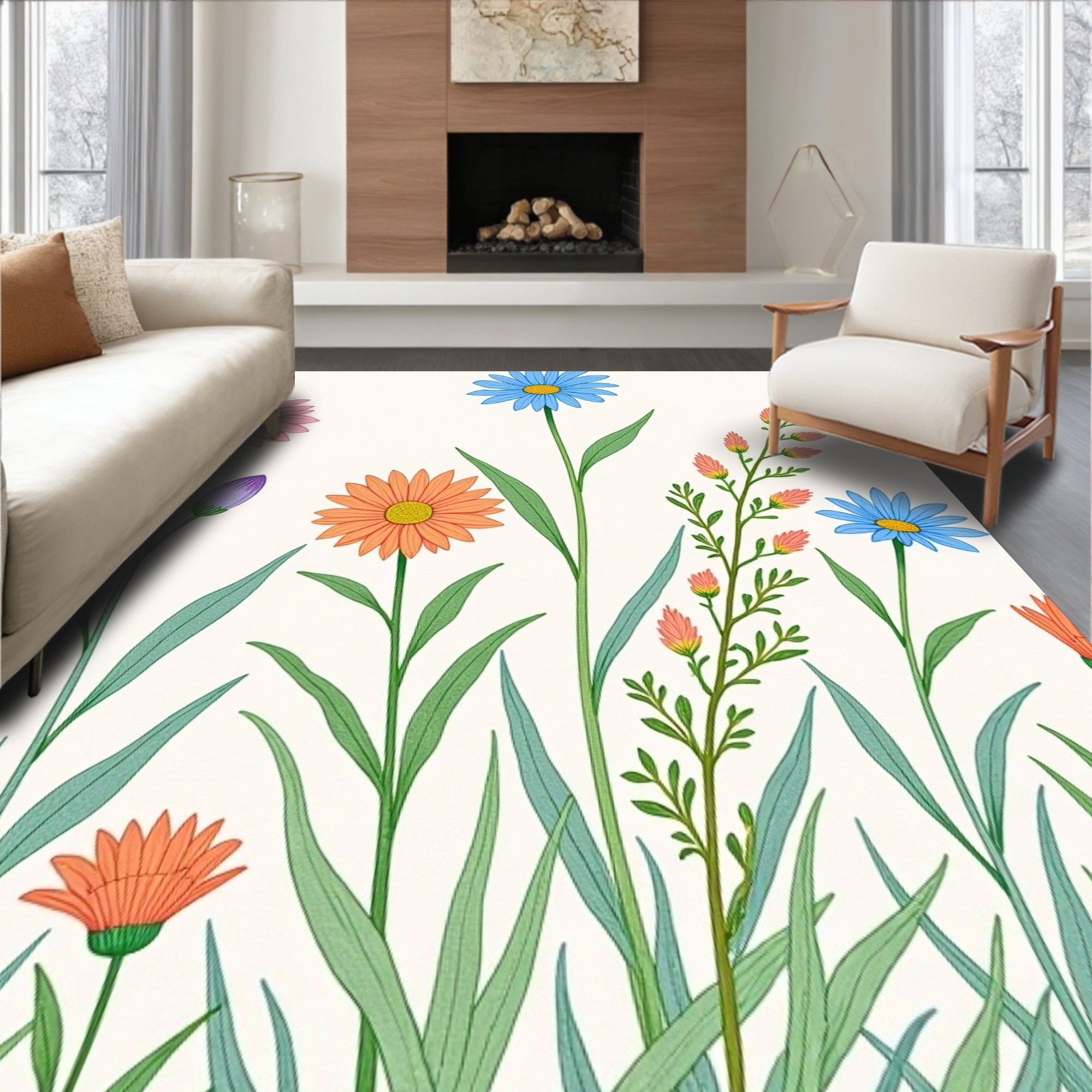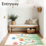 Ultra Soft Area Rug, Non Slip, Stain Resistant, Washable Area Rugs for Living Room, Bedroom, Botanical Wildflower Collection Meadow Blossoms Illustration(Green) Overview: