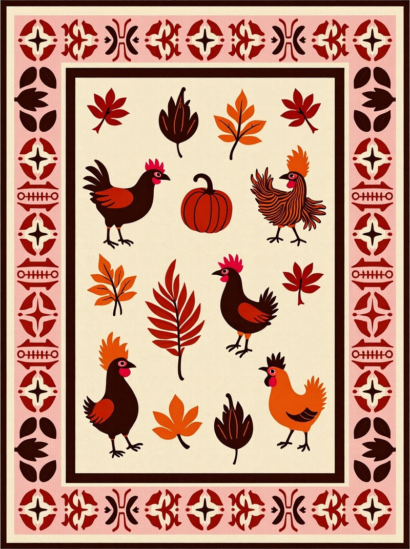Ultra Soft Area Rug, Non Slip, Stain Resistant, Washable Area Rugs for Living Room, Bedroom, Bountiful Feast Poultry Illustration Accent(Brown) Overview: