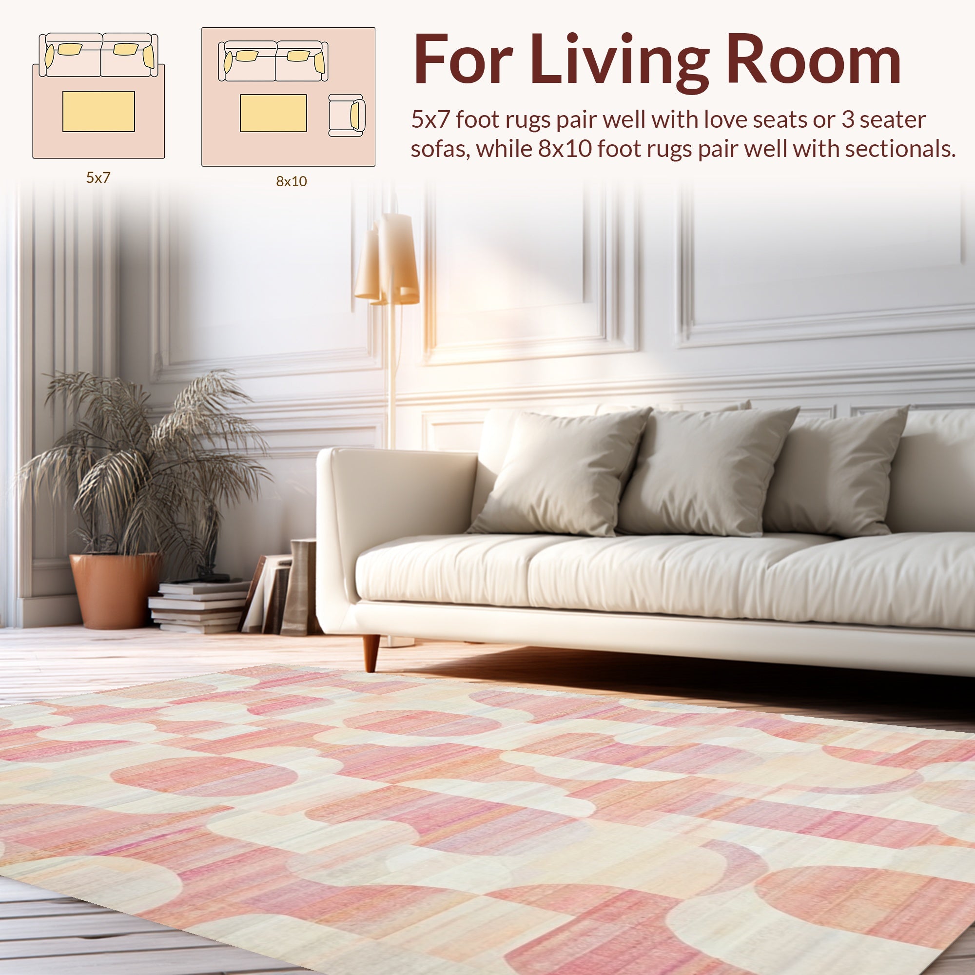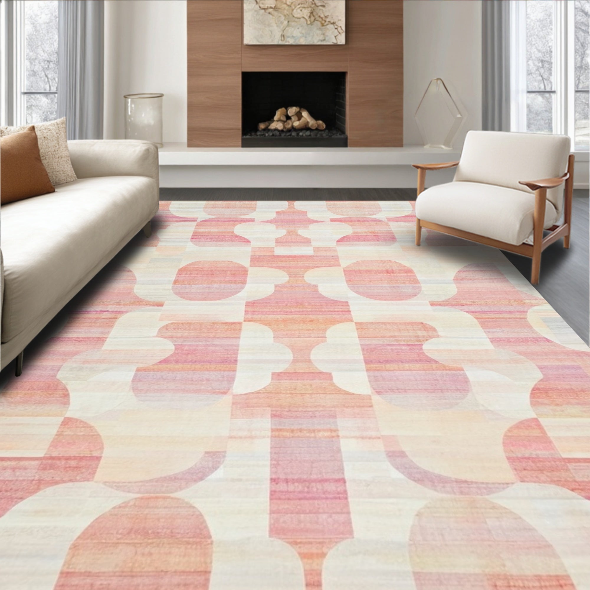 Ultra Soft Area Rug, Non Slip, Stain Resistant, Washable Area Rugs for Living Room, Bedroom, Bow-Tied Carpet, Geometric Abstraction(Beige) Overview: