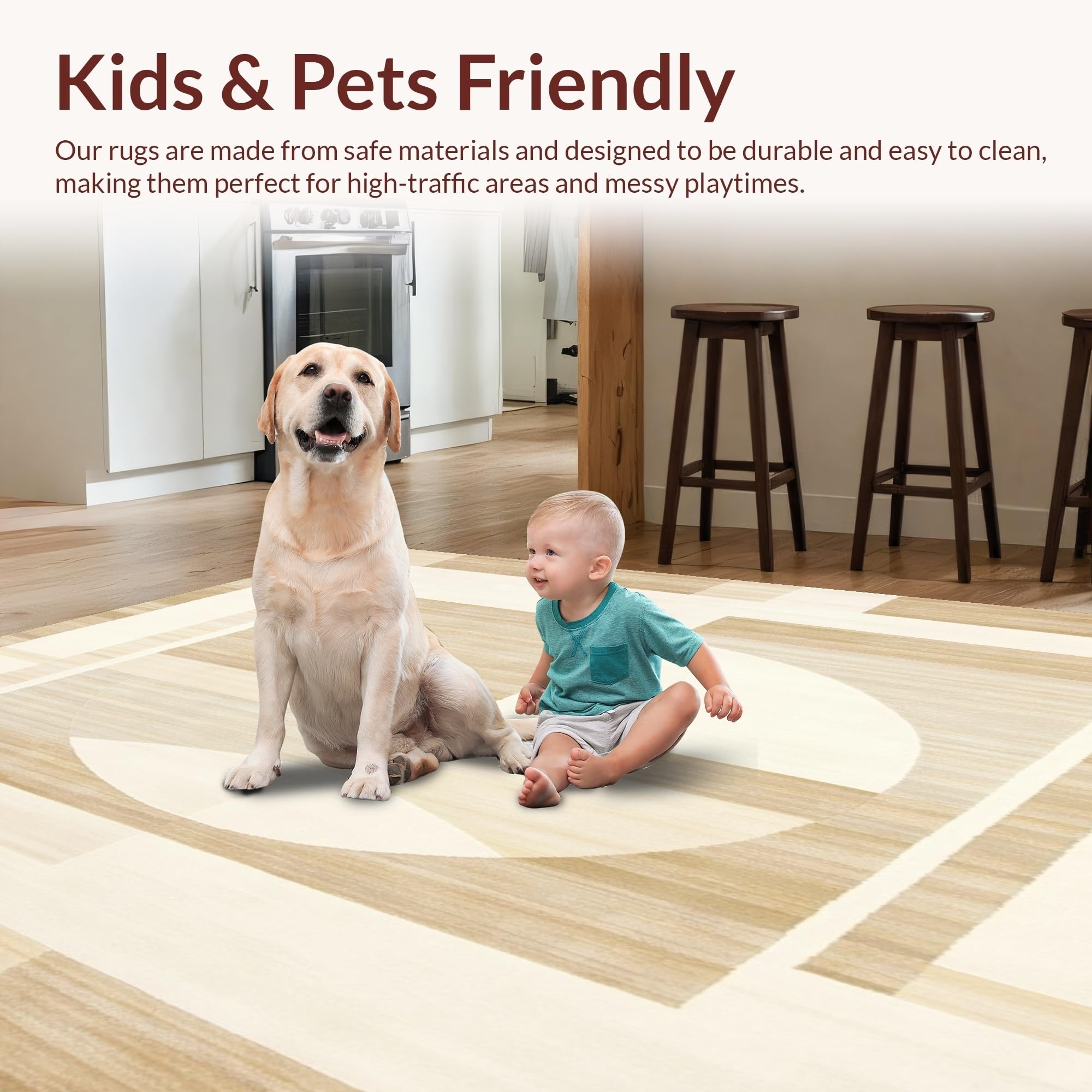 Ultra Soft Area Rug, Non Slip, Stain Resistant, Washable Area Rugs for Living Room, Bedroom, Briar Beige Area Geometric Minimalist Floor Art Eclectic Style(Beige) Overview: