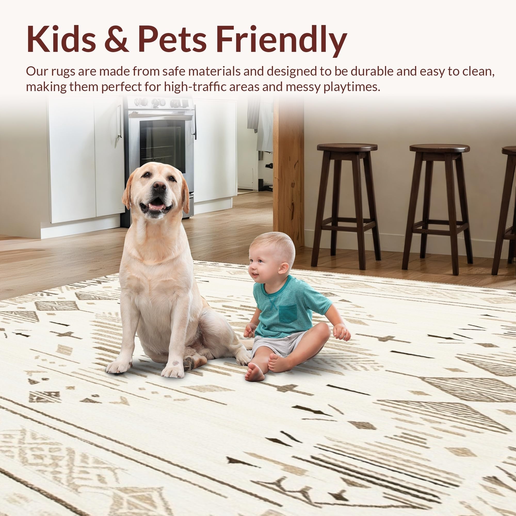 Ultra Soft Area Rug, Non Slip, Stain Resistant, Washable Area Rugs for Living Room, Bedroom, Briar Beige Area Minimalist Tribal Design Neutral Geometric(Beige) Overview: