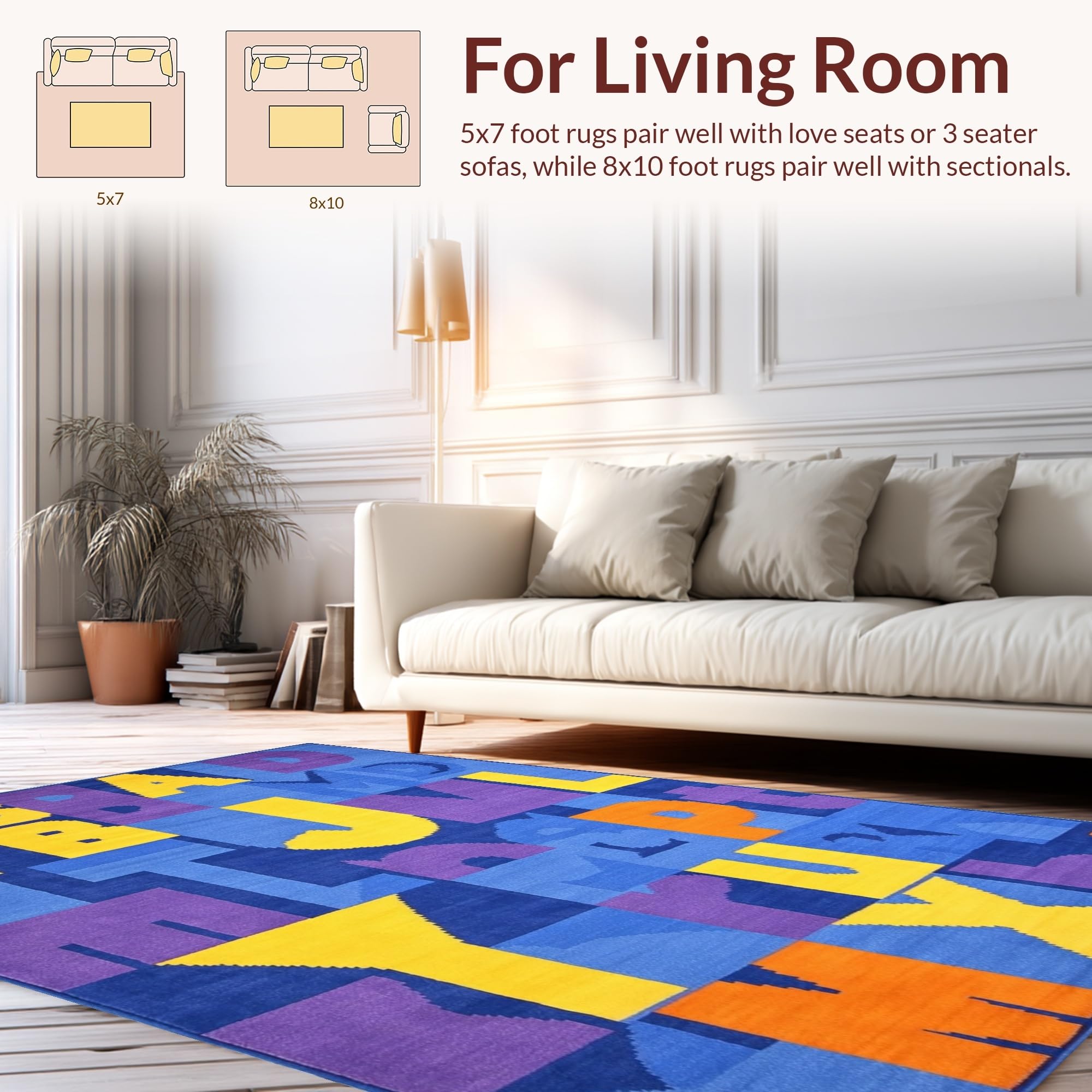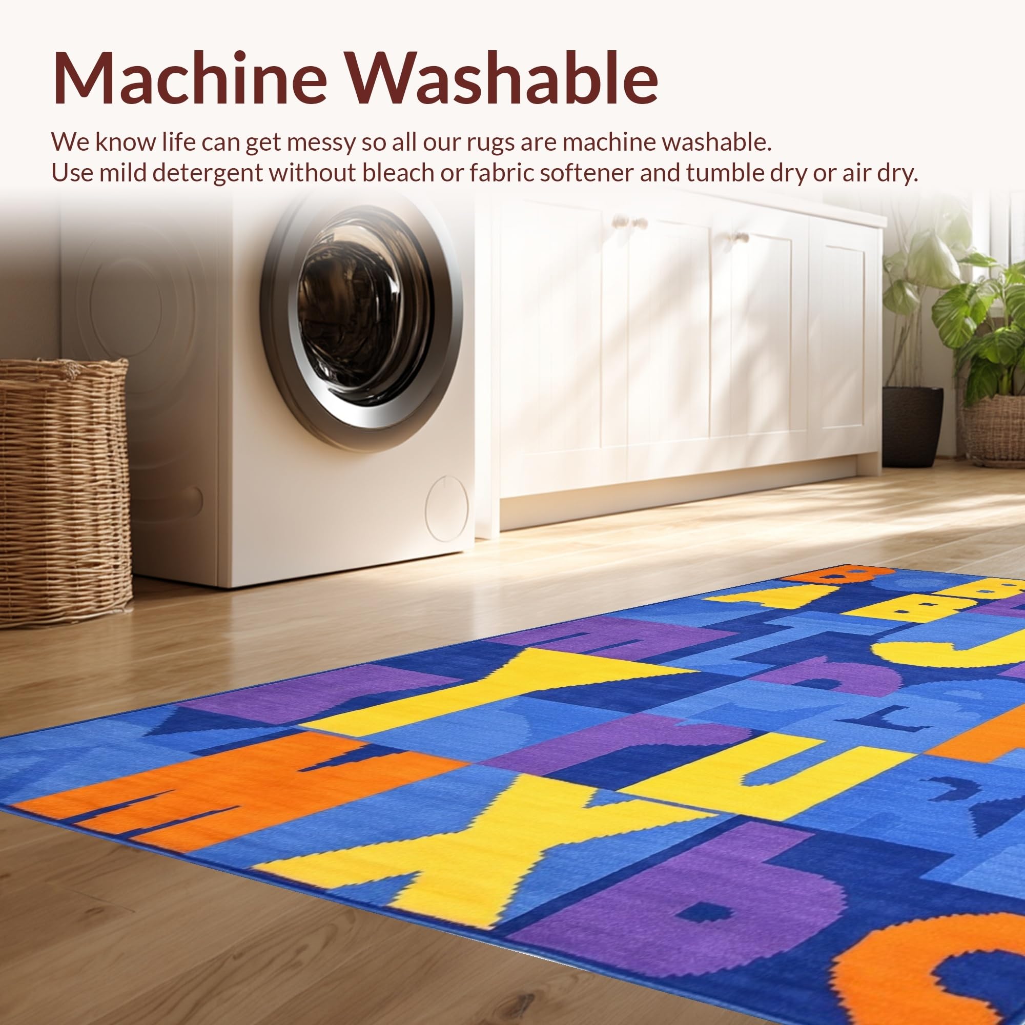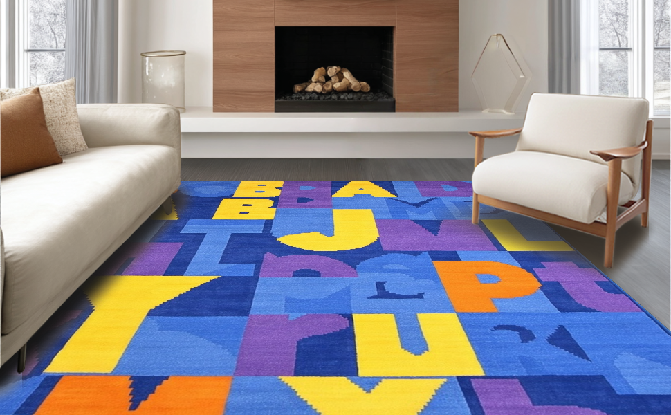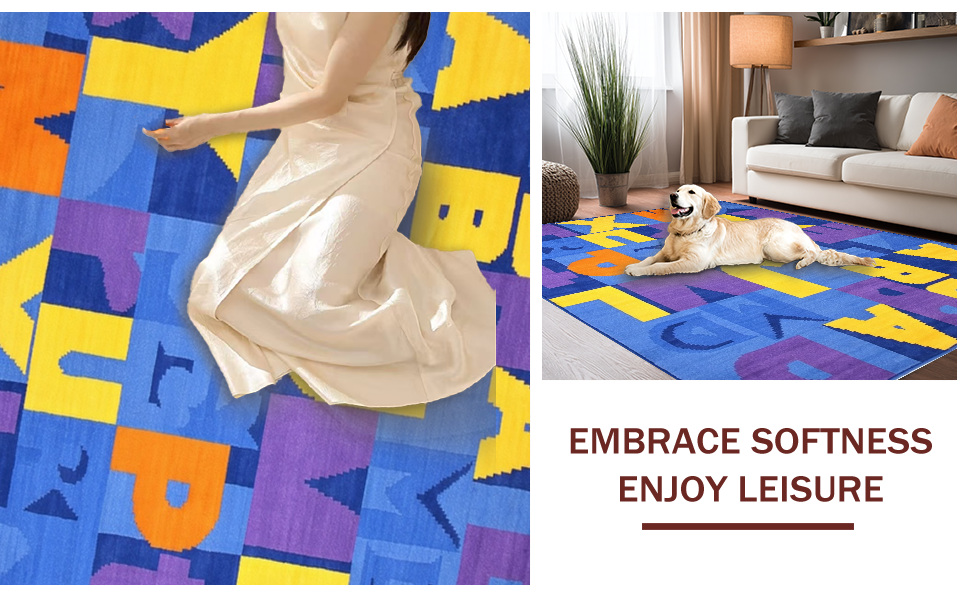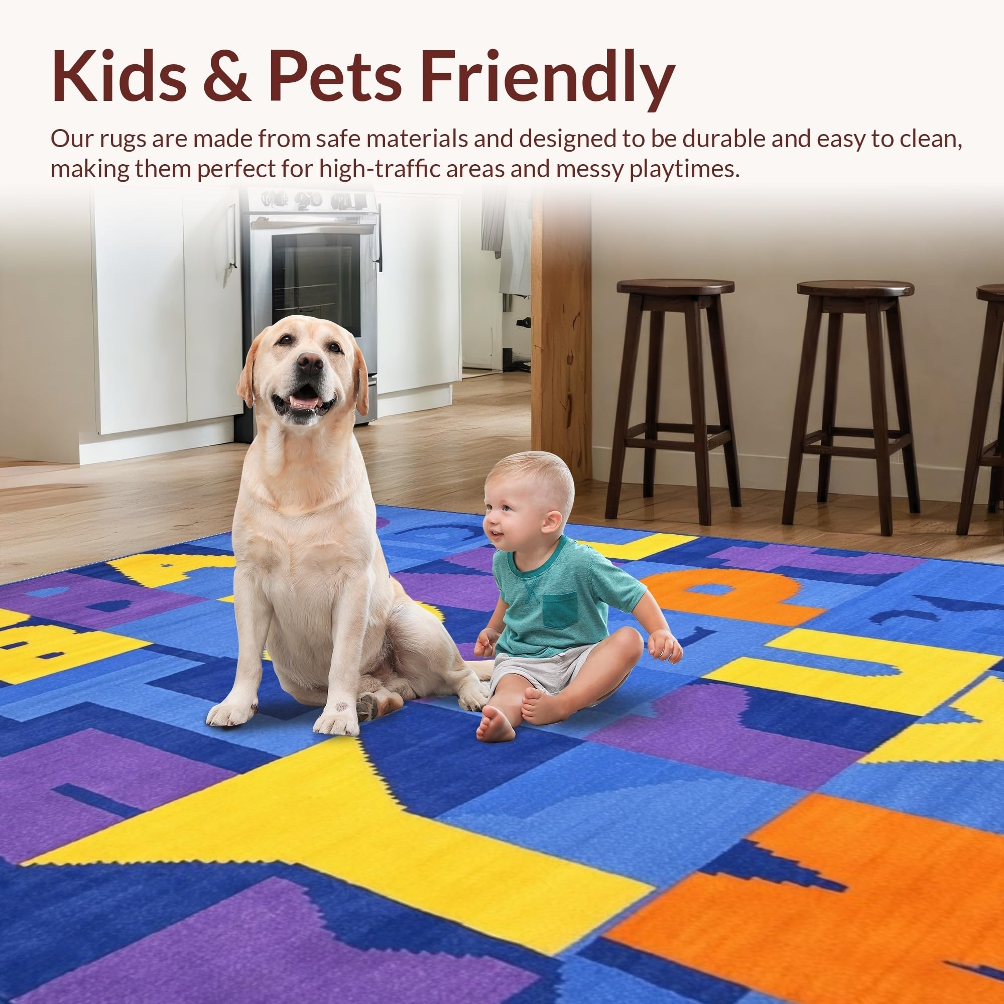 Ultra Soft Area Rug, Non Slip, Stain Resistant, Washable Area Rugs for Living Room, Bedroom, Bright ABC Patterned Educational Carpet(Blue) Overview: