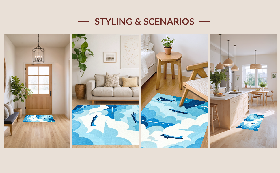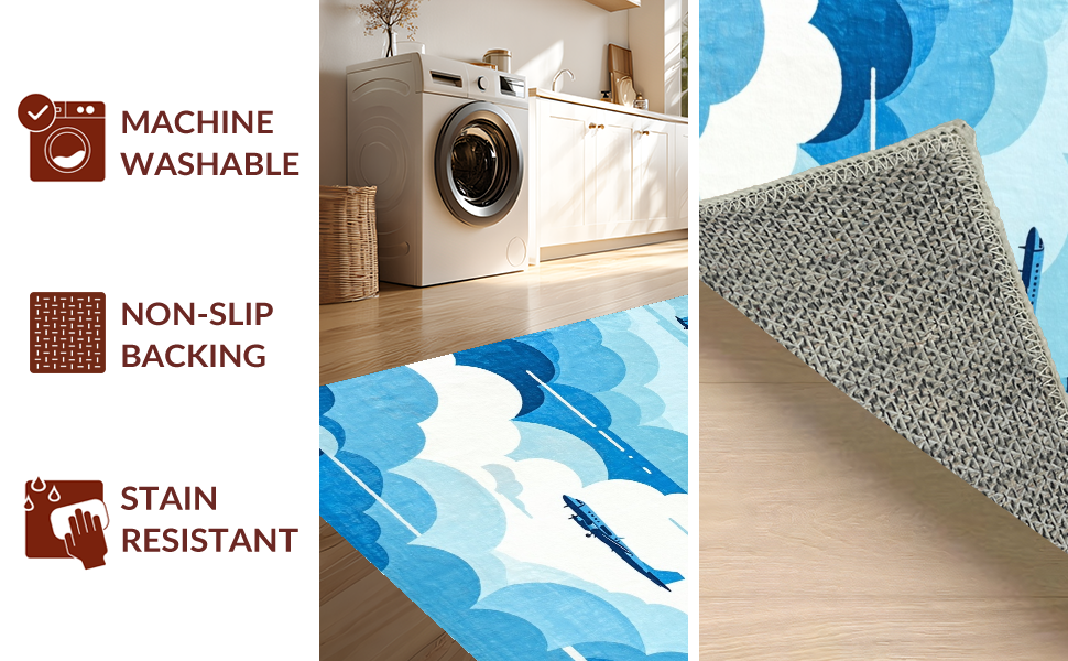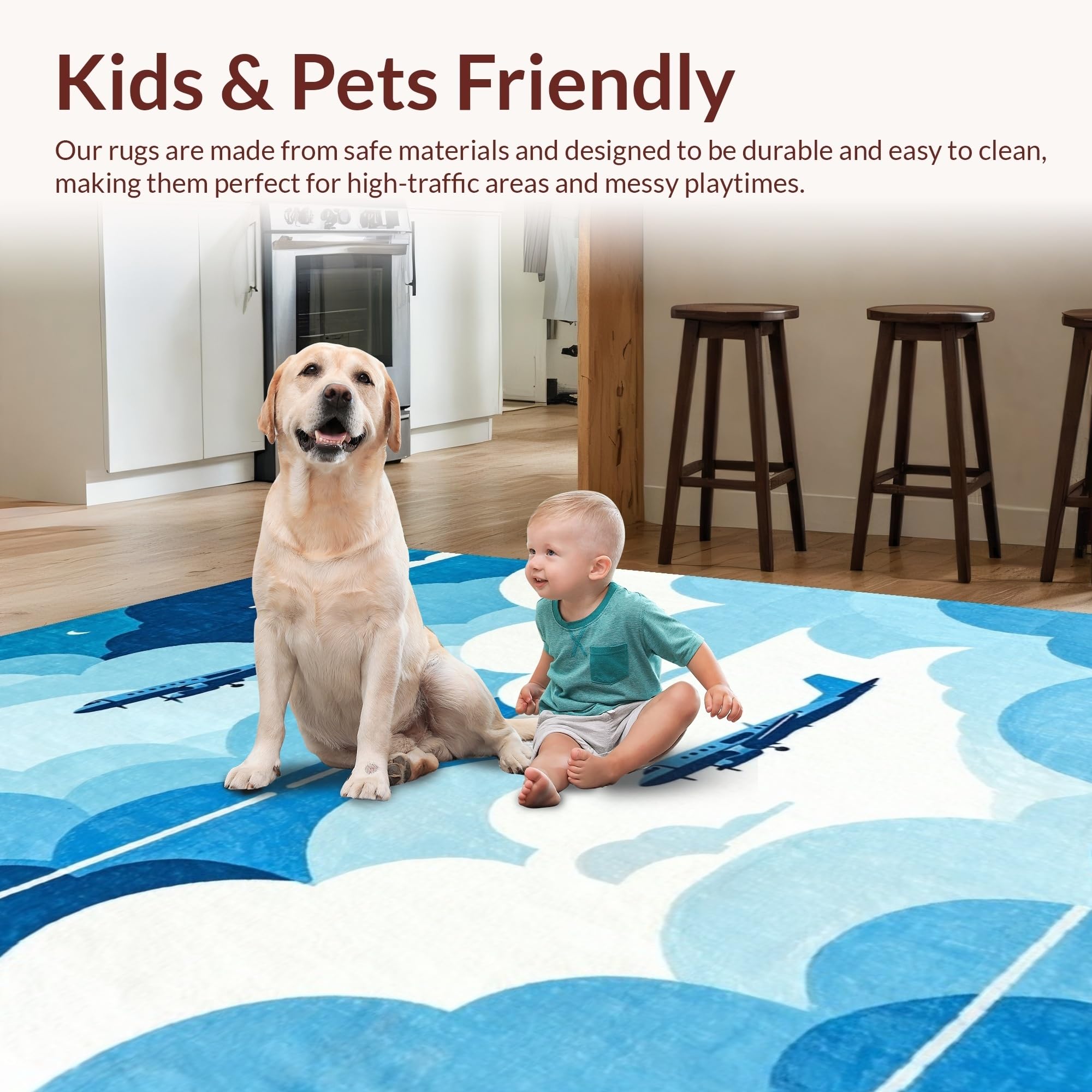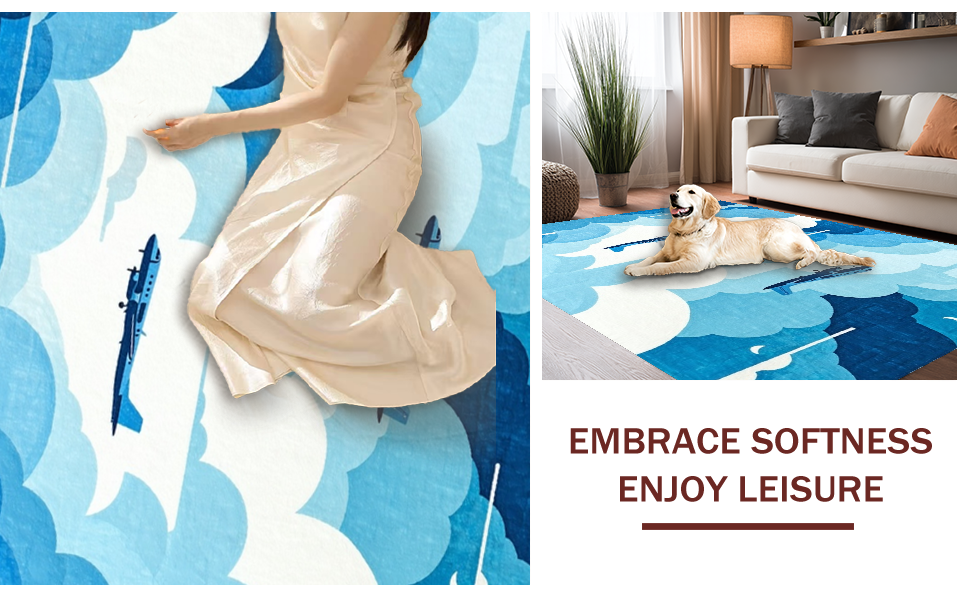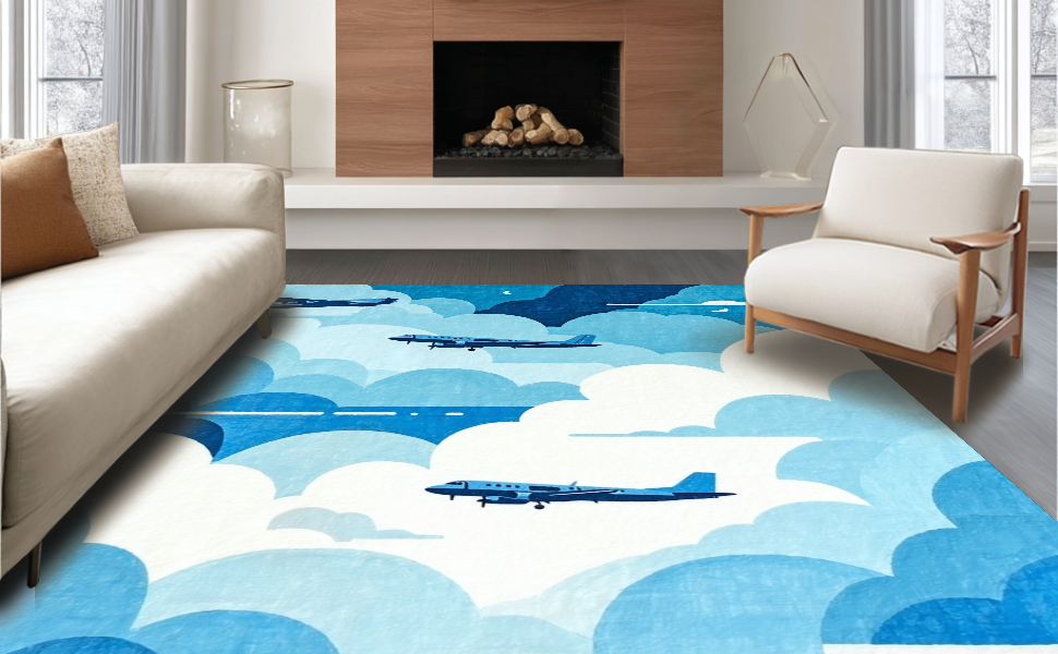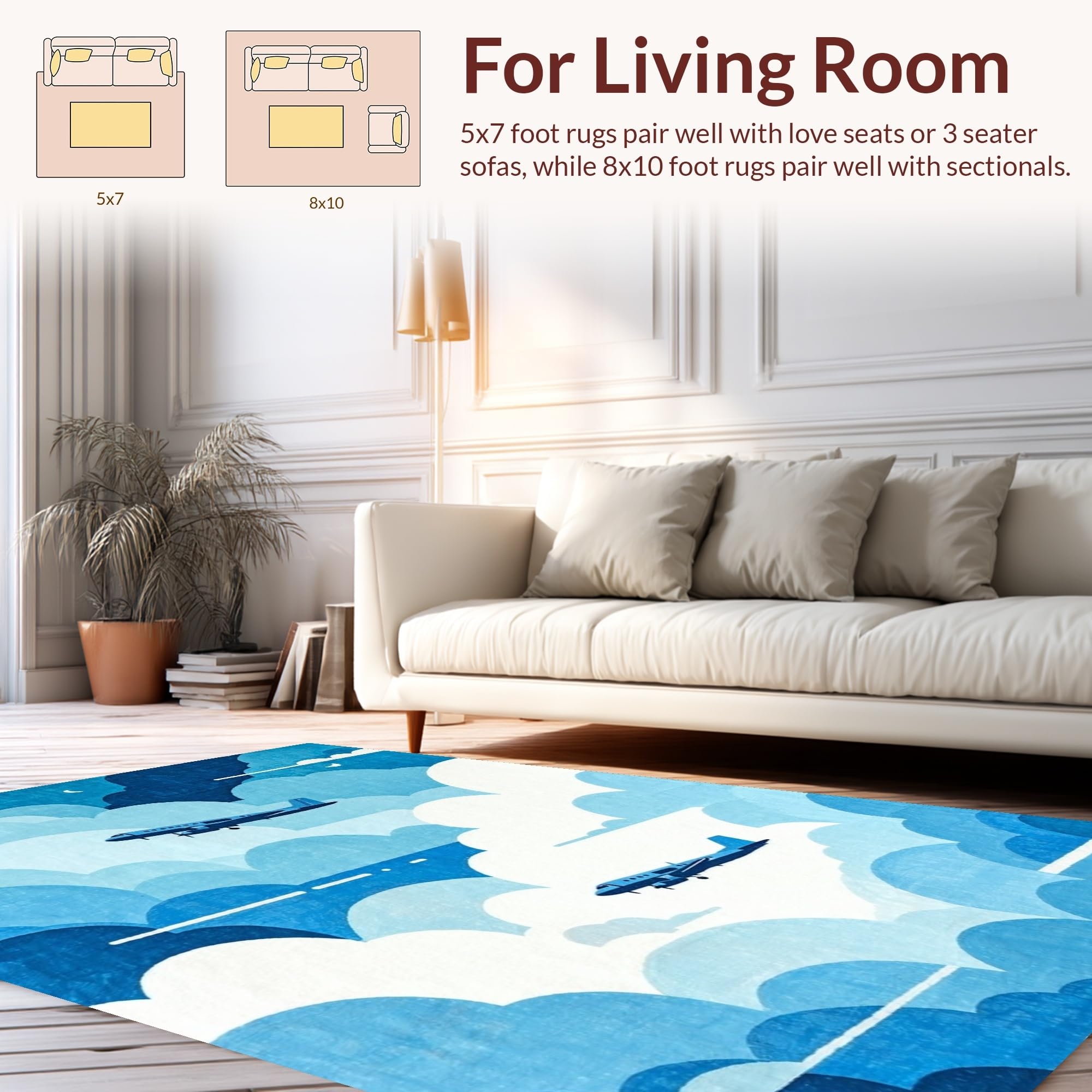 Ultra Soft Area Rug, Non Slip, Stain Resistant, Washable Area Rugs for Living Room, Bedroom, Bright Aircraft Blue Tones(Blue) Overview: