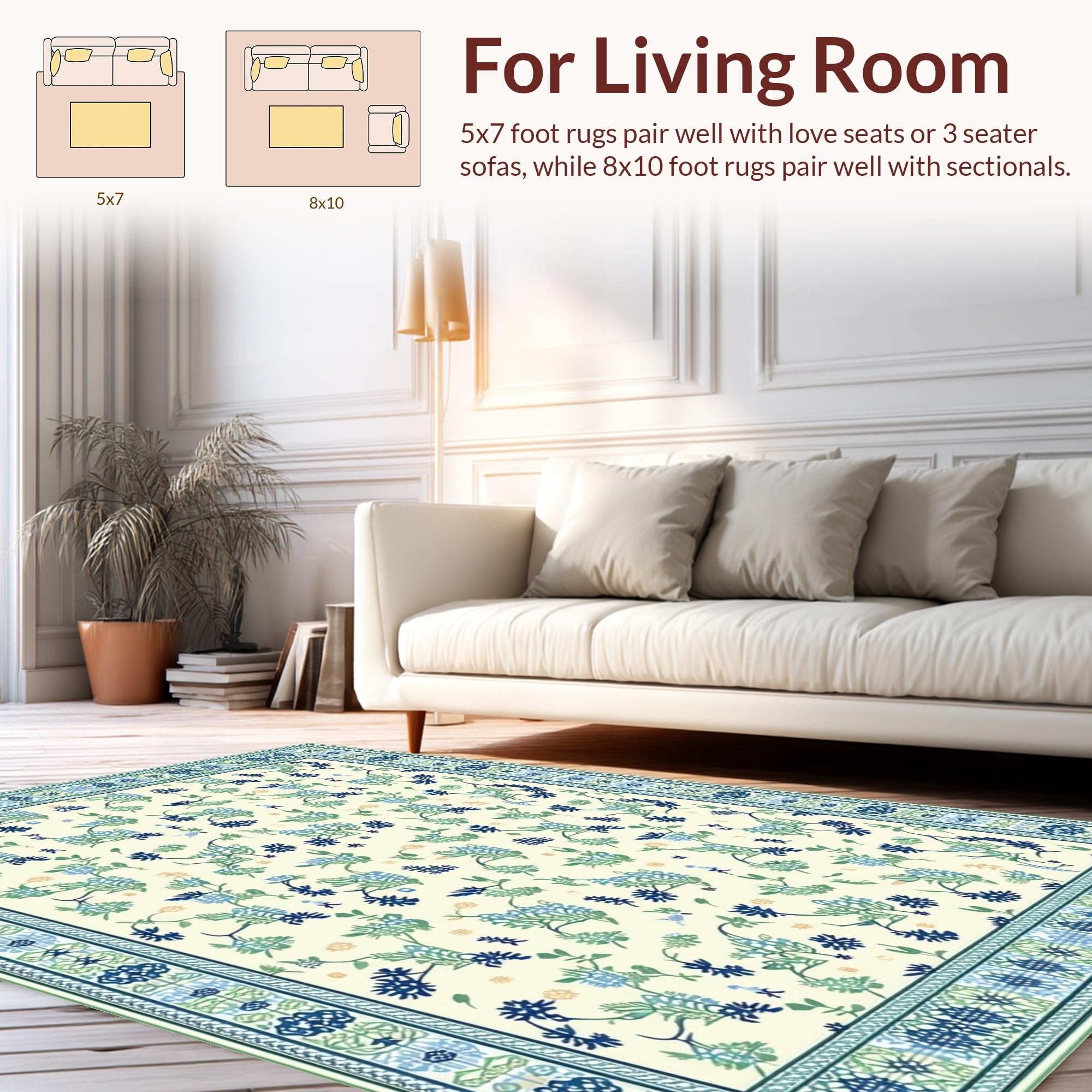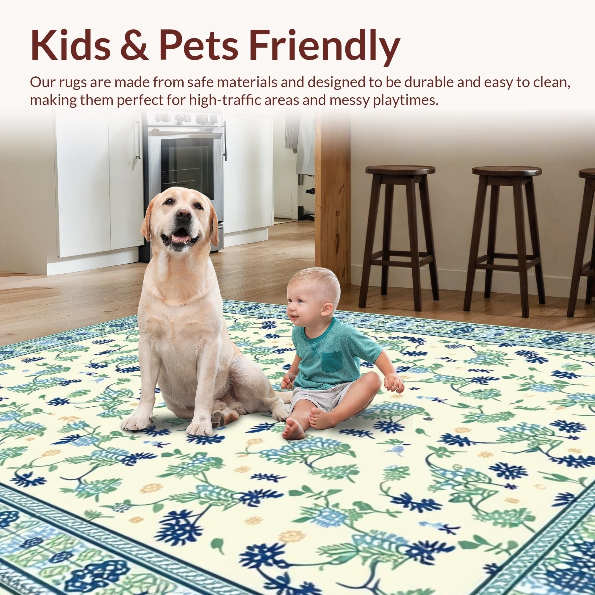 Ultra Soft Area Rug, Non Slip, Stain Resistant, Washable Area Rugs for Living Room, Bedroom, Bright and Cheerful Safari Style(Ivory) Overview:
