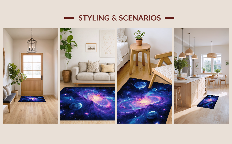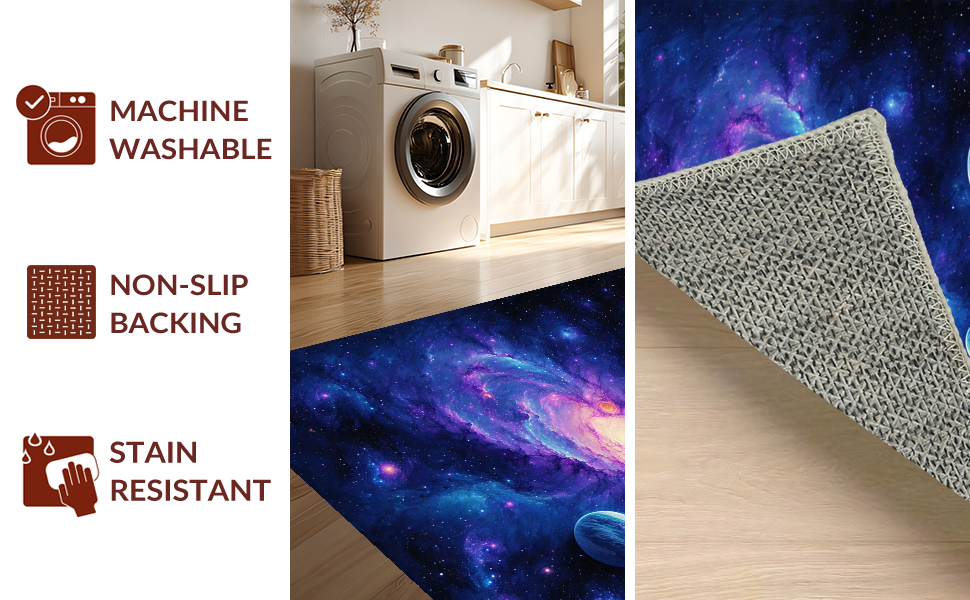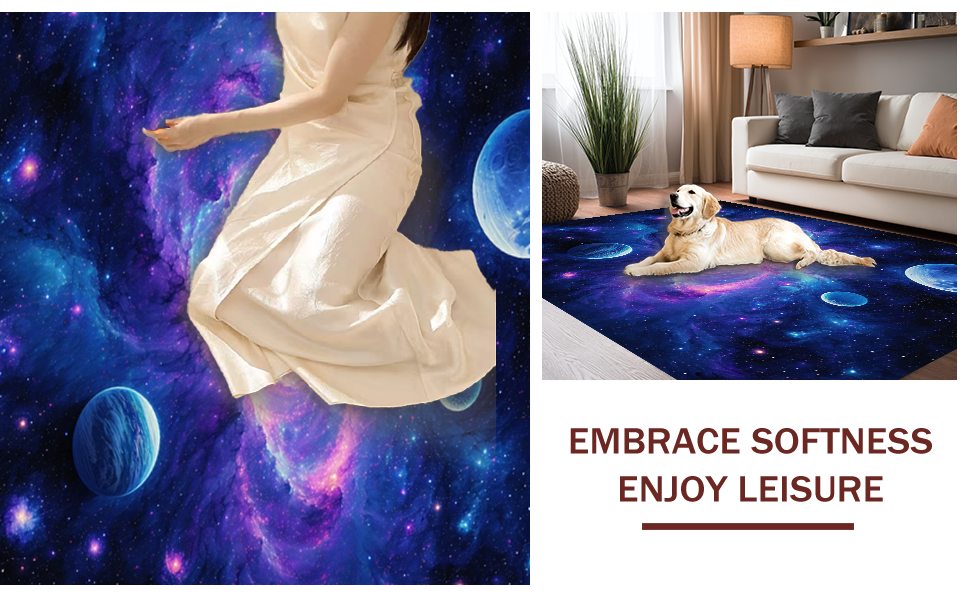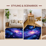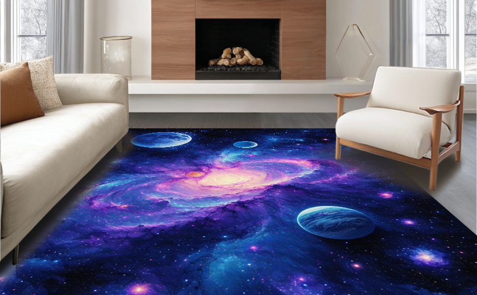 Ultra Soft Area Rug, Non Slip, Stain Resistant, Washable Area Rugs for Living Room, Bedroom, Bright Astral Elements Fusion(Blue) Overview: