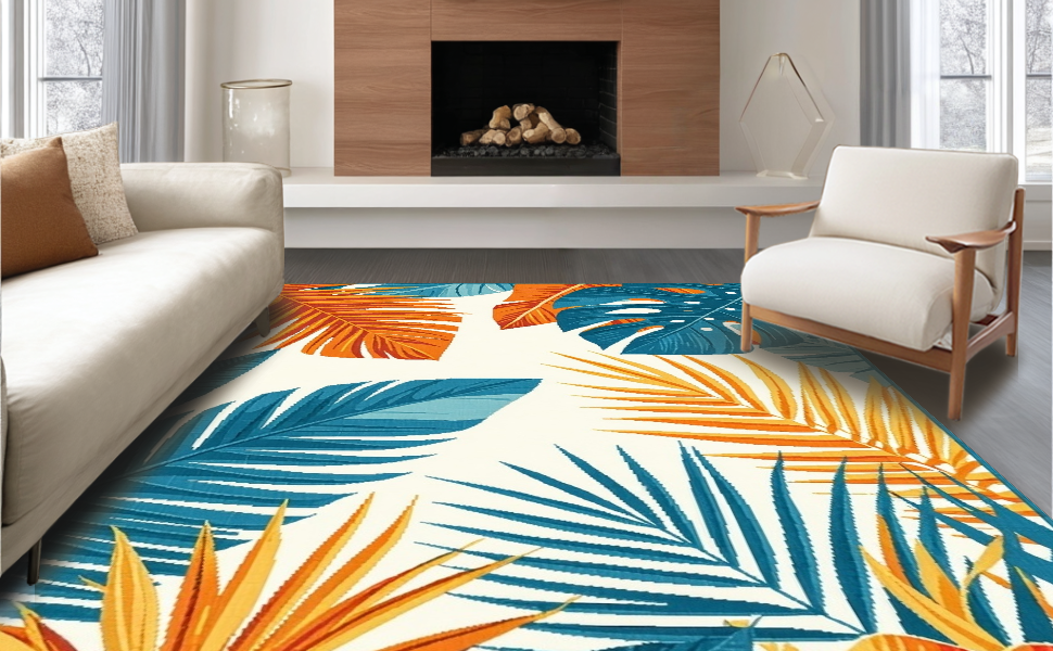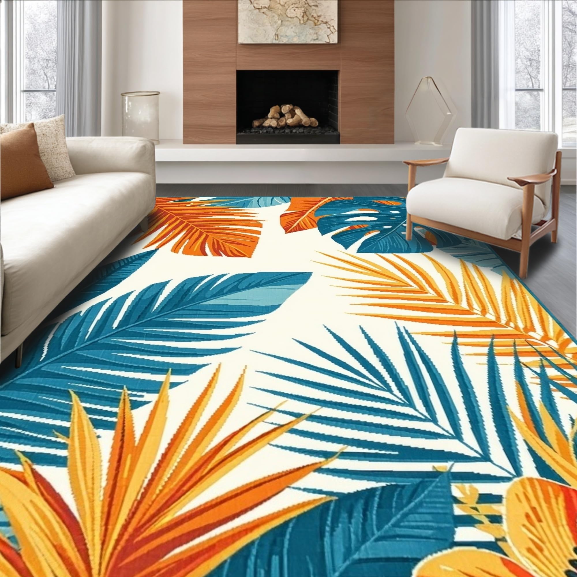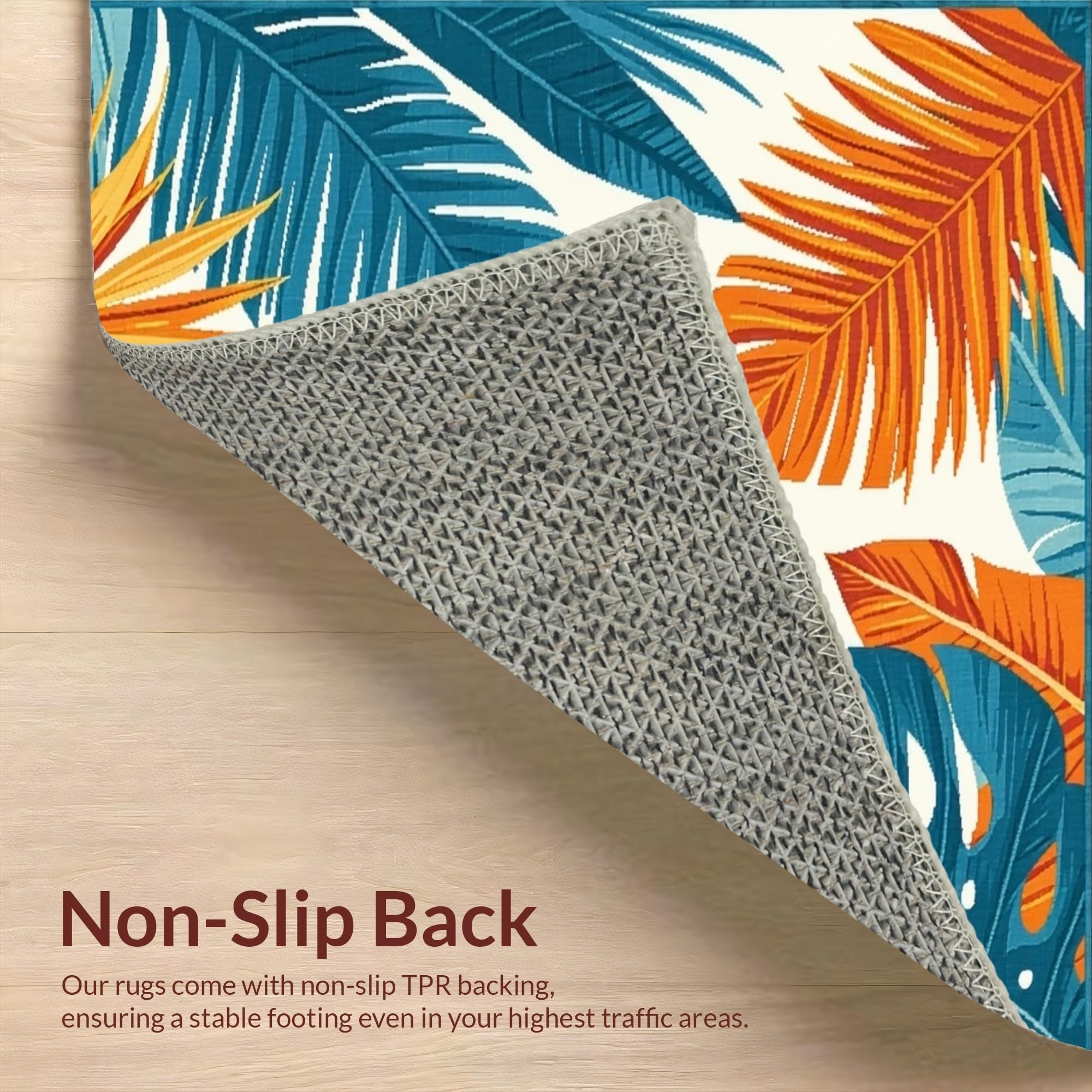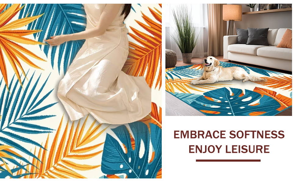 Ultra Soft Area Rug, Non Slip, Stain Resistant, Washable Area Rugs for Living Room, Bedroom, Bright Botanical Geometric Fusion(Blue) Overview:
