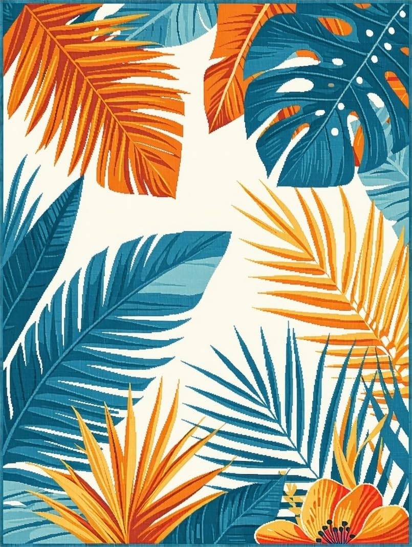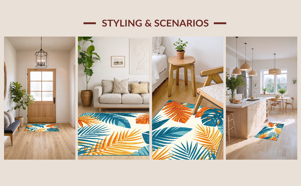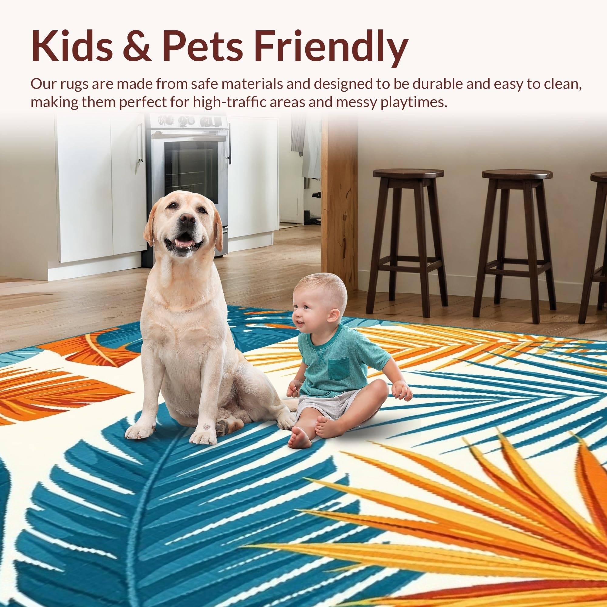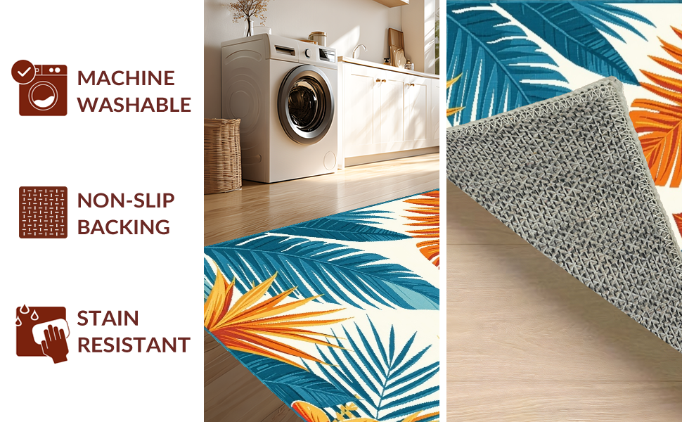 Ultra Soft Area Rug, Non Slip, Stain Resistant, Washable Area Rugs for Living Room, Bedroom, Bright Botanical Geometric Fusion(Blue) Overview: