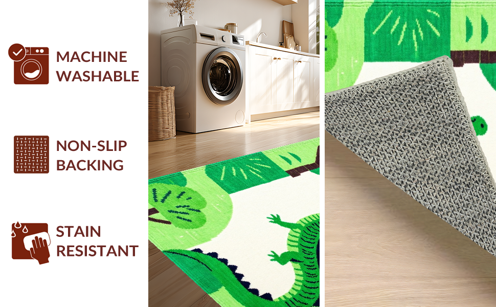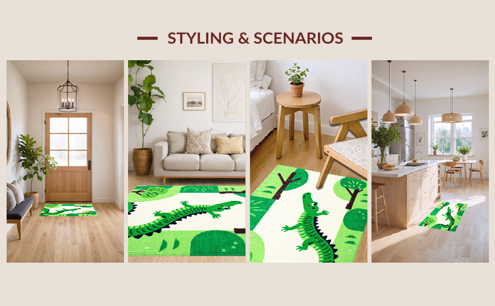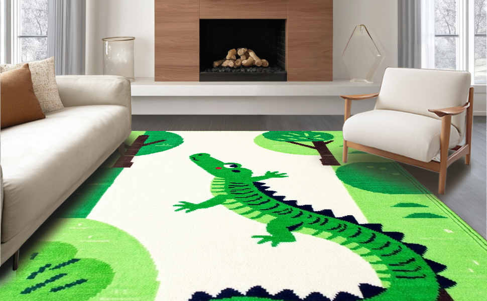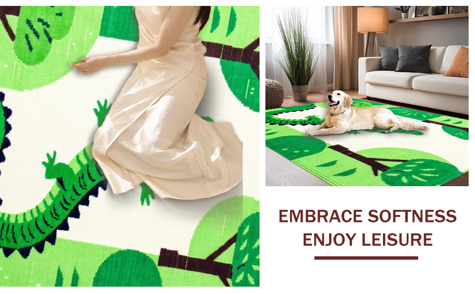 Ultra Soft Area Rug, Non Slip, Stain Resistant, Washable Area Rugs for Living Room, Bedroom, Bright Cartoon Style Decorative Piece(Green) Overview:
