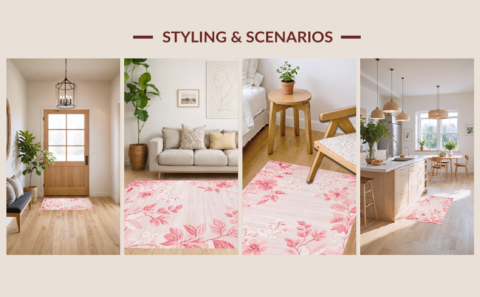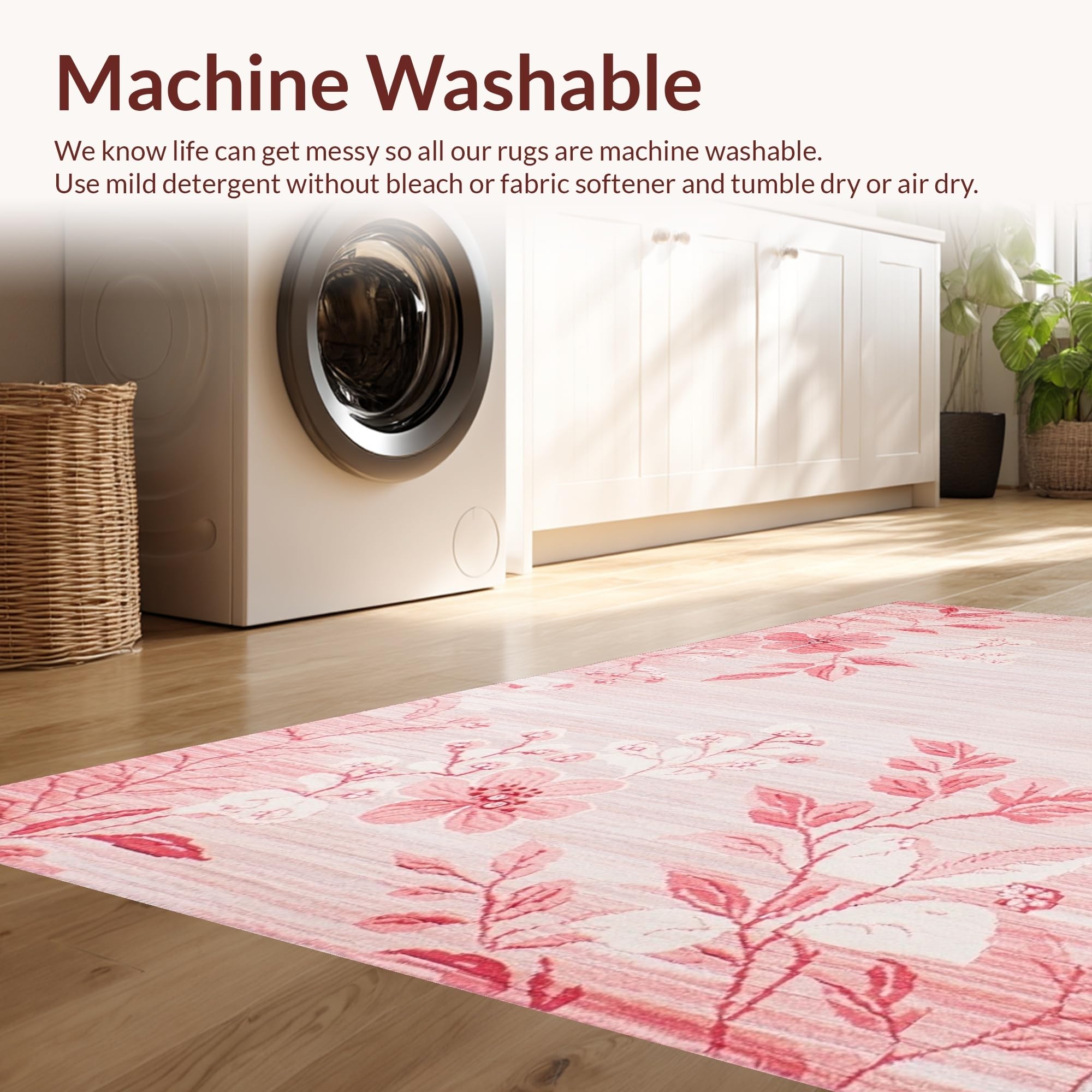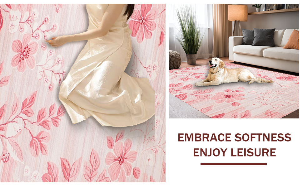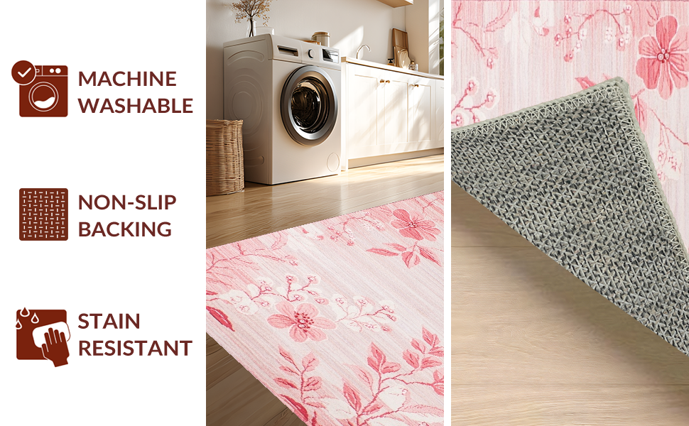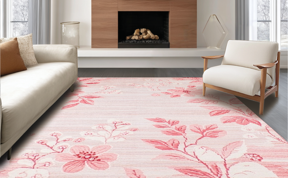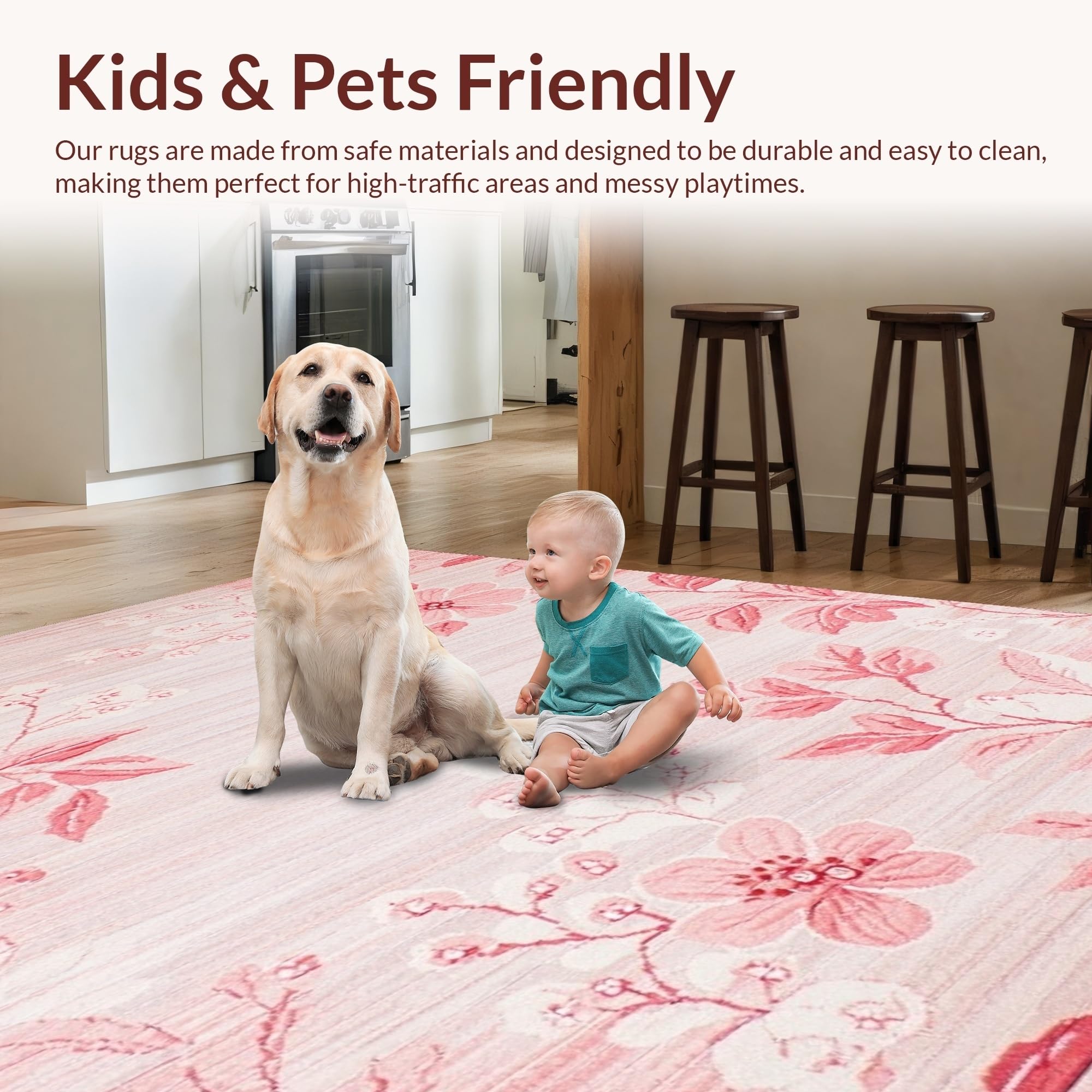 Ultra Soft Area Rug, Non Slip, Stain Resistant, Washable Area Rugs for Living Room, Bedroom, Bright Cheerful Bloom Pattern(Pink) Overview: