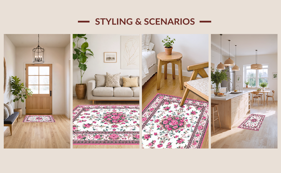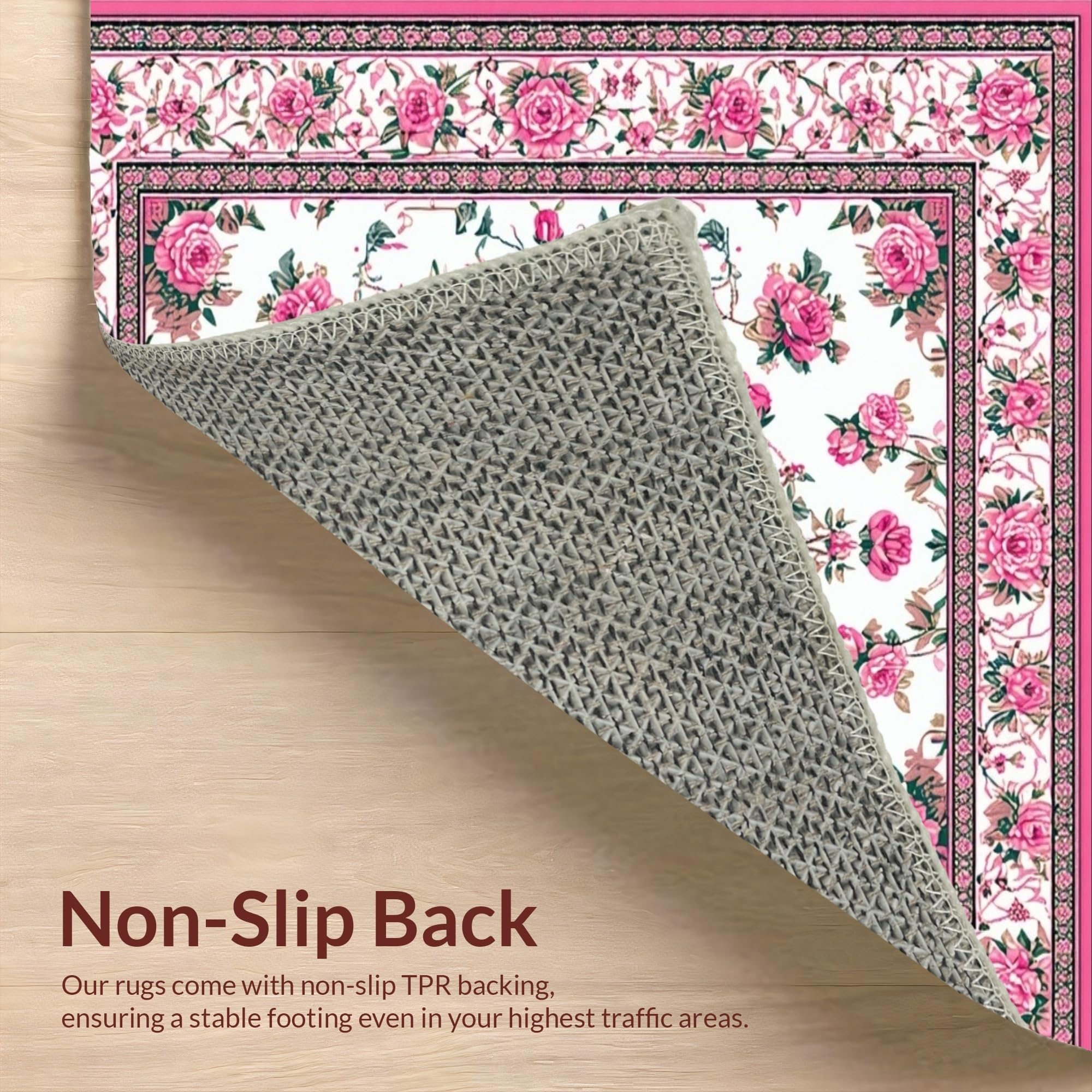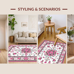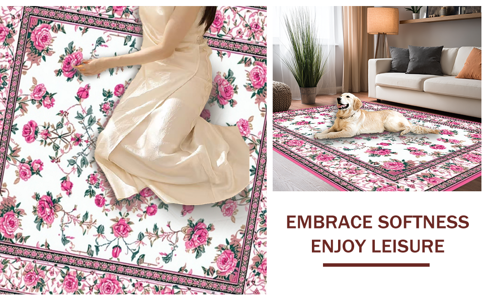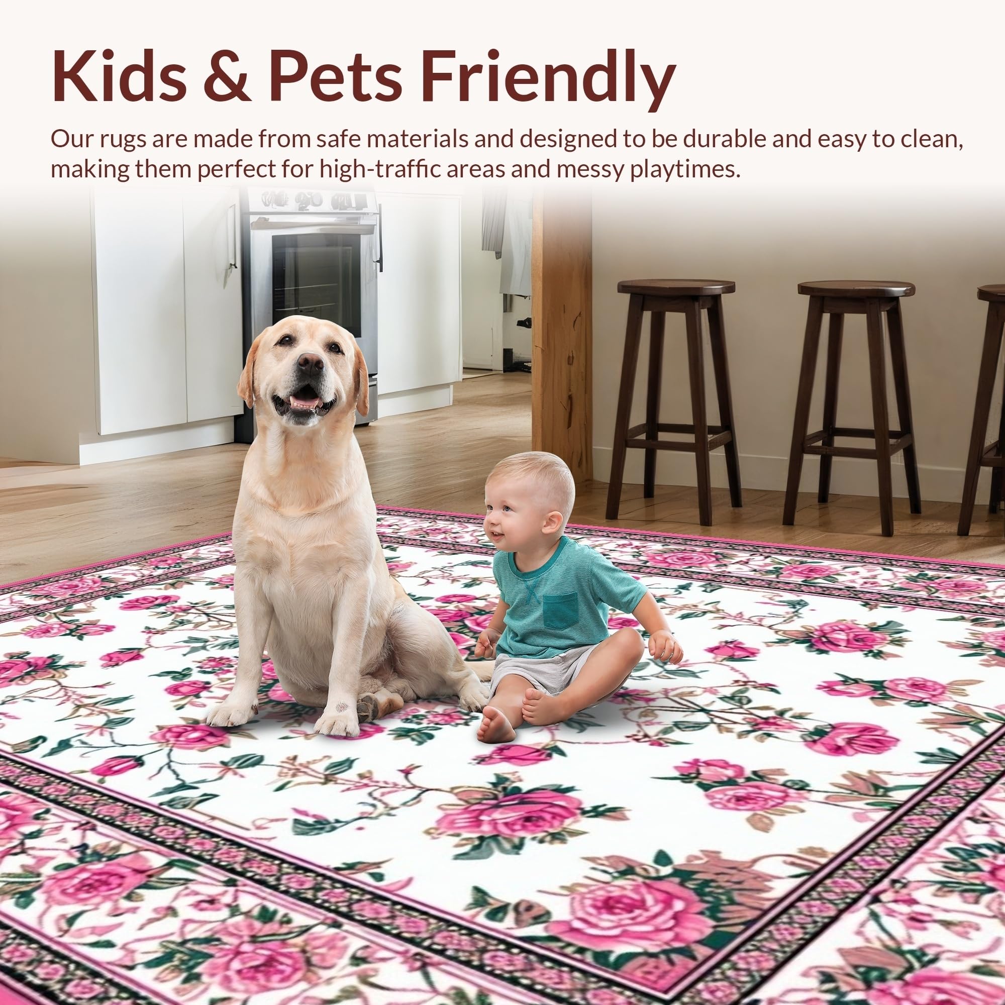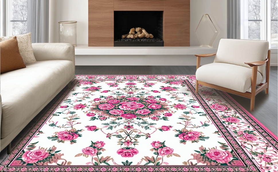 Ultra Soft Area Rug, Non Slip, Stain Resistant, Washable Area Rugs for Living Room, Bedroom, Bright Cheerful Blossom Artwork(Pink) Overview: