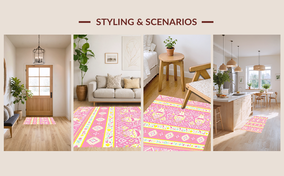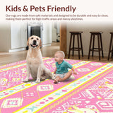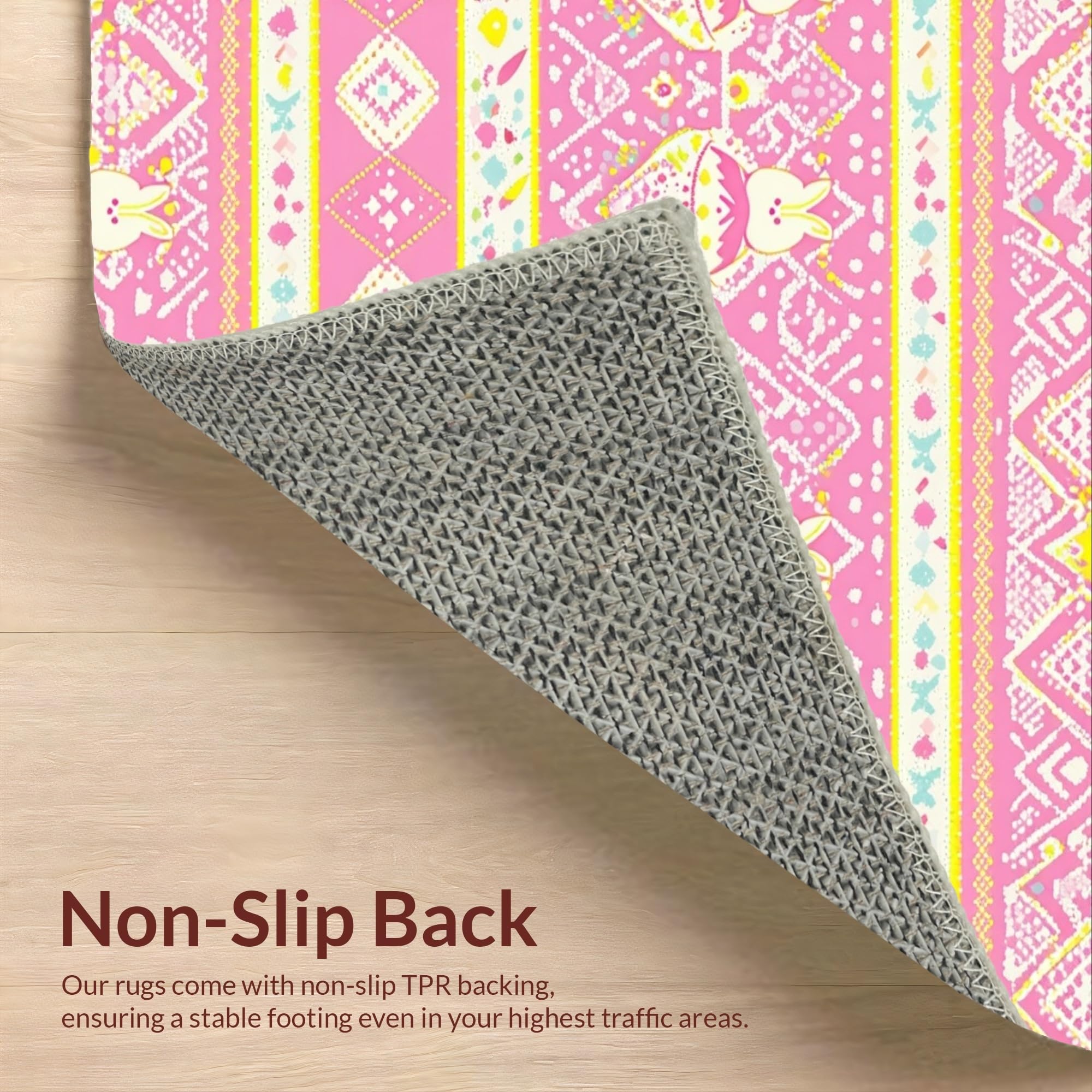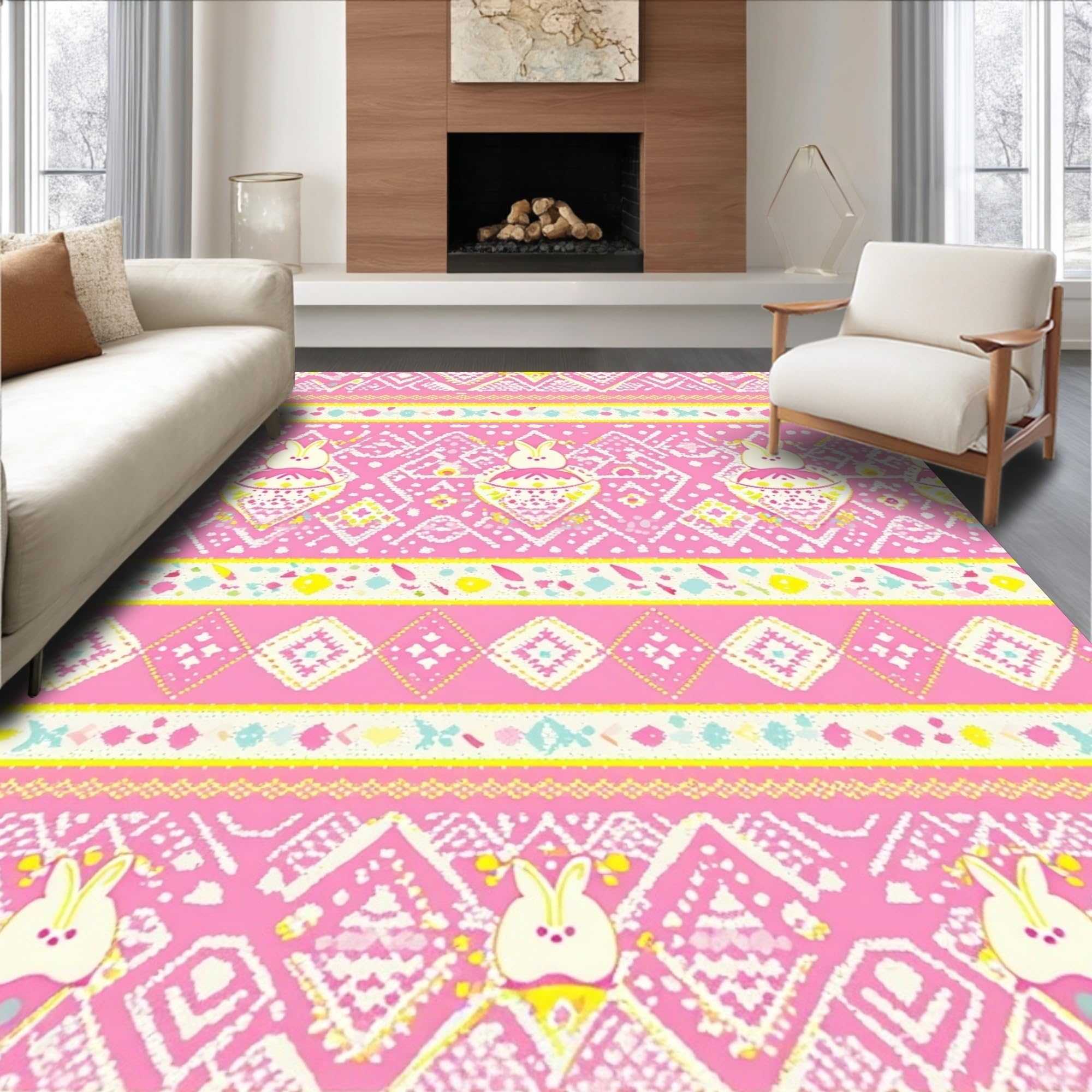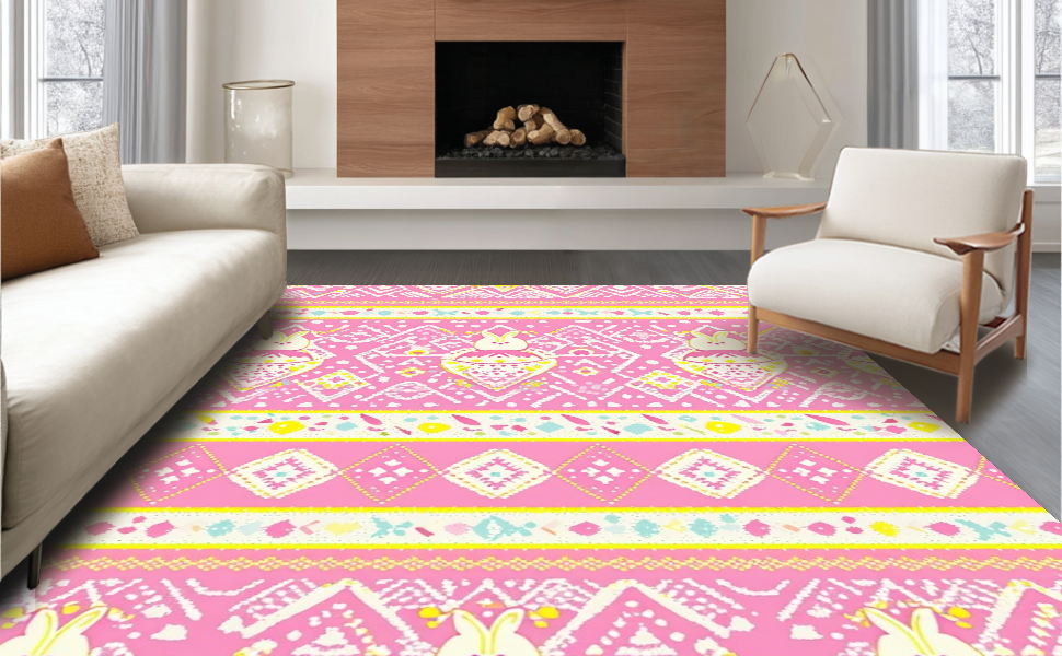 Ultra Soft Area Rug, Non Slip, Stain Resistant, Washable Area Rugs for Living Room, Bedroom, Bright Cheerful Bunny Artistry(Pink) Overview: