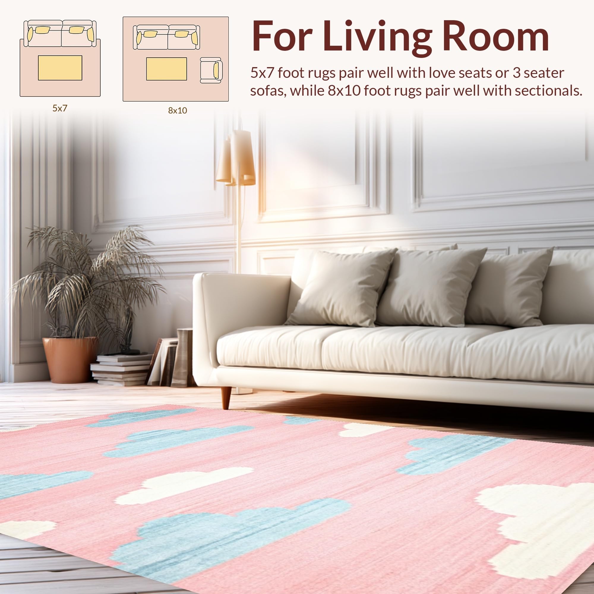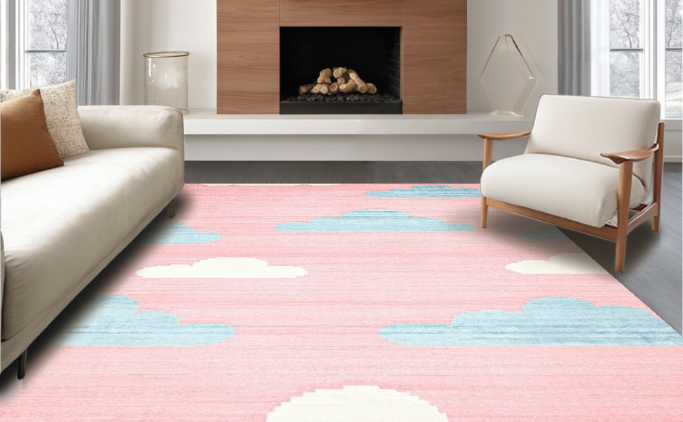 Ultra Soft Area Rug, Non Slip, Stain Resistant, Washable Area Rugs for Living Room, Bedroom, Bright Cheerful Cartoonish Decor Element(Pink) Overview: