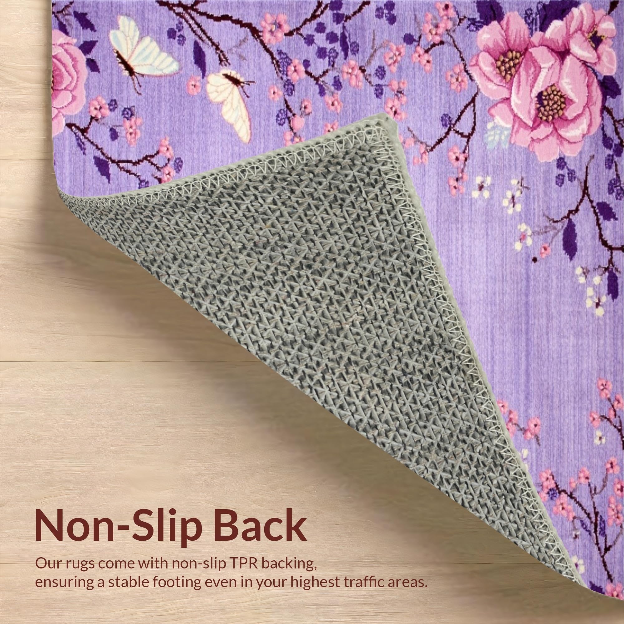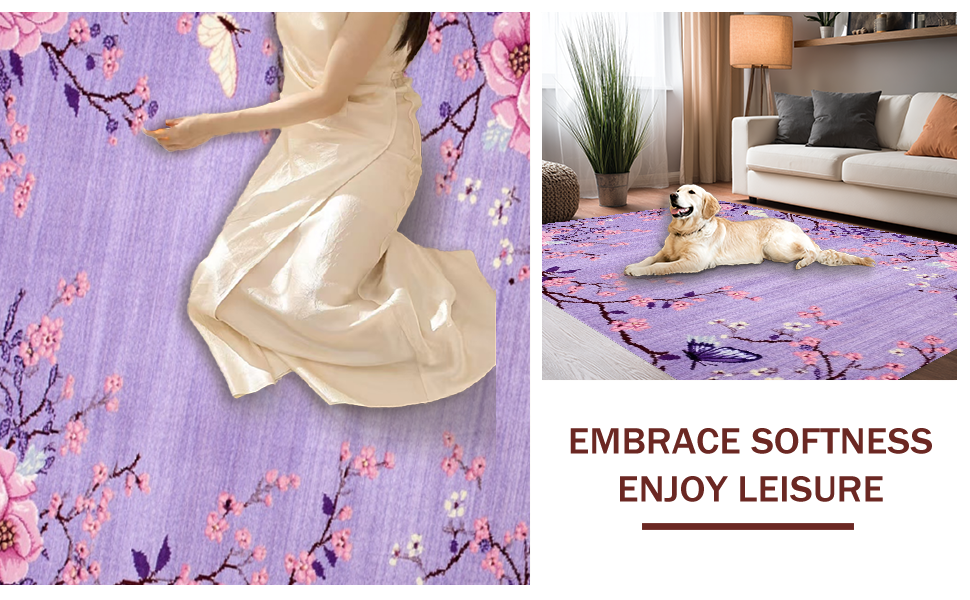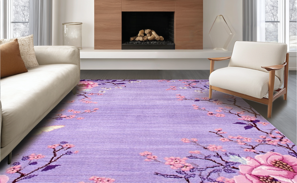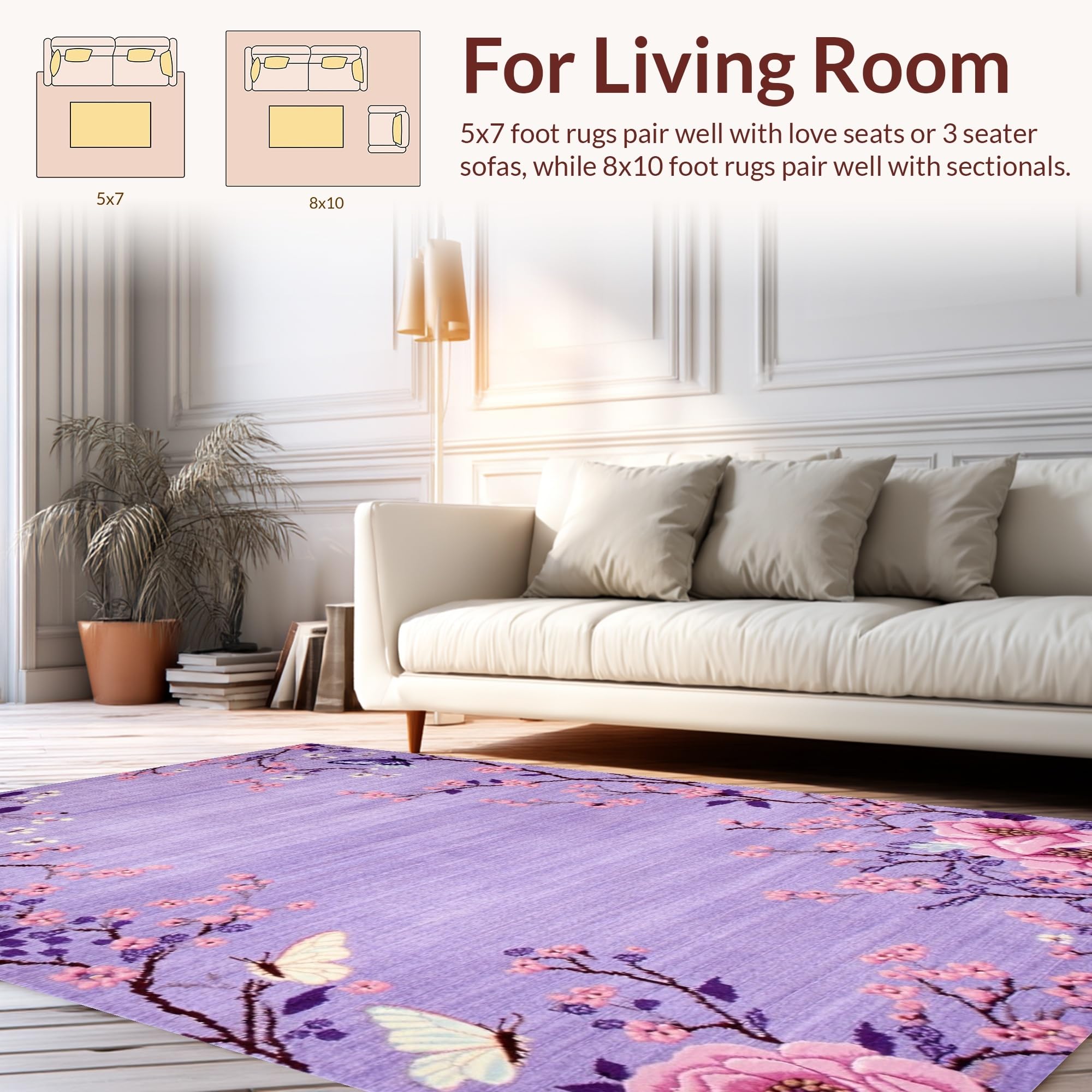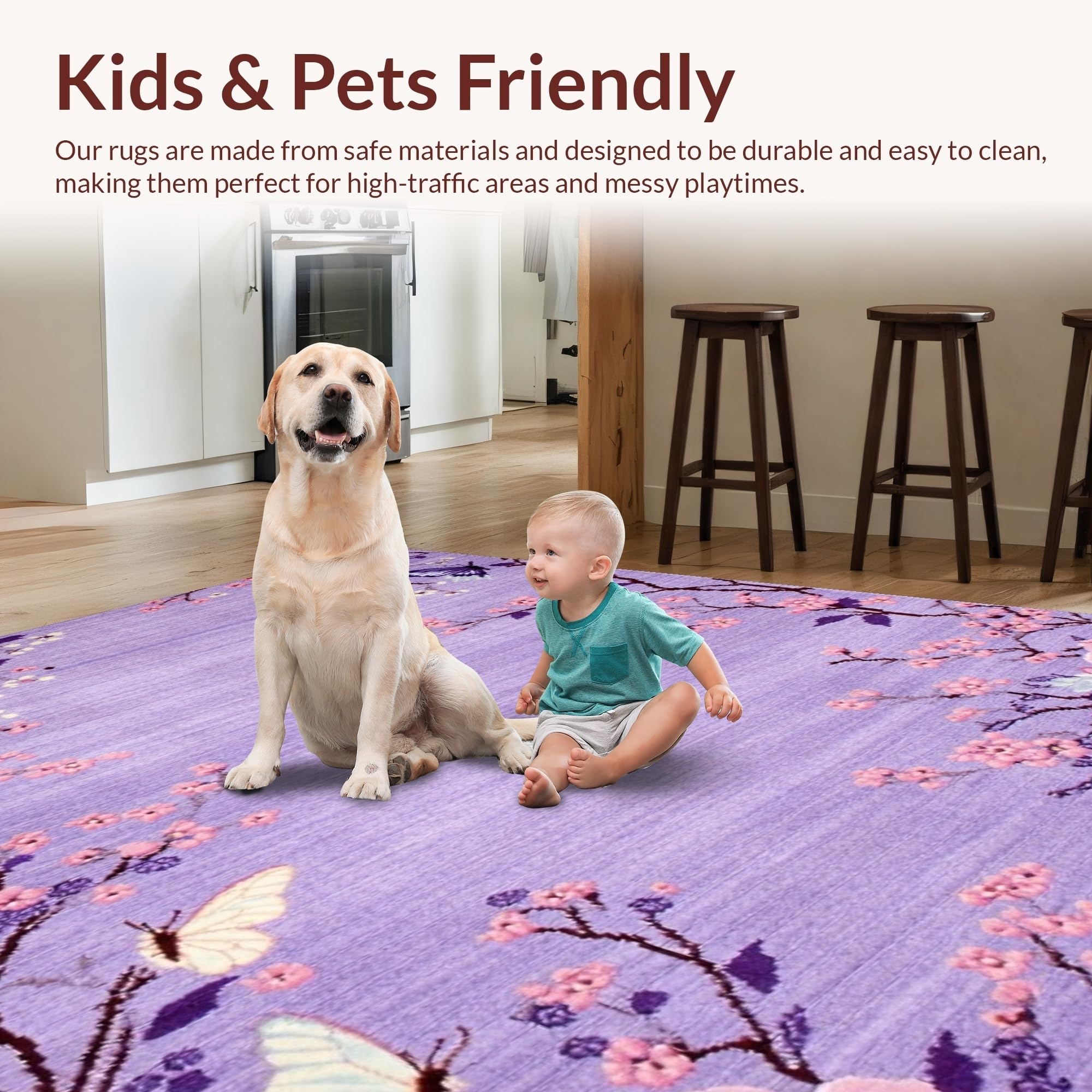 Ultra Soft Area Rug, Non Slip, Stain Resistant, Washable Area Rugs for Living Room, Bedroom, Bright Cheerful Floral Composition(Purple) Overview:
