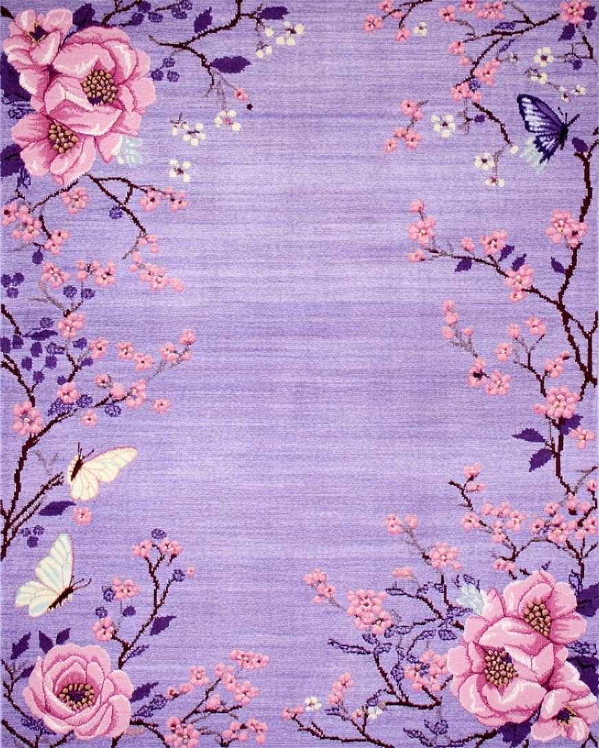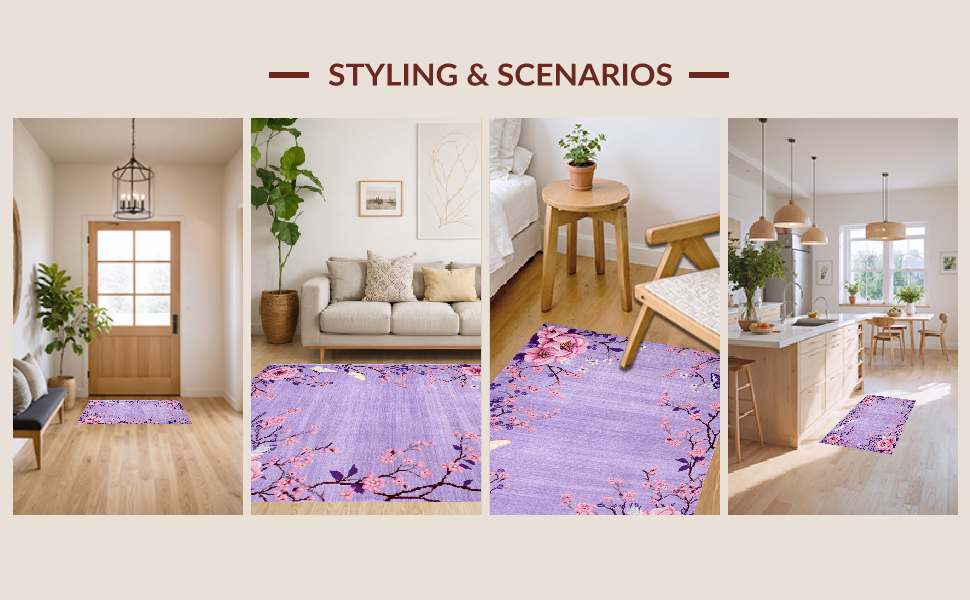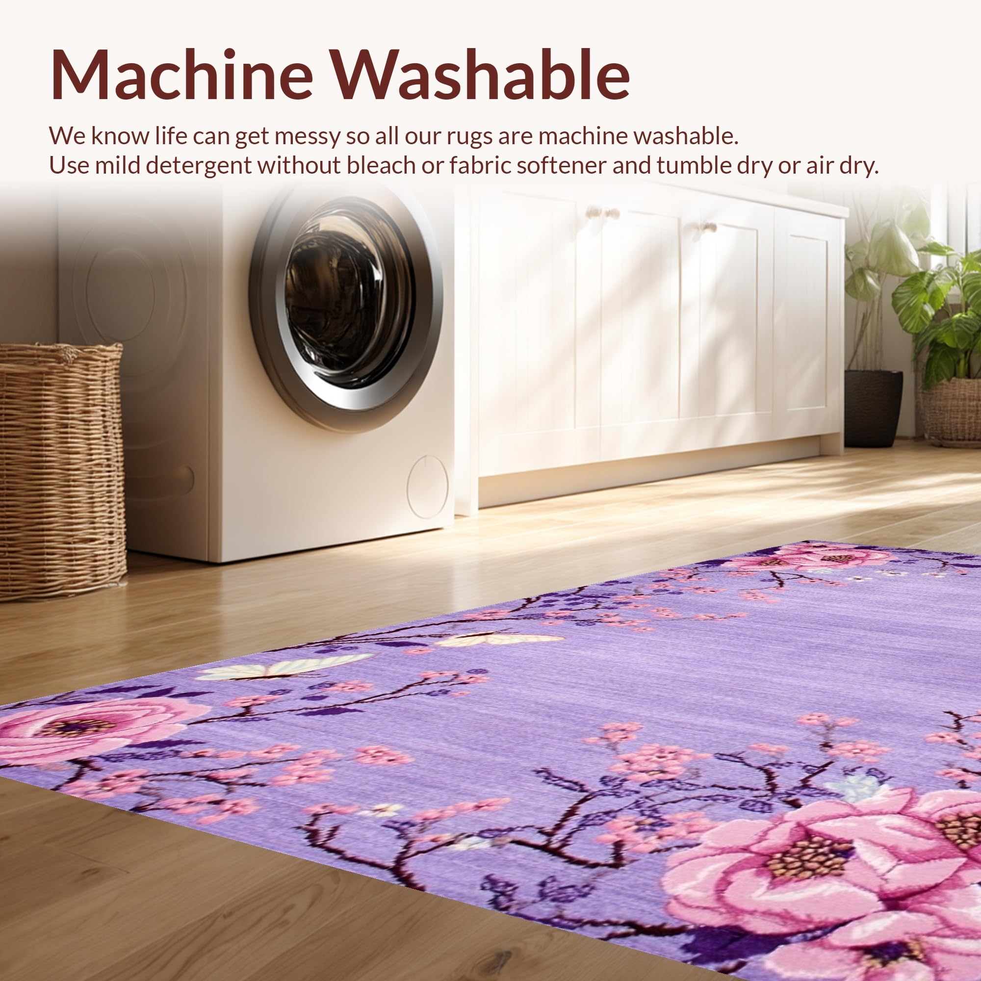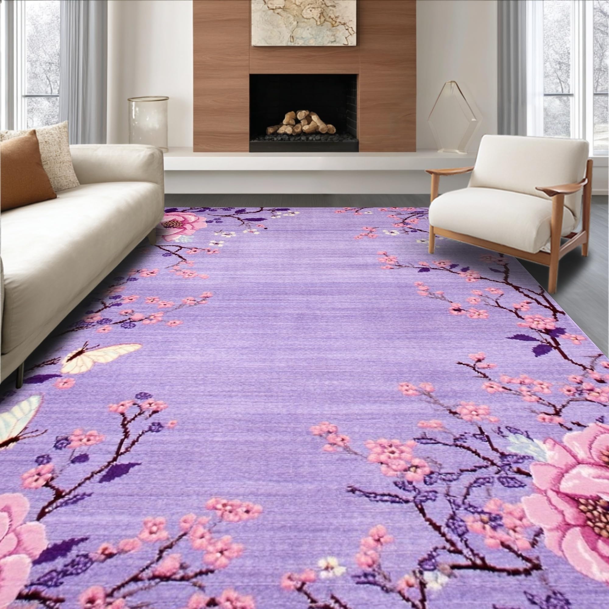 Ultra Soft Area Rug, Non Slip, Stain Resistant, Washable Area Rugs for Living Room, Bedroom, Bright Cheerful Floral Composition(Purple) Overview:
