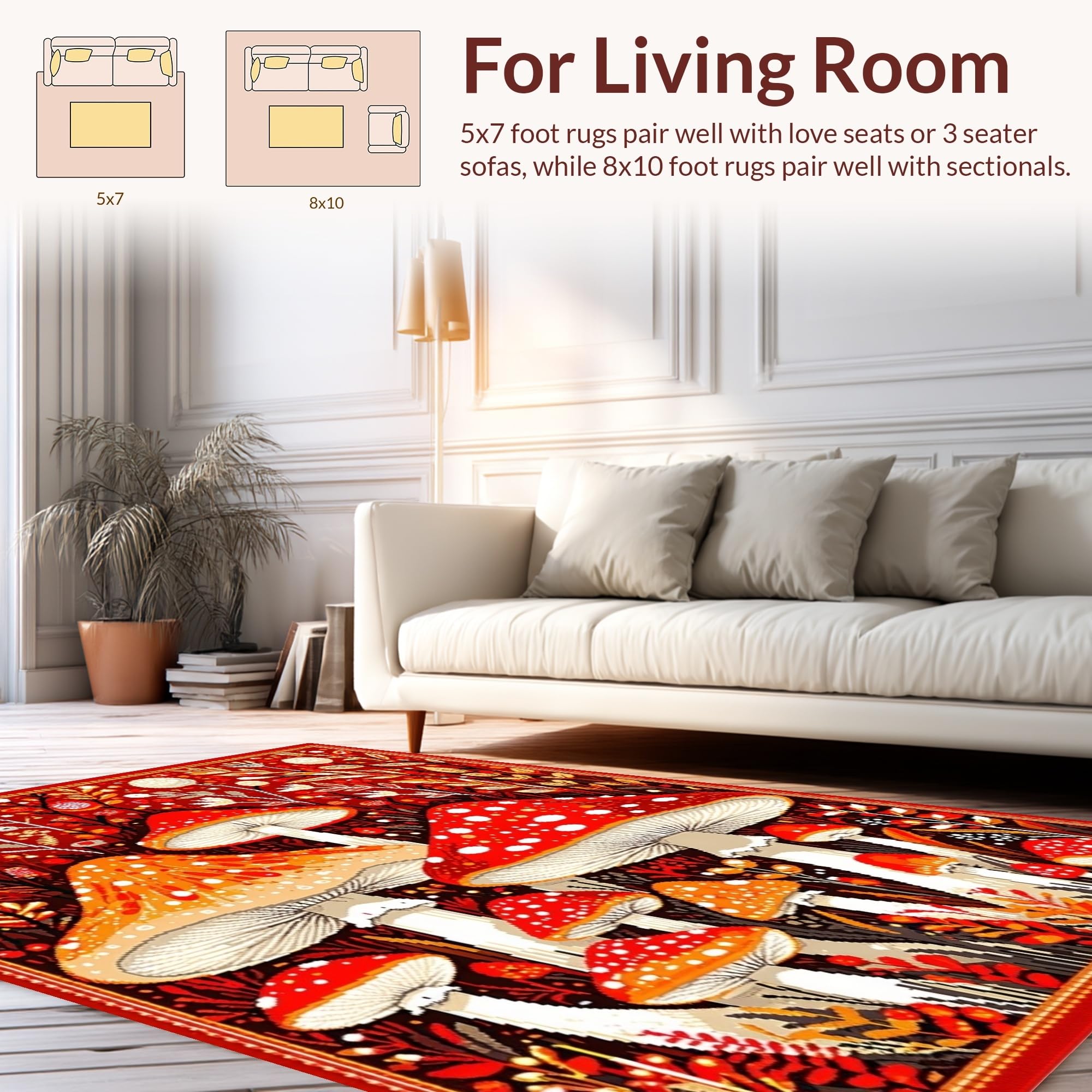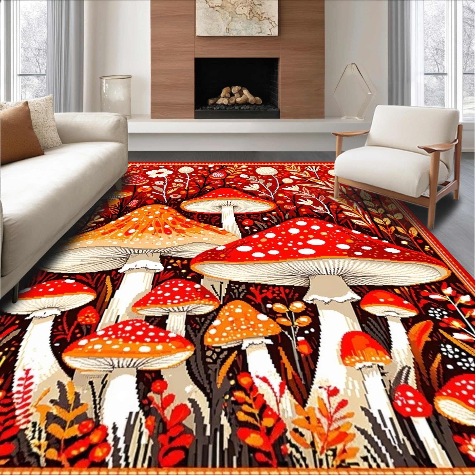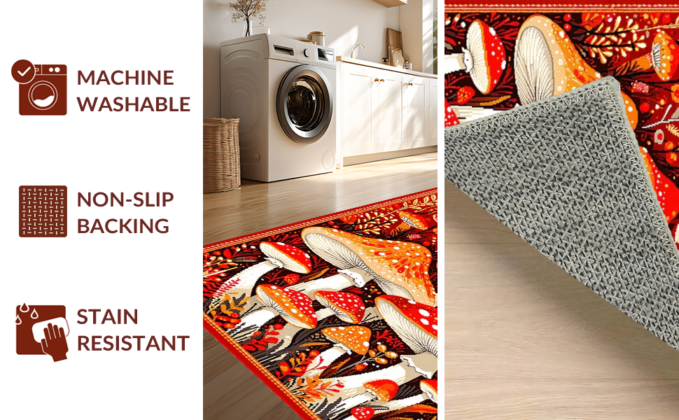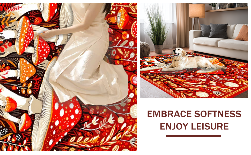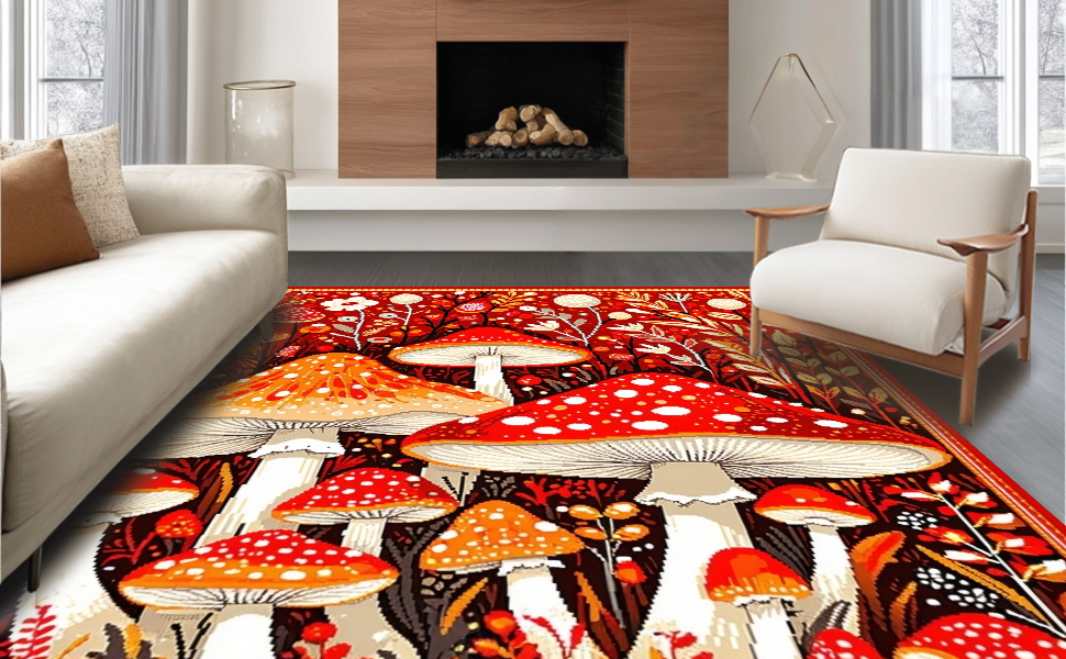 Ultra Soft Area Rug, Non Slip, Stain Resistant, Washable Area Rugs for Living Room, Bedroom, Bright Cheerful Fungi Patterned Rug(Red) Overview:
