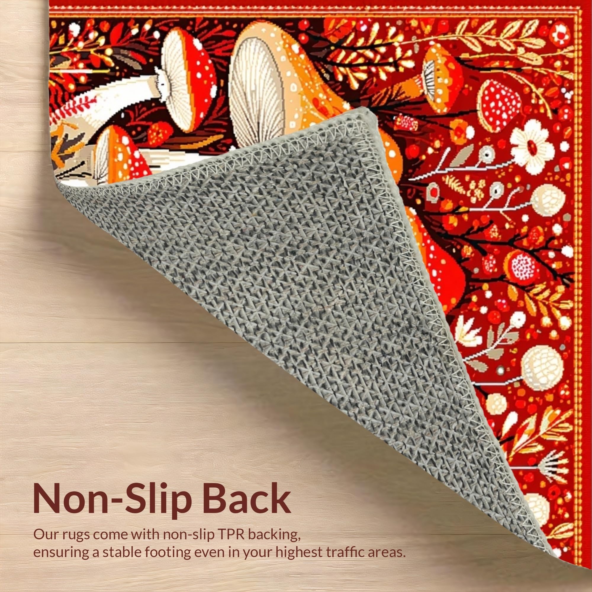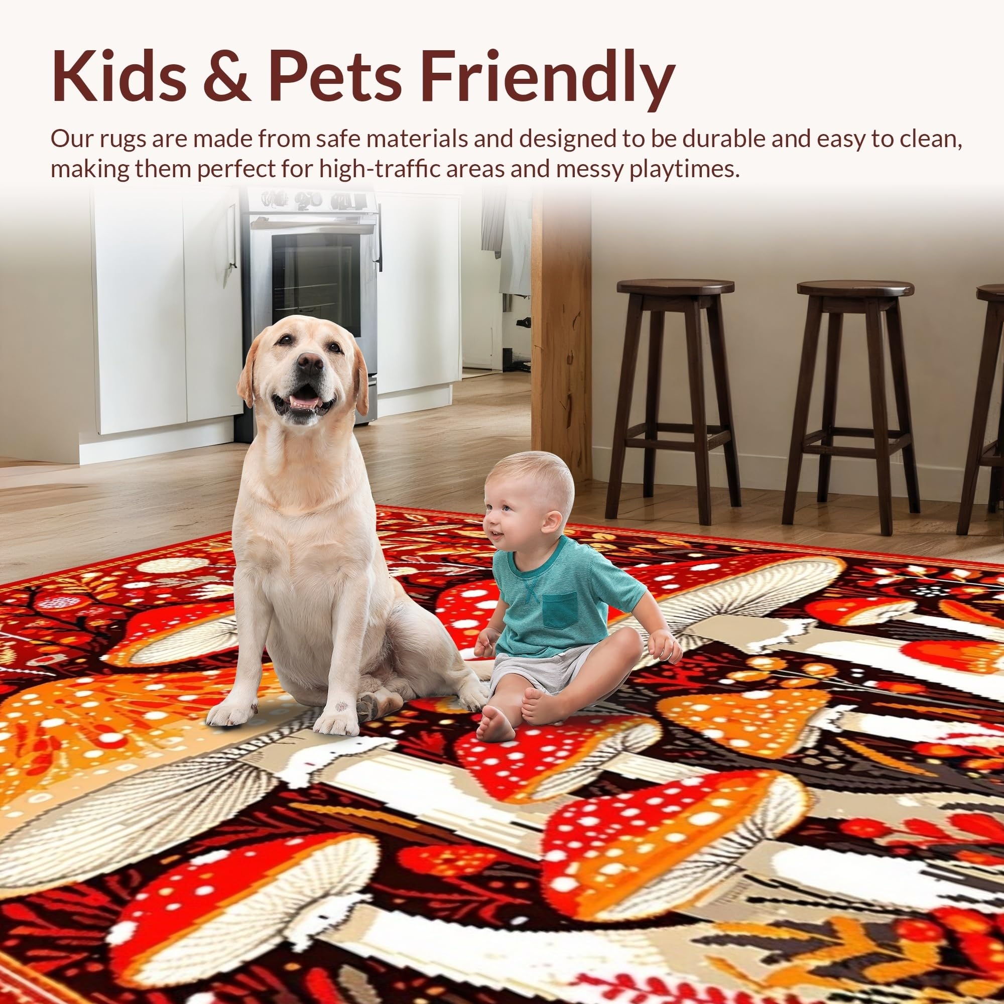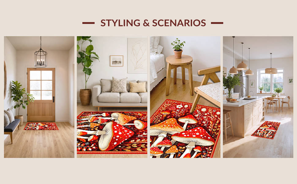 Ultra Soft Area Rug, Non Slip, Stain Resistant, Washable Area Rugs for Living Room, Bedroom, Bright Cheerful Fungi Patterned Rug(Red) Overview: