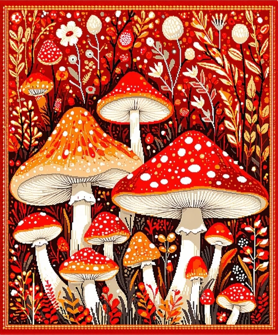 Bright Cheerful Mushroom Patterned(Red)