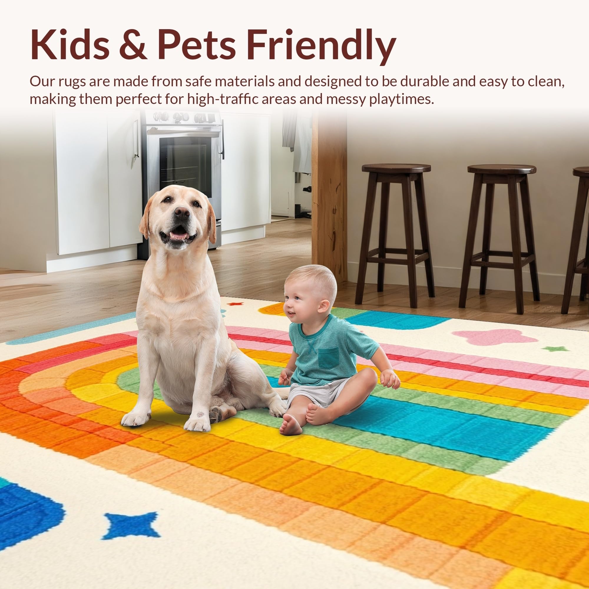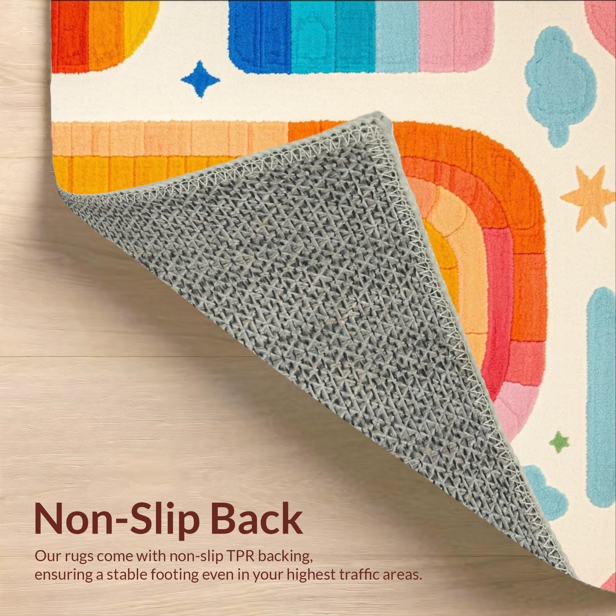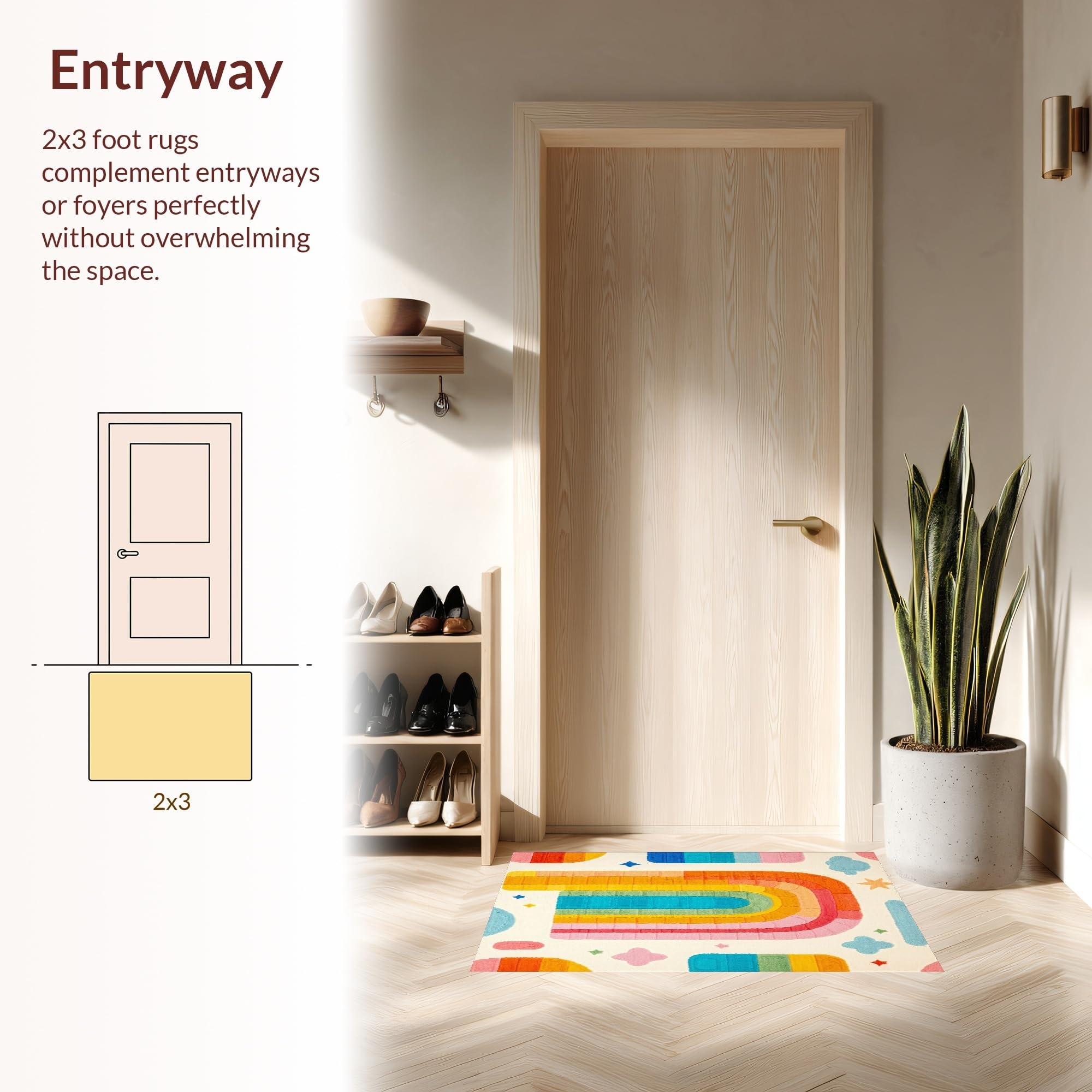 Ultra Soft Area Rug, Non Slip, Stain Resistant, Washable Area Rugs for Living Room, Bedroom, Bright Cheerful Graphic Arrangement(Yellow) Overview: