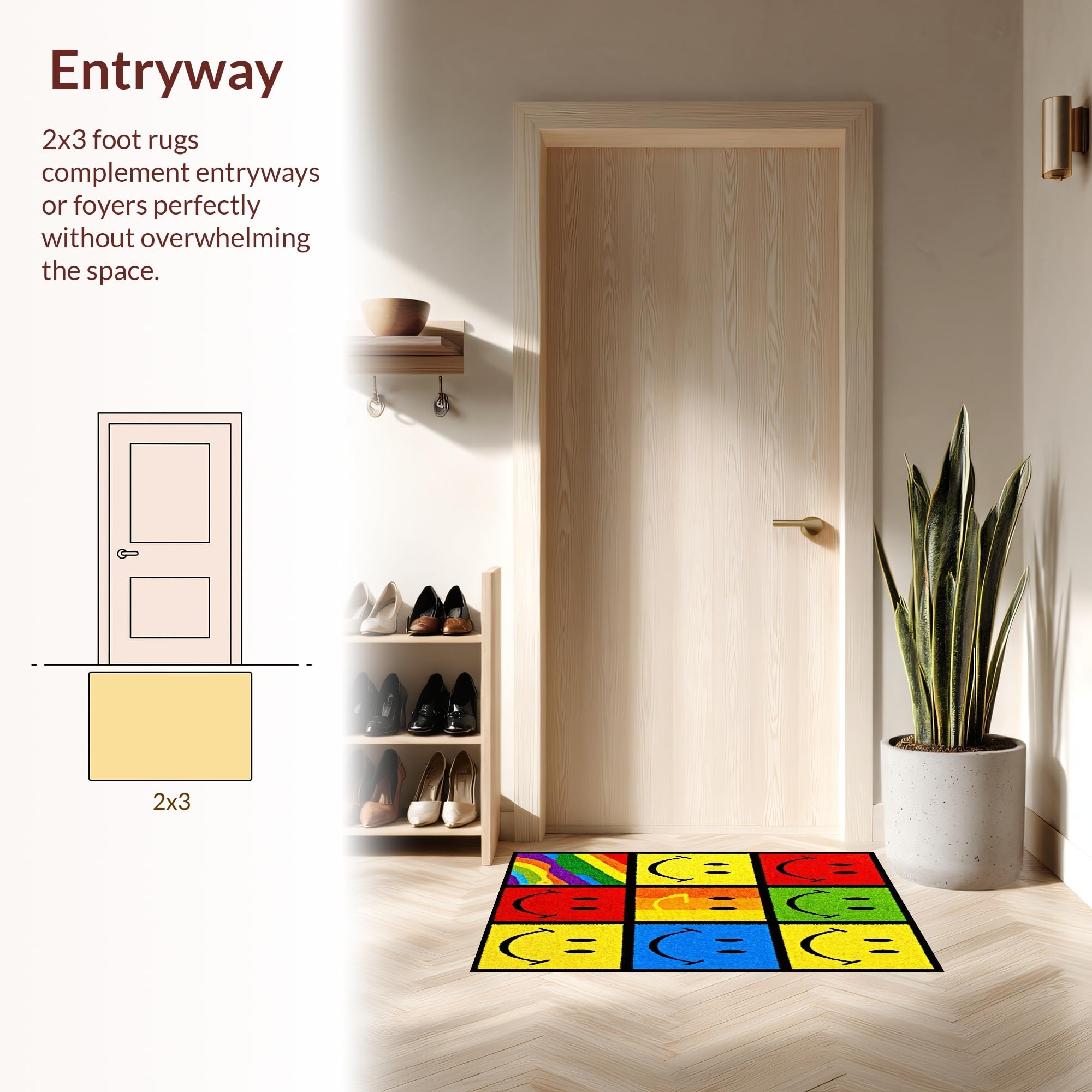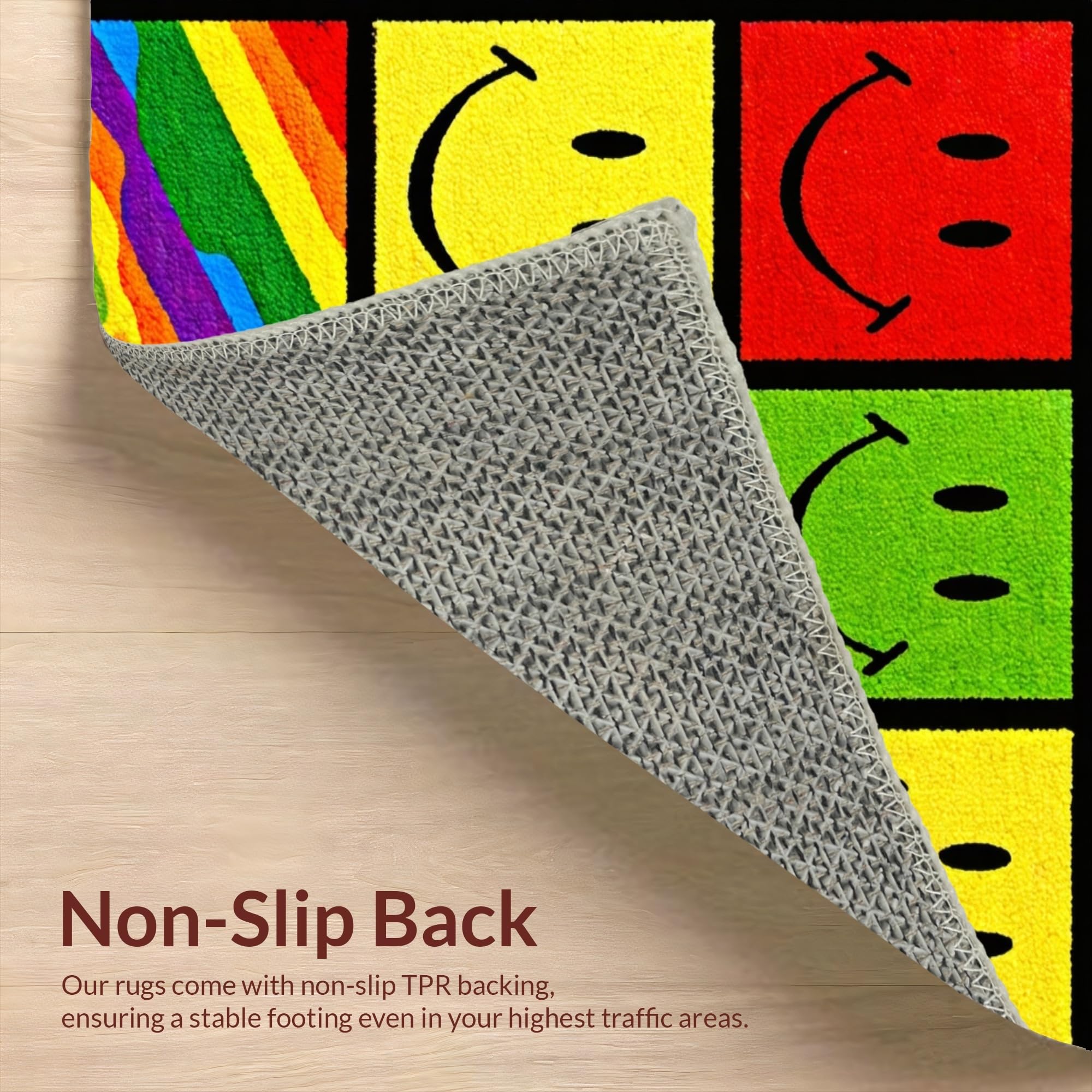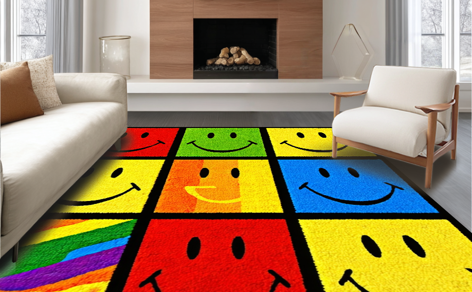 Ultra Soft Area Rug, Non Slip, Stain Resistant, Washable Area Rugs for Living Room, Bedroom, Bright Cheerful Graphic Design(Red) Overview: