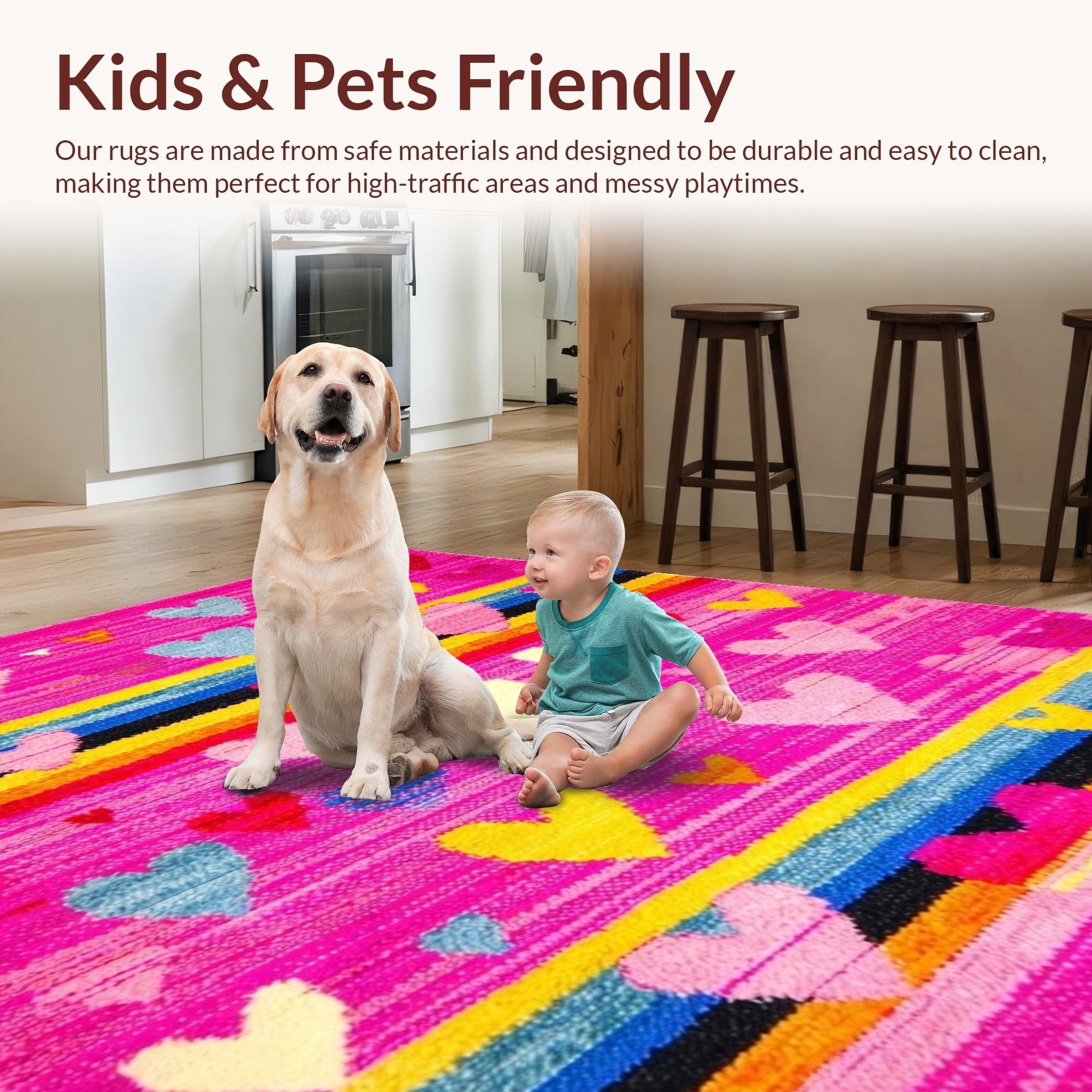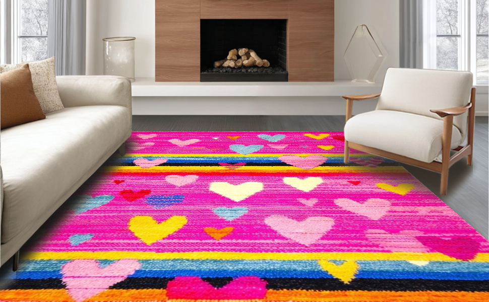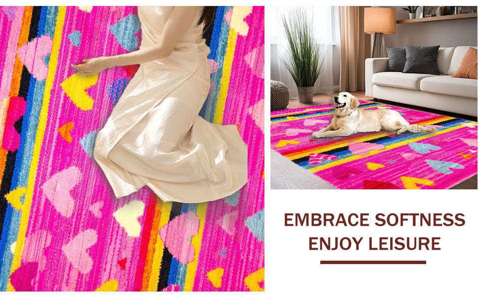 Ultra Soft Area Rug, Non Slip, Stain Resistant, Washable Area Rugs for Living Room, Bedroom, Bright Cheerful Magenta Pattern(Pink) Overview: