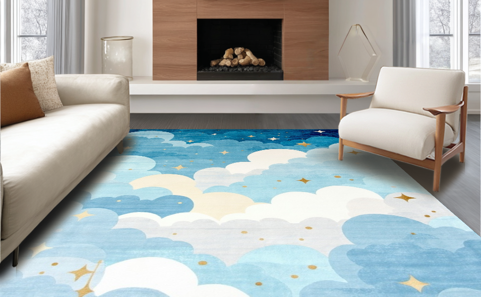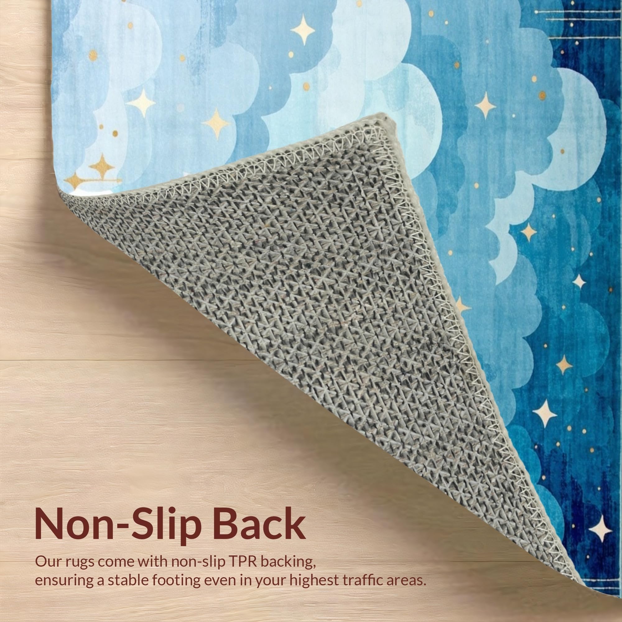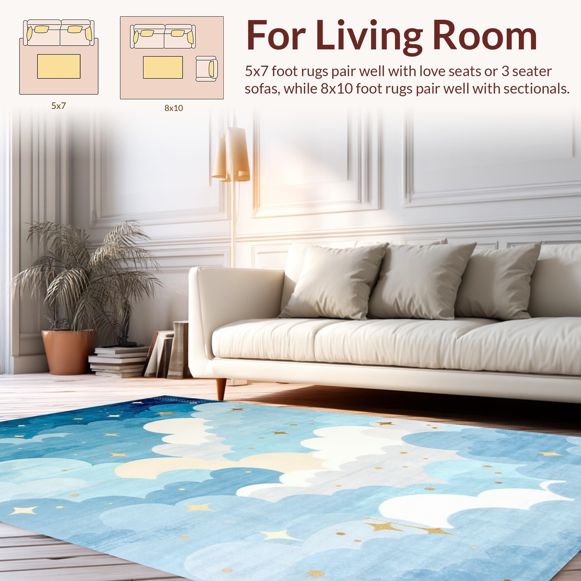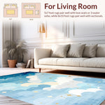 Ultra Soft Area Rug, Non Slip, Stain Resistant, Washable Area Rugs for Living Room, Bedroom, Bright Cheerful Nimbus Art(Blue) Overview: