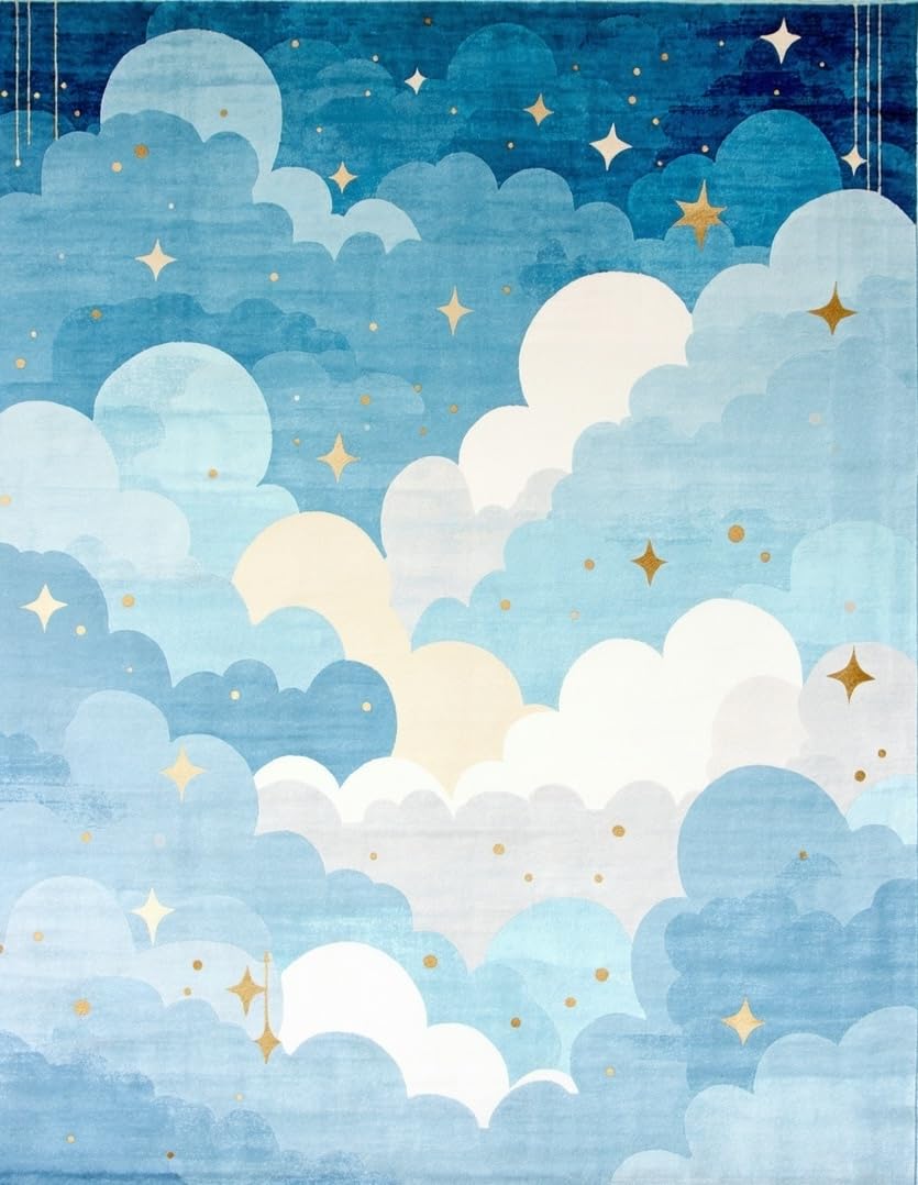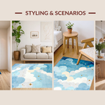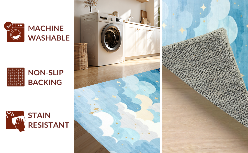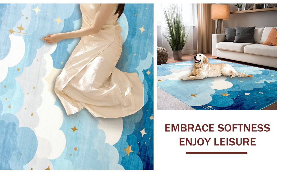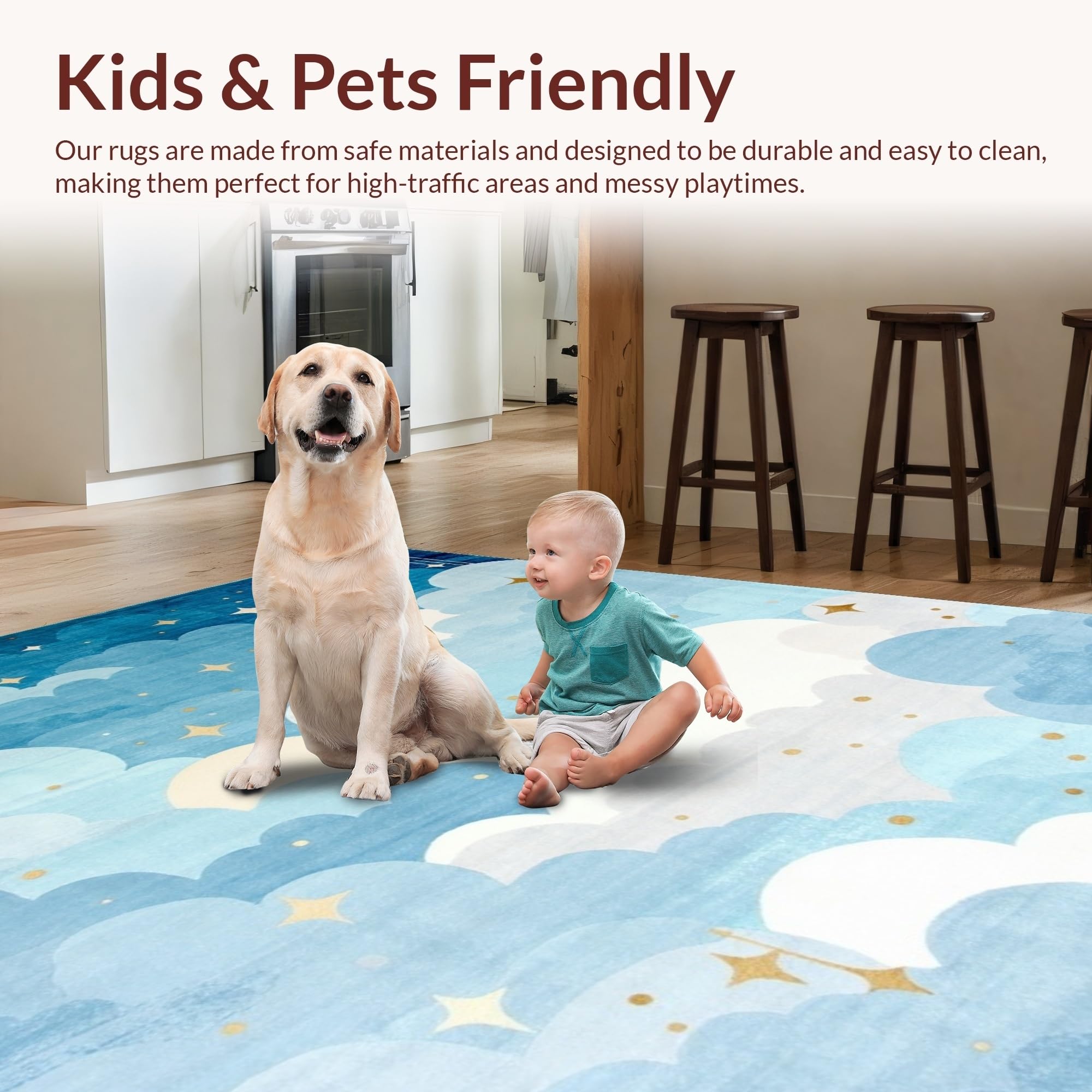 Ultra Soft Area Rug, Non Slip, Stain Resistant, Washable Area Rugs for Living Room, Bedroom, Bright Cheerful Nimbus Art(Blue) Overview: