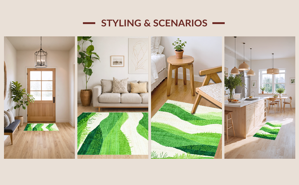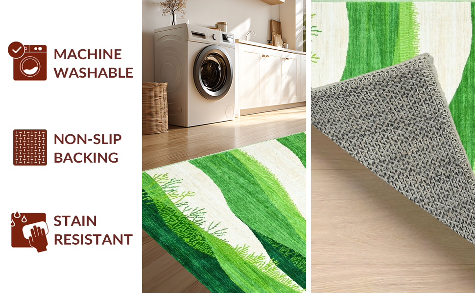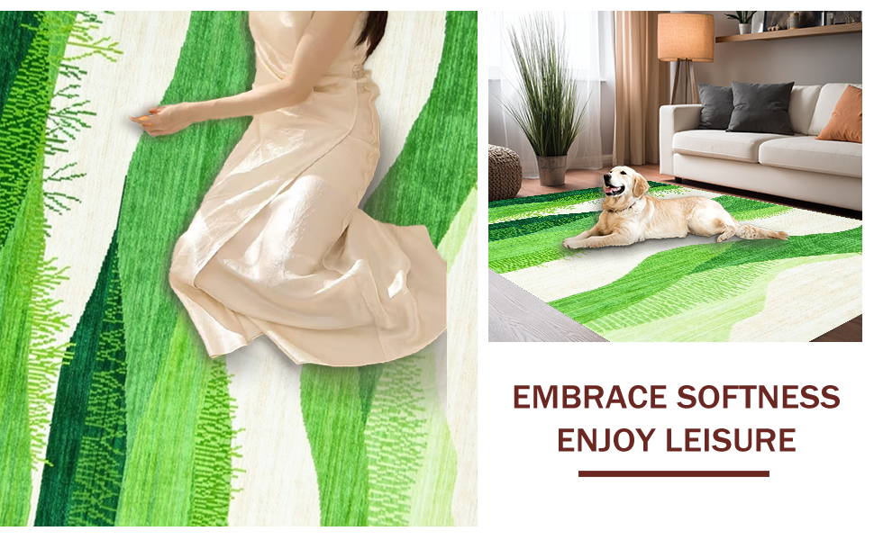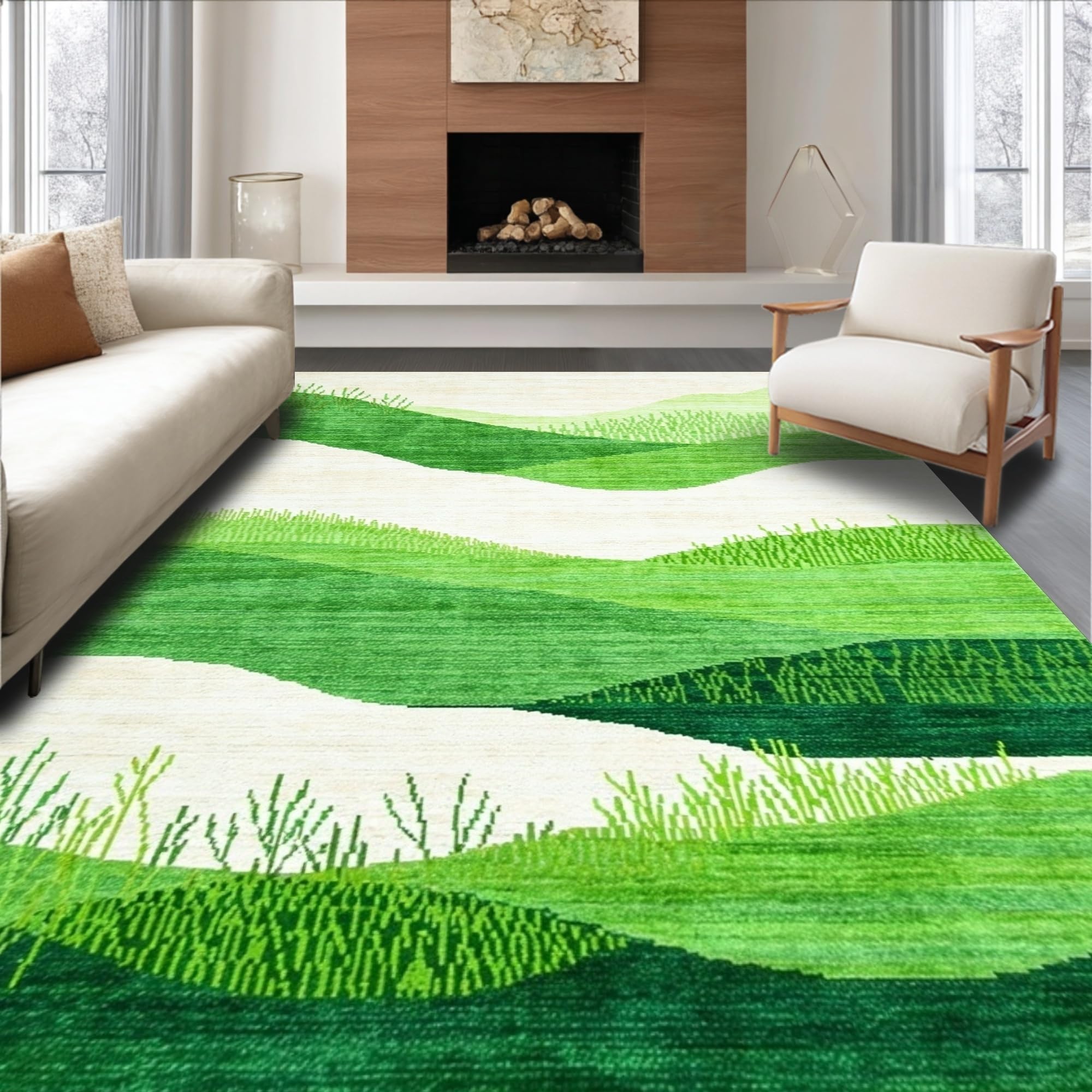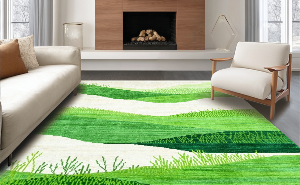 Ultra Soft Area Rug, Non Slip, Stain Resistant, Washable Area Rugs for Living Room, Bedroom, Bright Cheerful Organic Texture(Green) Overview: