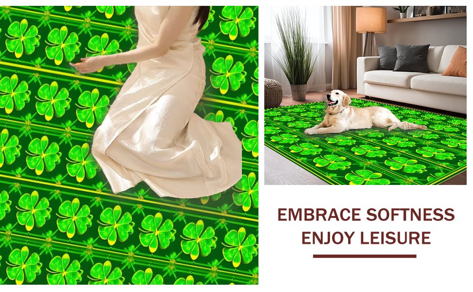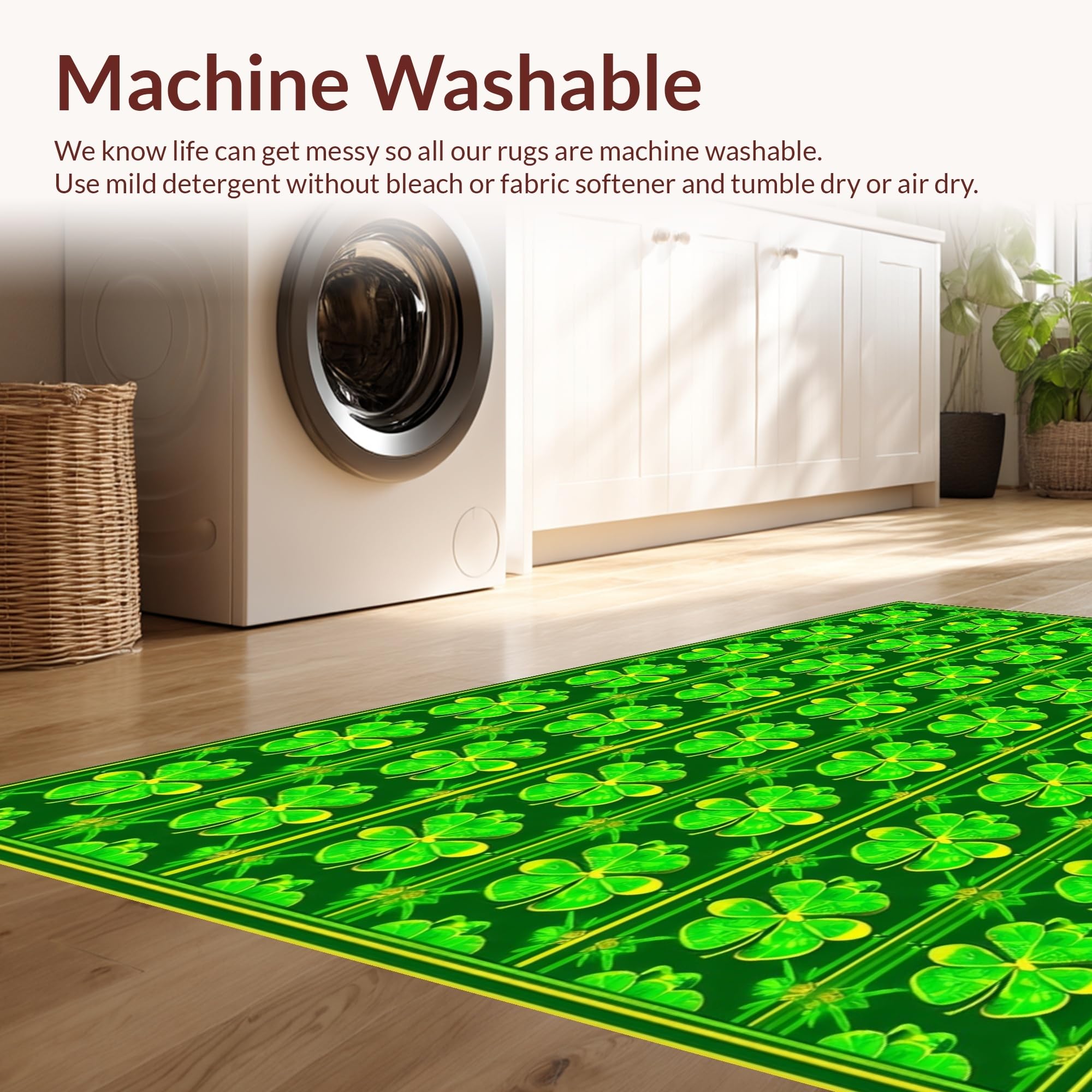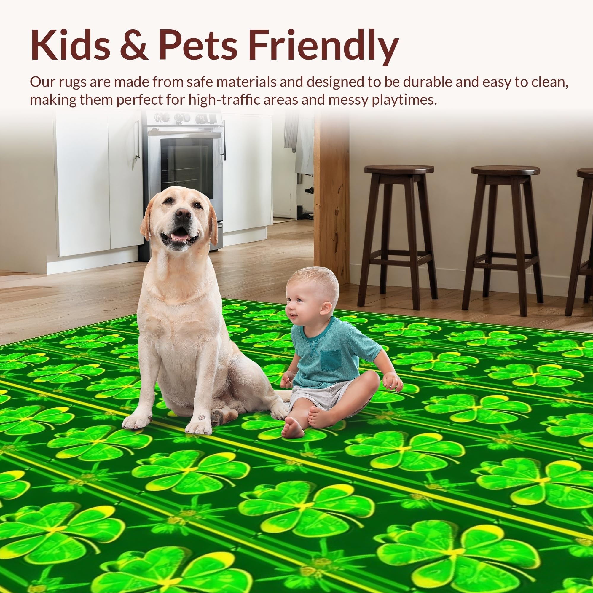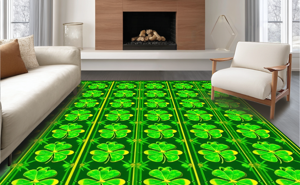 Ultra Soft Area Rug, Non Slip, Stain Resistant, Washable Area Rugs for Living Room, Bedroom, Bright Clover Leaf Design Fusion(Green) Overview: