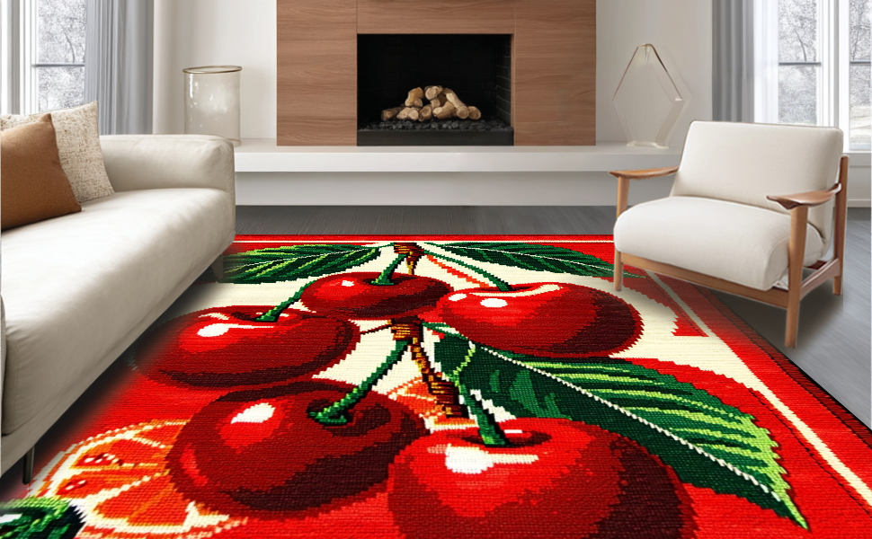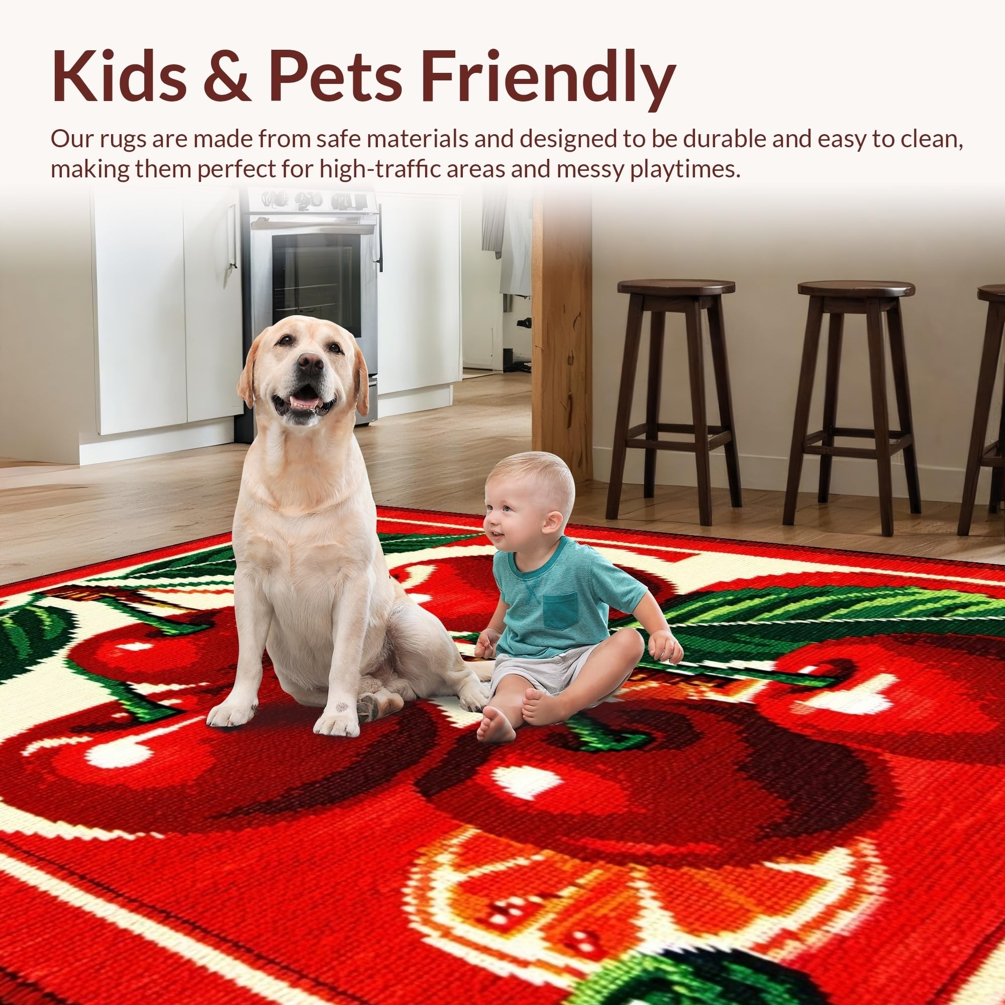 Ultra Soft Area Rug, Non Slip, Stain Resistant, Washable Area Rugs for Living Room, Bedroom, Bright Colorful Abstract Arrangement(Red) Overview:
