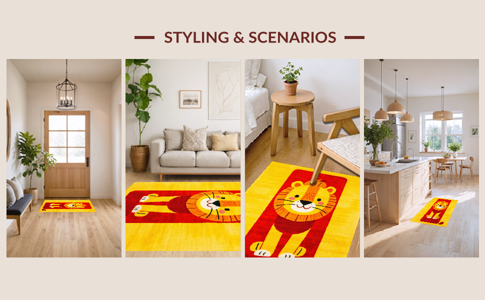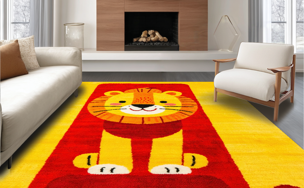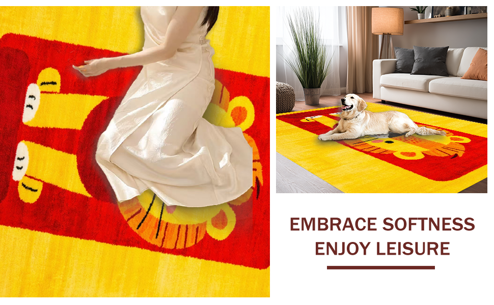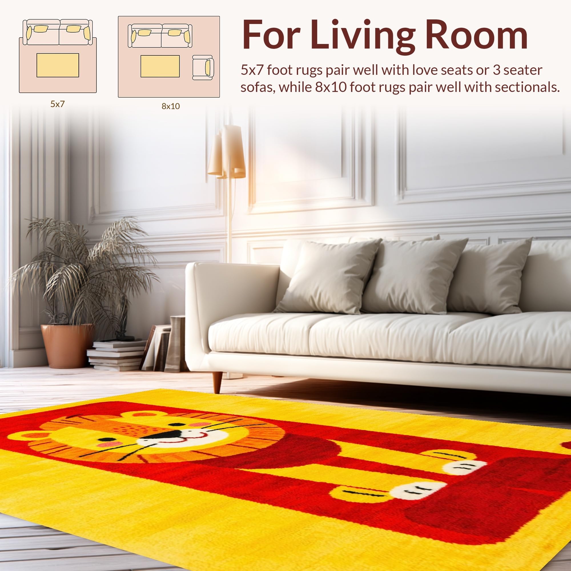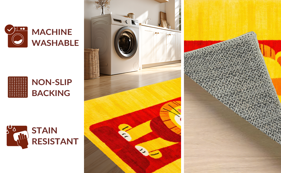 Ultra Soft Area Rug, Non Slip, Stain Resistant, Washable Area Rugs for Living Room, Bedroom, Bright Colorful Character Pattern(Yellow) Overview: