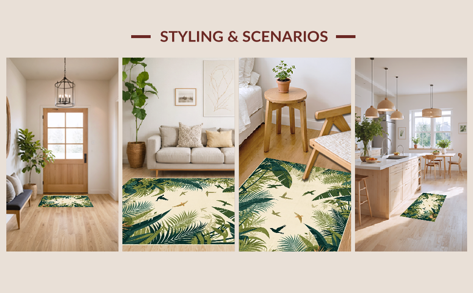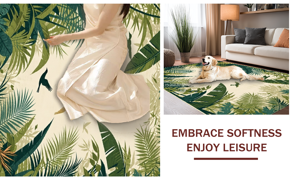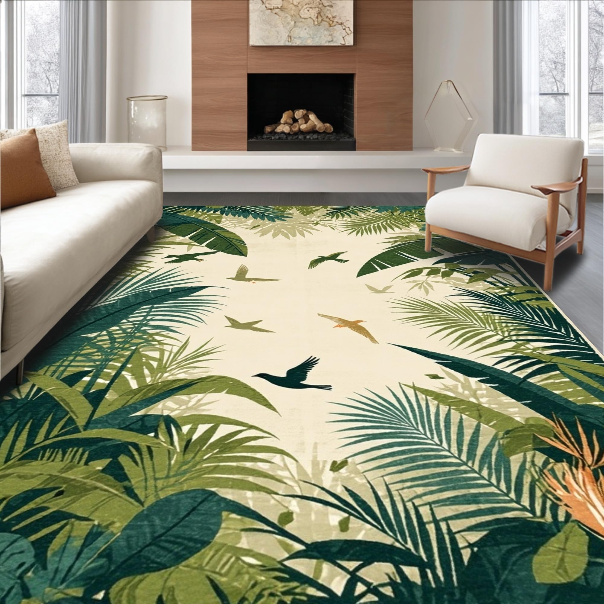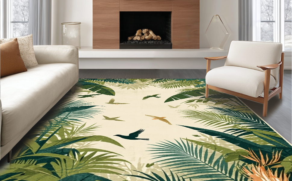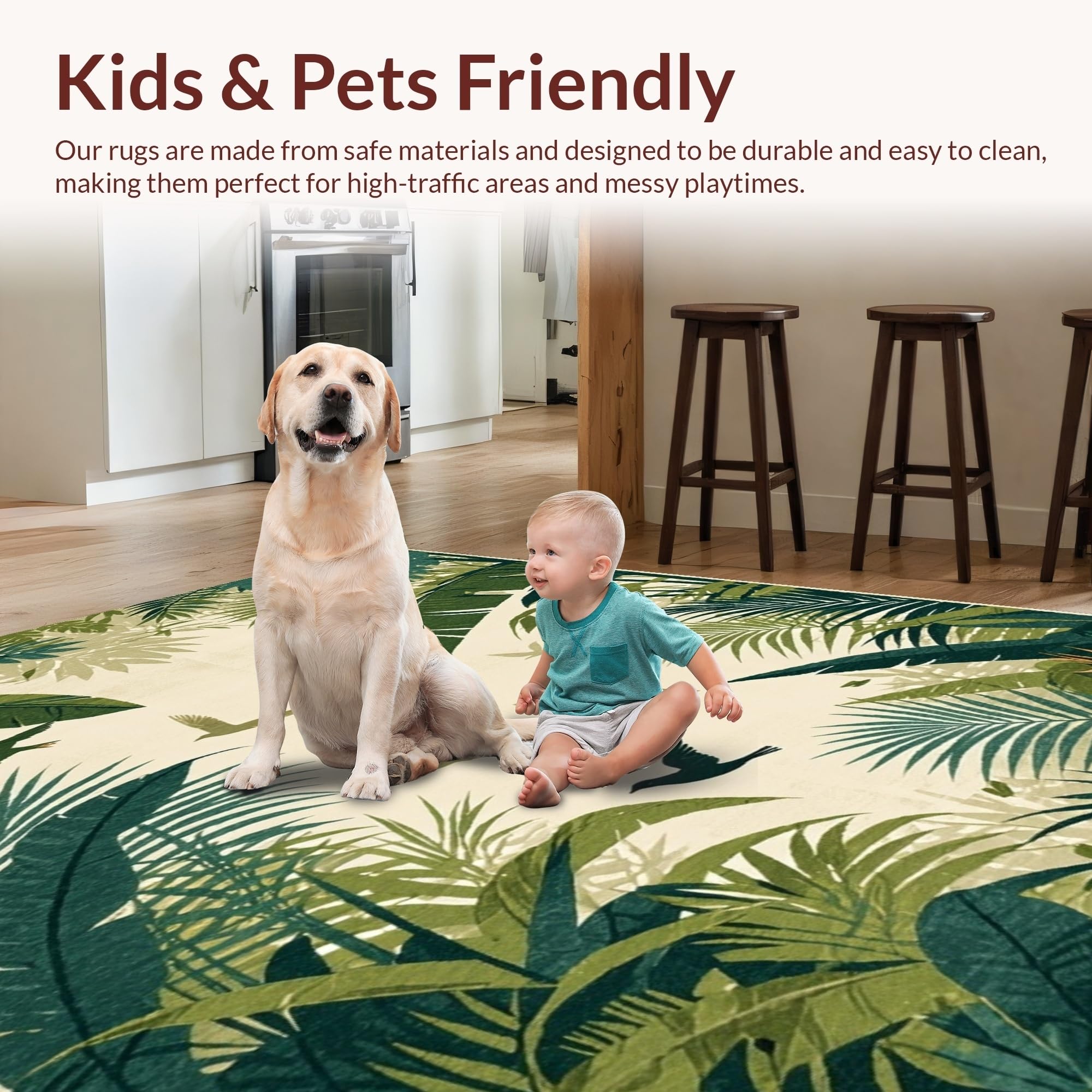 Ultra Soft Area Rug, Non Slip, Stain Resistant, Washable Area Rugs for Living Room, Bedroom, Bright Colorful Fauna Theme(Beige) Overview: