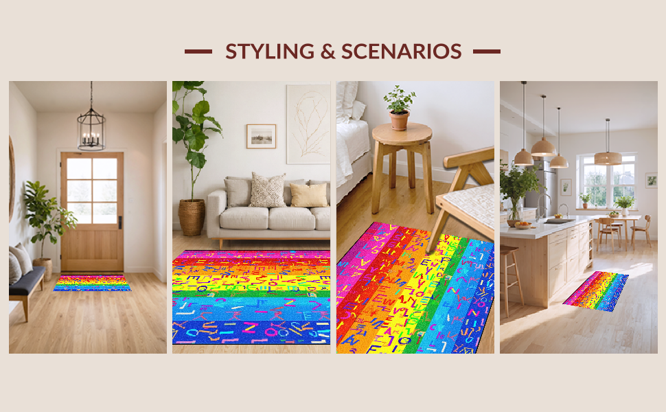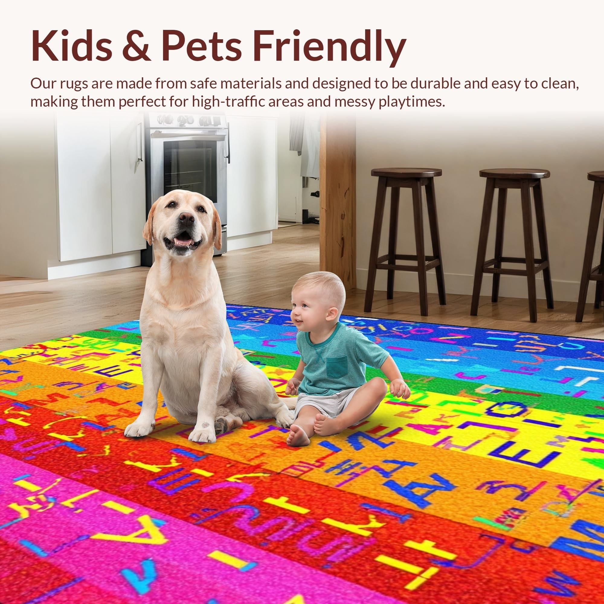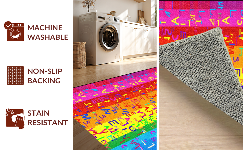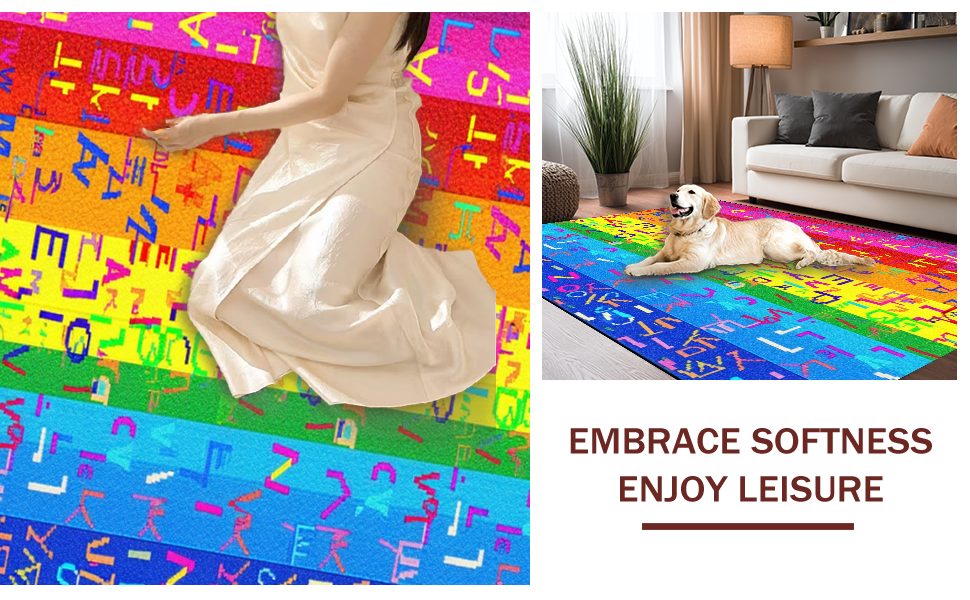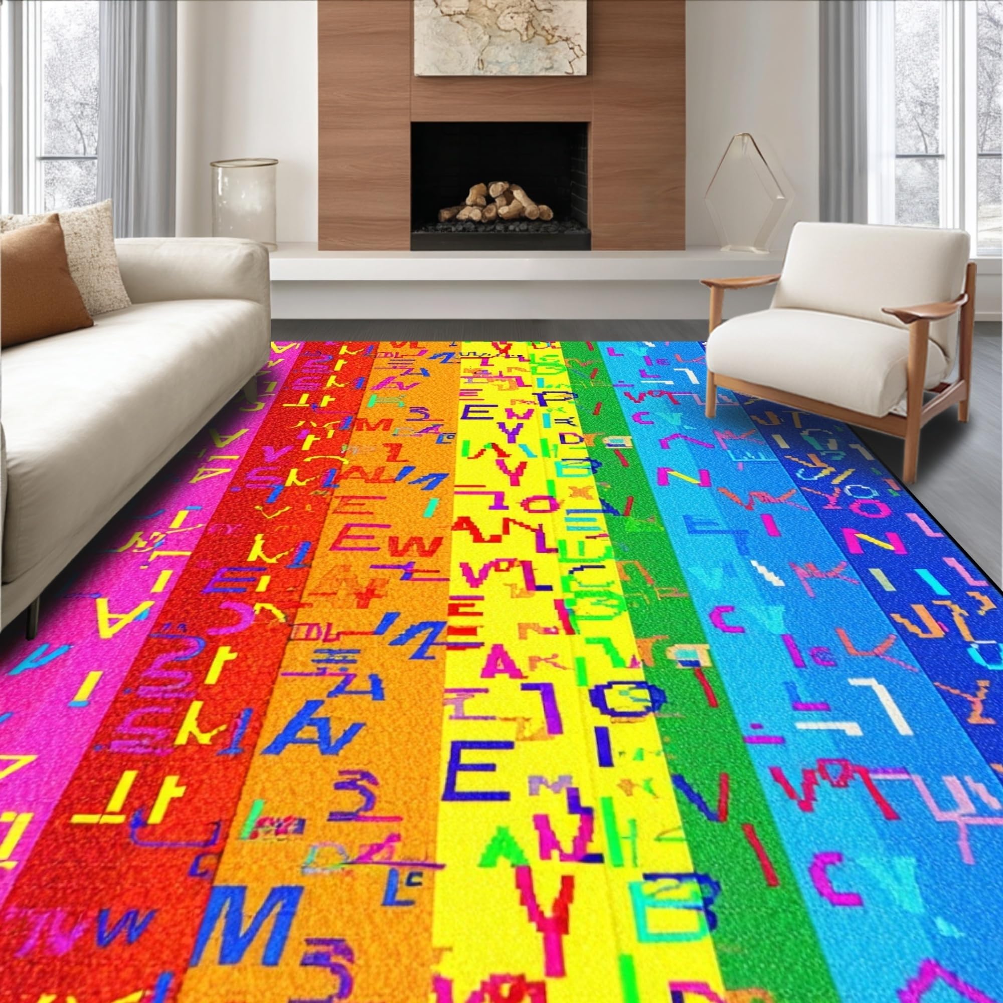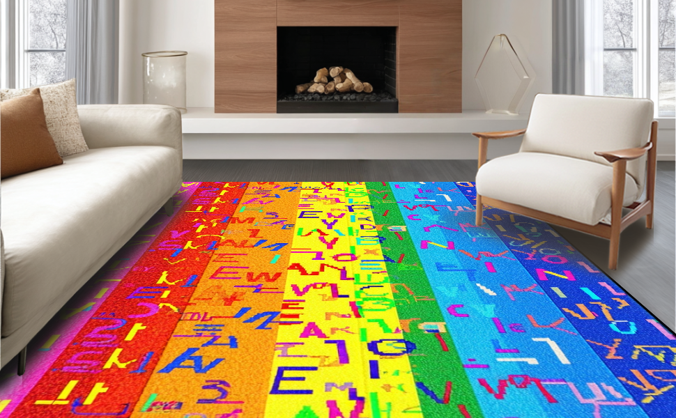Ultra Soft Area Rug, Non Slip, Stain Resistant, Washable Area Rugs for Living Room, Bedroom, Bright Contemporary Letter Design(Red) Overview: